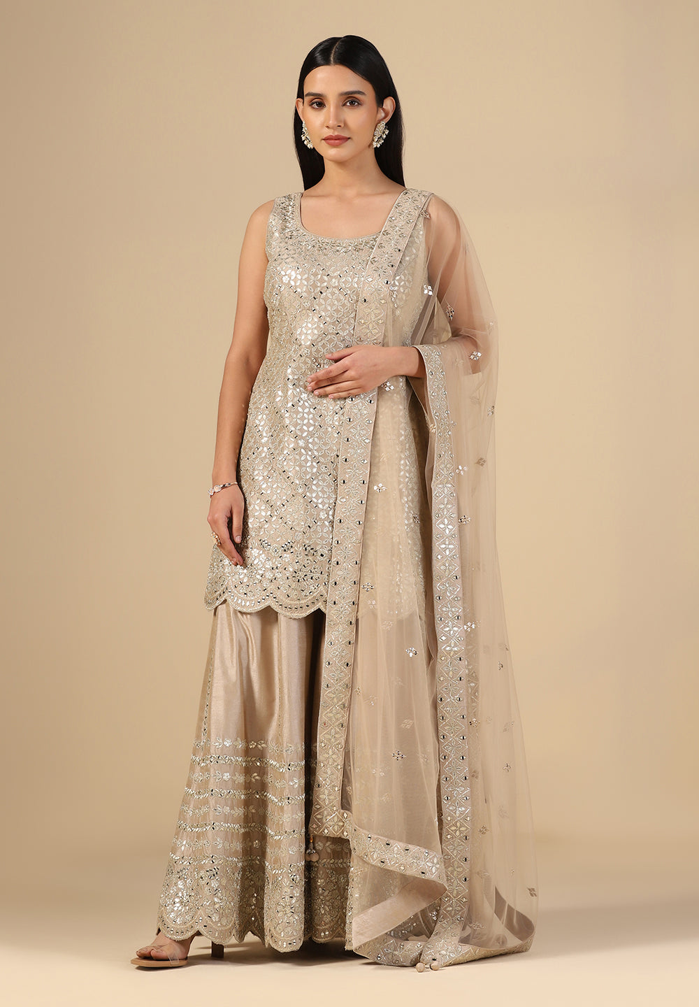 For those who love experimenting with trends, our stylish sharara for women collection offers contemporary designs with Indo-Western elements. Think cape-style kurtas, asymmetrical cuts, and modern draping paired with shararas that exude glamour and elegance.