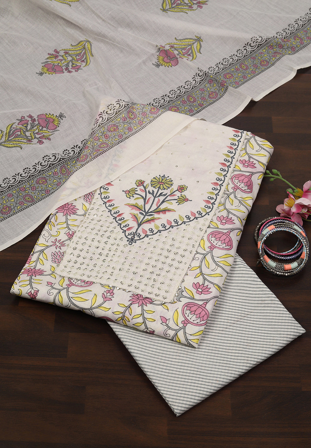 Buy Bombay Selection’s Cream Cotton Suit with Exquisite Sequins Work. This is a perfect canvas to adapt into something uniquely yours.