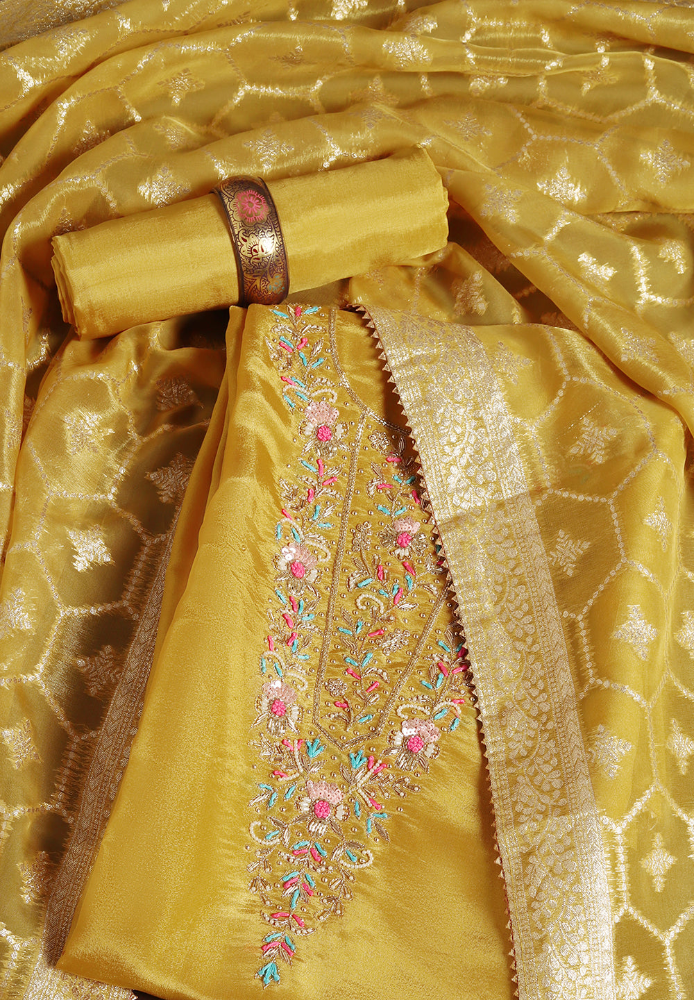 Forthe Basant Panchami occasion, it will not be wrong to opt for a yellow suit because of its comfort and style. No matter if you have a Saraswati puja or a family event to go to, our classic yet trendy ethnic suits and designer Suits can be paired with well-fitted trousers or a lovely skirt. If you’re looking for some variation then you can go for an unstitched suit like Uppada Silk Fabric Unstitched Suit where you can attain a style of your choice. The yellow suit for Basant Panchami is perfect for ladies, who want to look festive, but still remain trendy, mixing modern styles with crucial appeal. Accessorize the look with oxidized ornaments or lightweight earrings for a completely beautiful Basant Panchami ethnic wear clothing look.