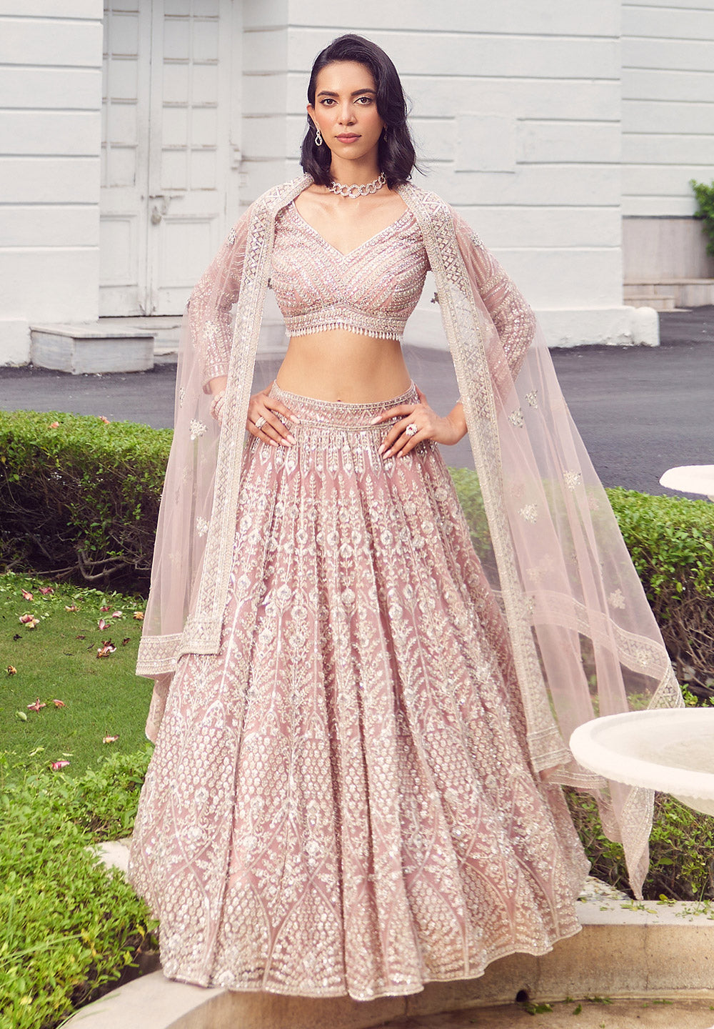 Your reception is the final celebration - and it deserves an outfit that embodies elegance. This is where you can go all out with sequins, shimmer, or pastel glamour. Reception lehengas at Bombay Selections include white lehengas, silver lehengas, and lavender lehengas with intricate embellishments.