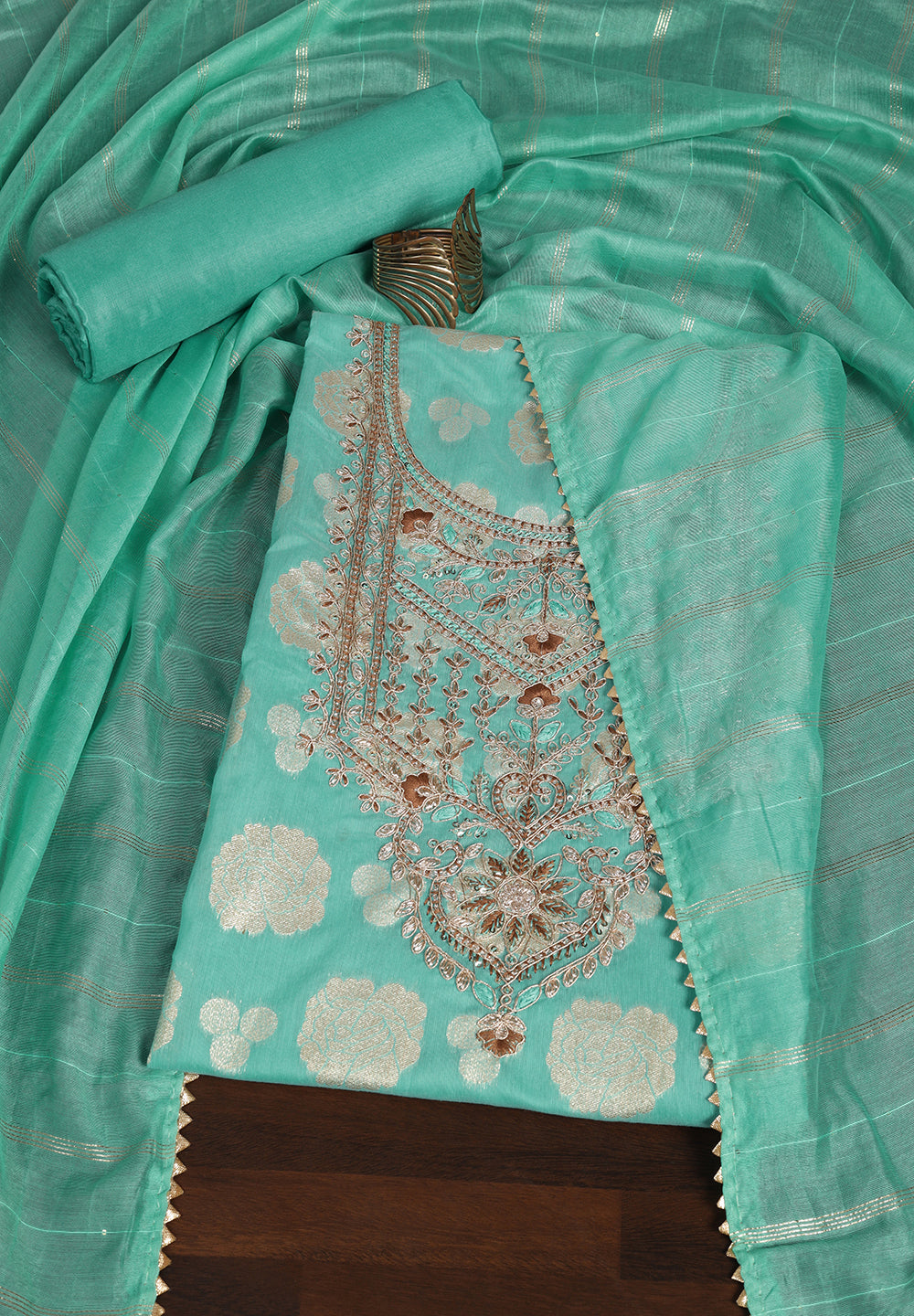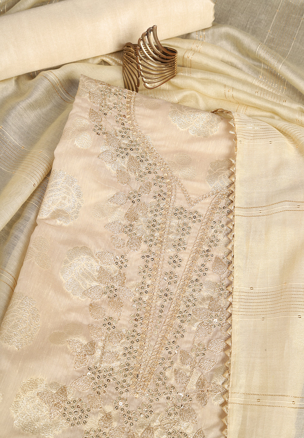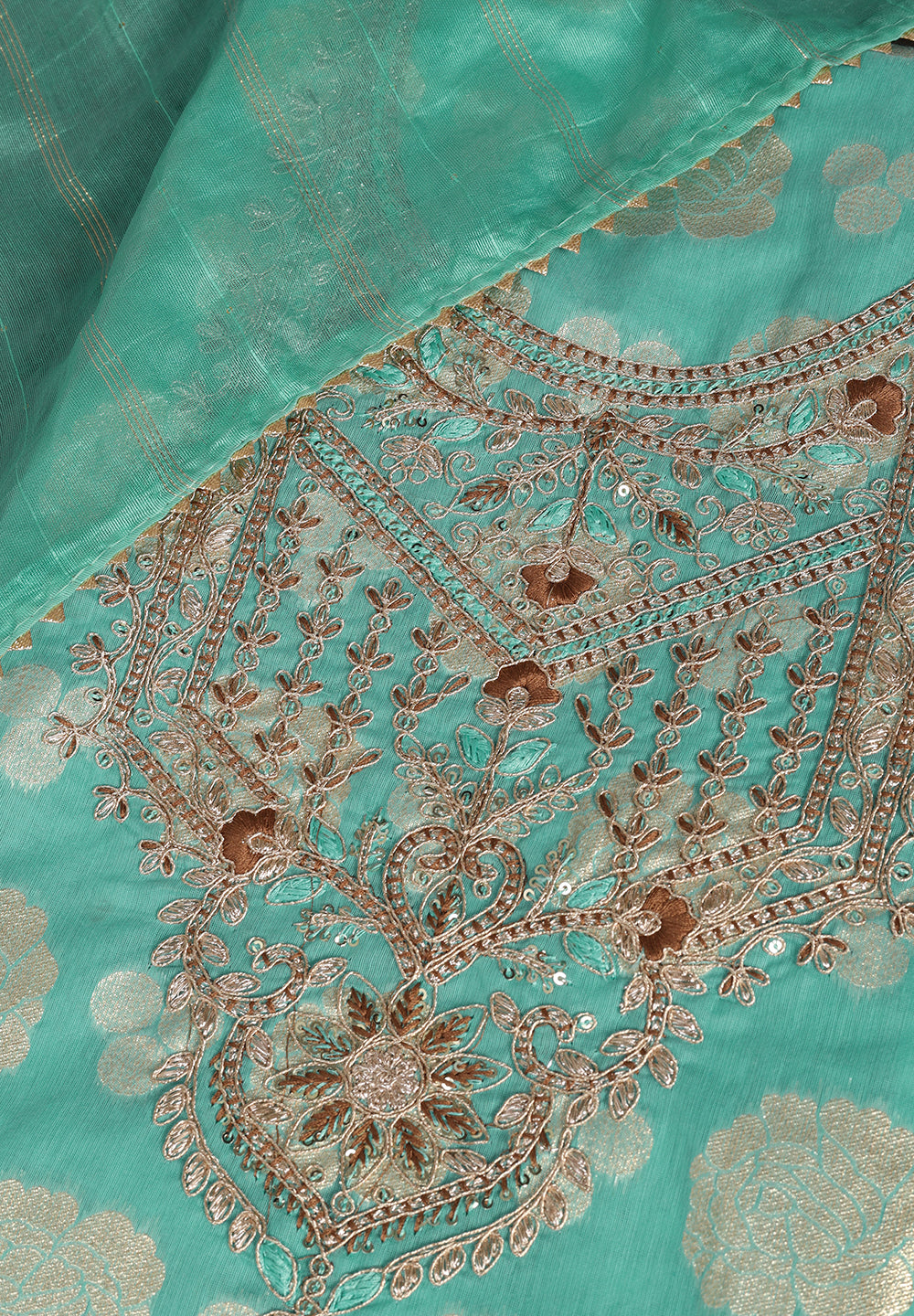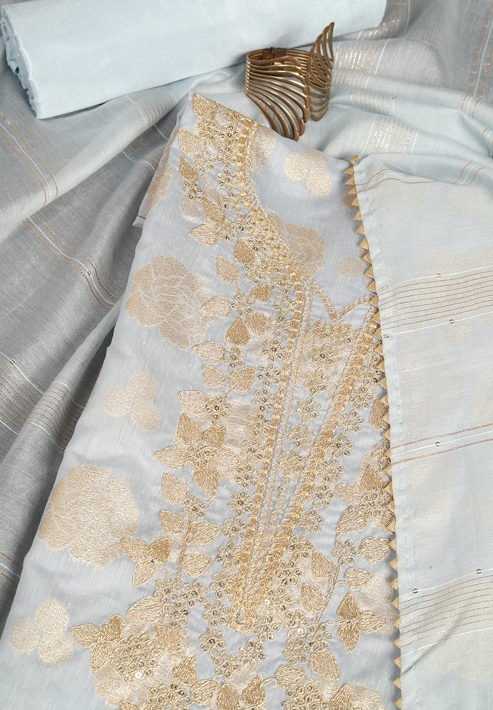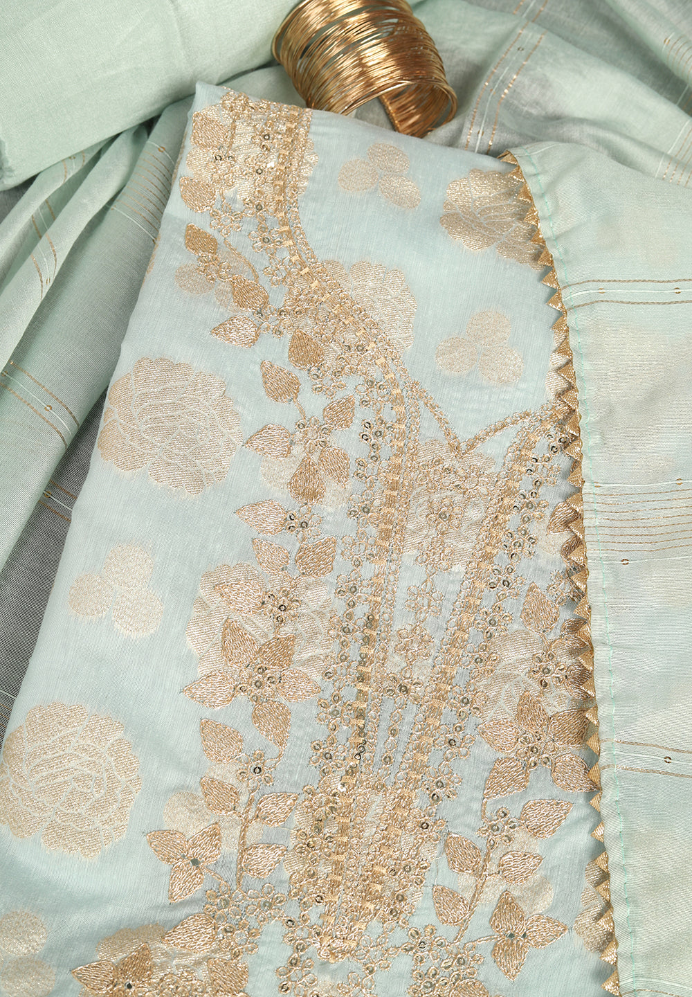 Banarasi Chanderi Unstitched Suit – Zari, Aari & Sequin Detailing