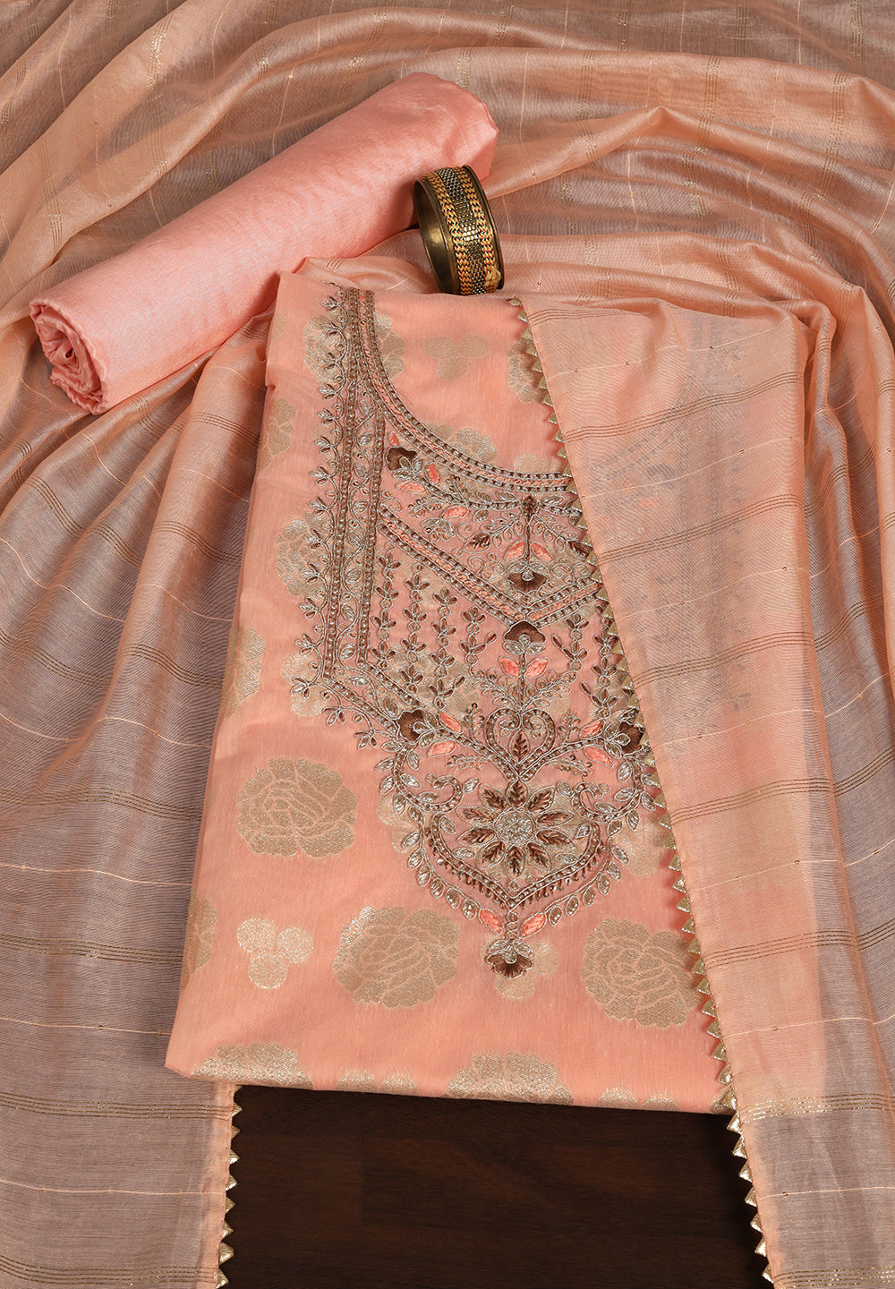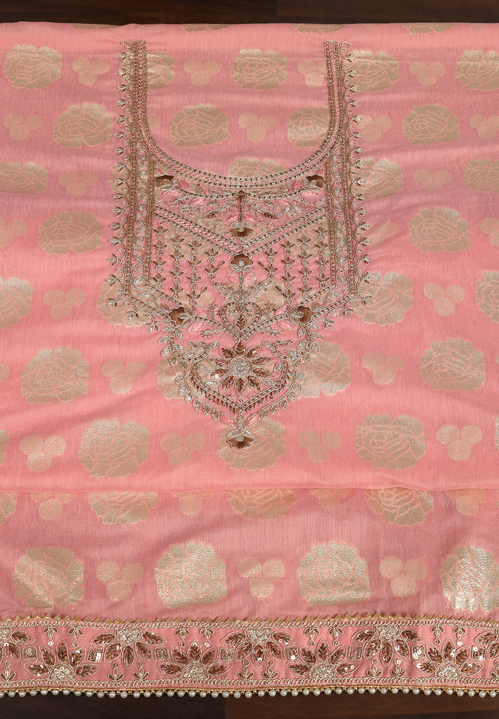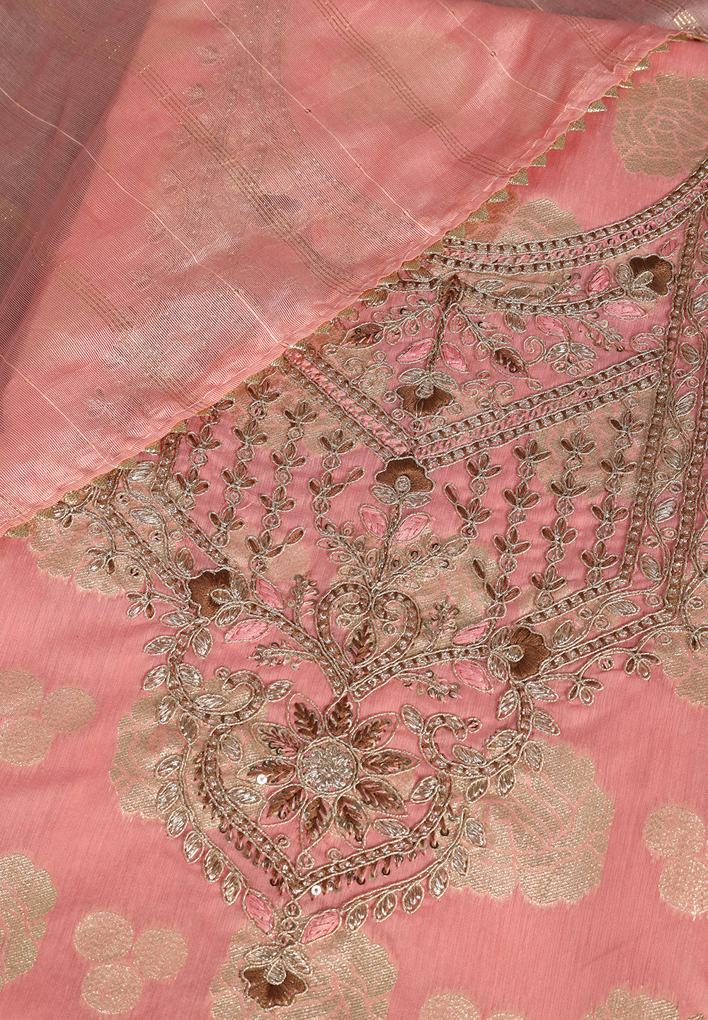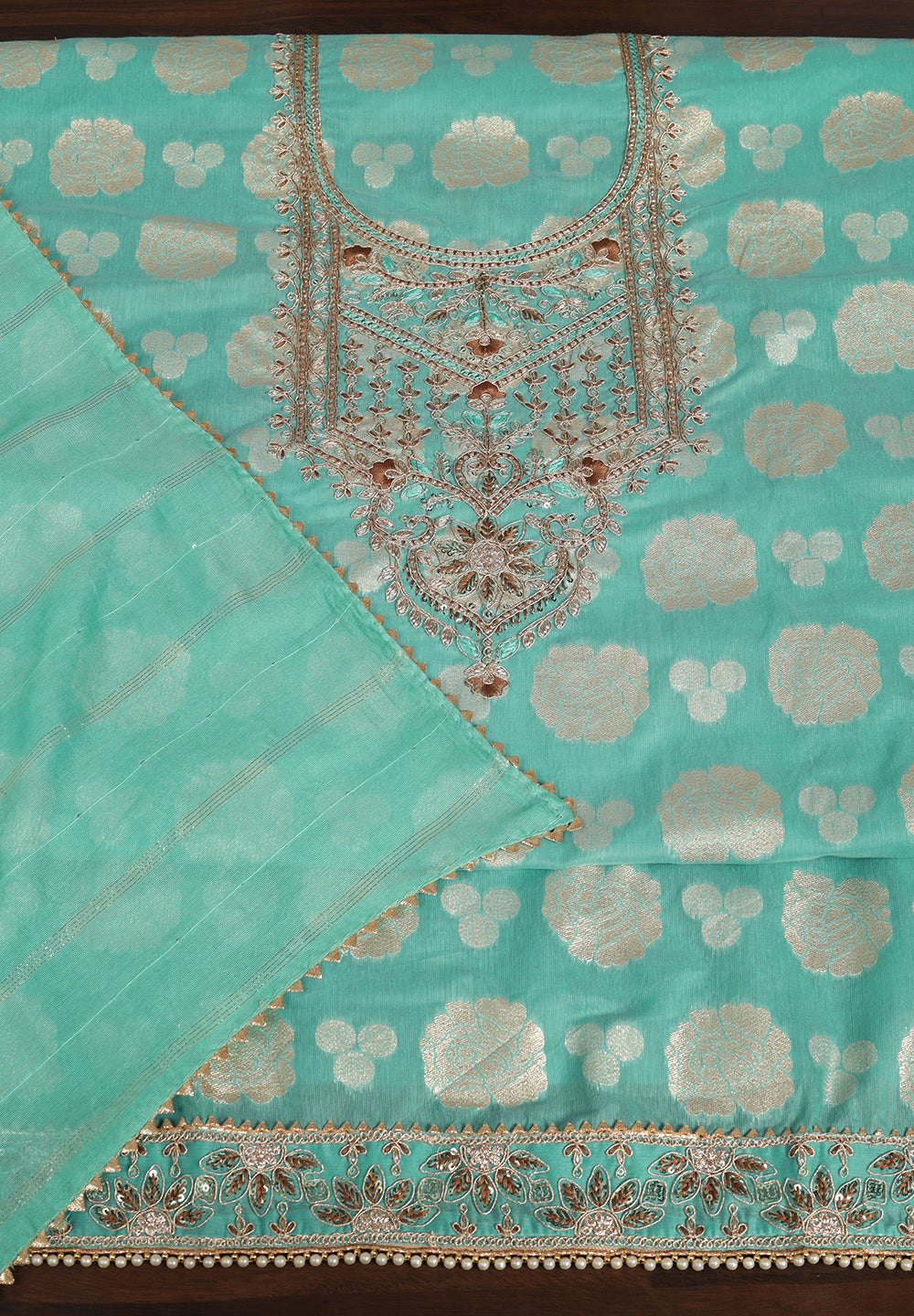 Banarasi Chanderi Unstitched Suit – Zari, Aari & Sequin Detailing