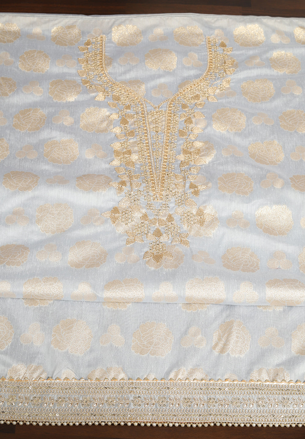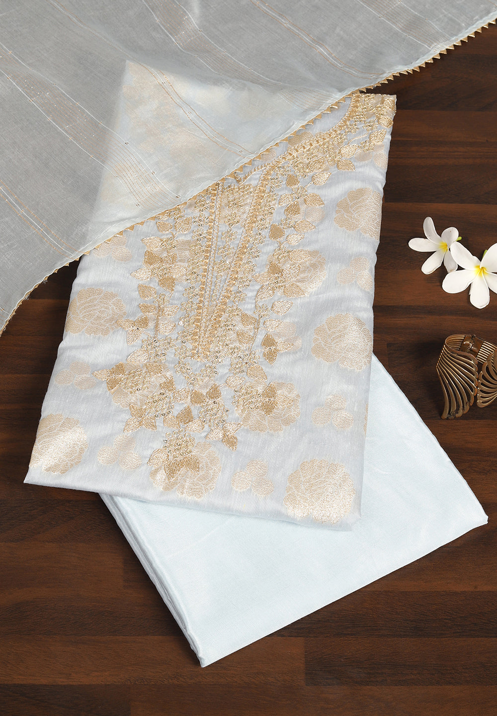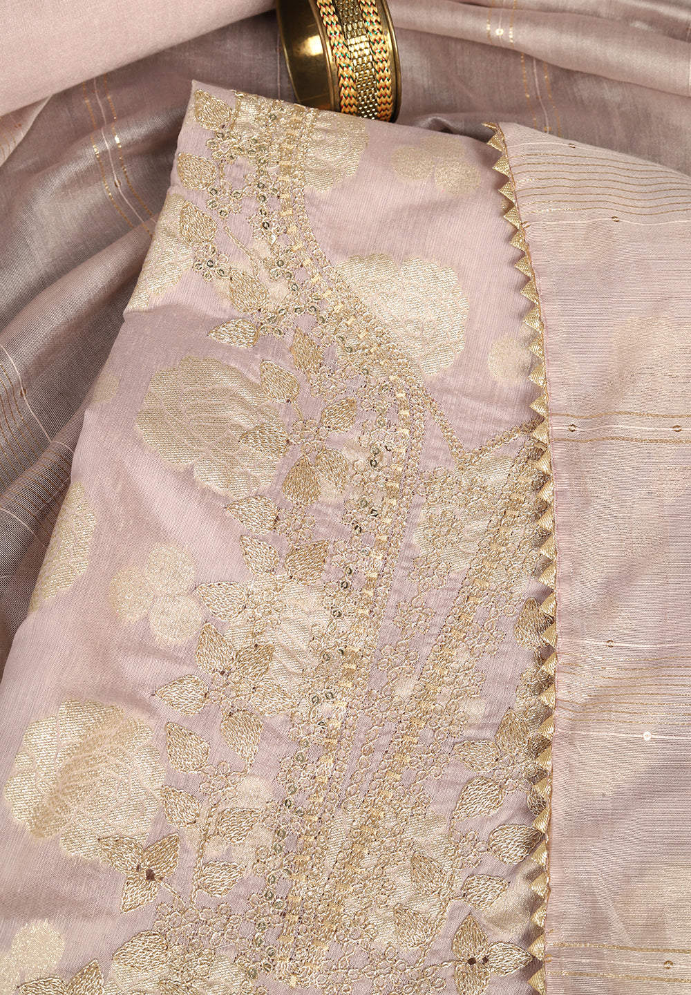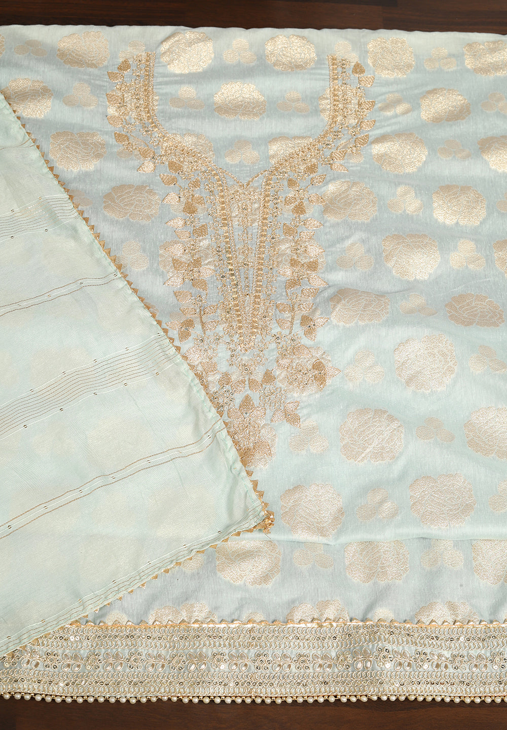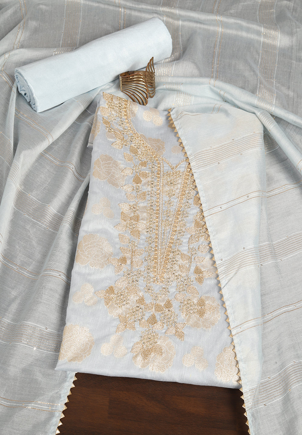 Banarasi Chanderi Unstitched Suit – Zari, Aari & Sequin Detailing