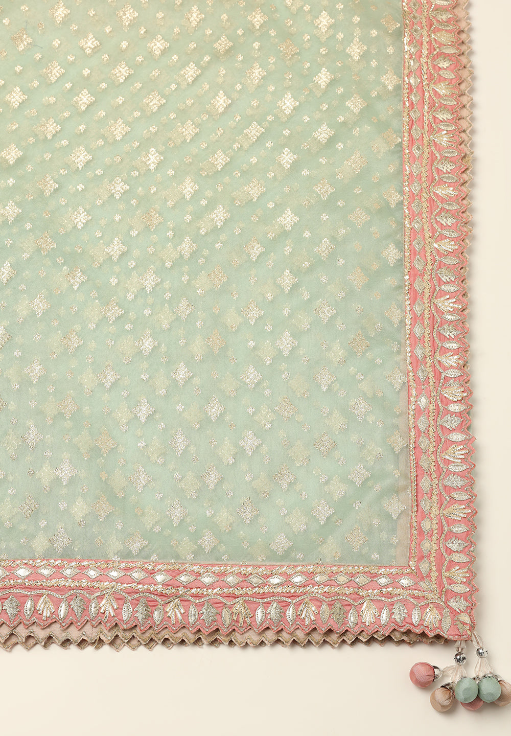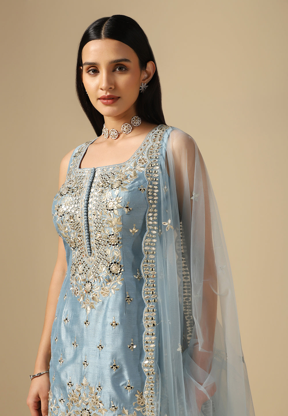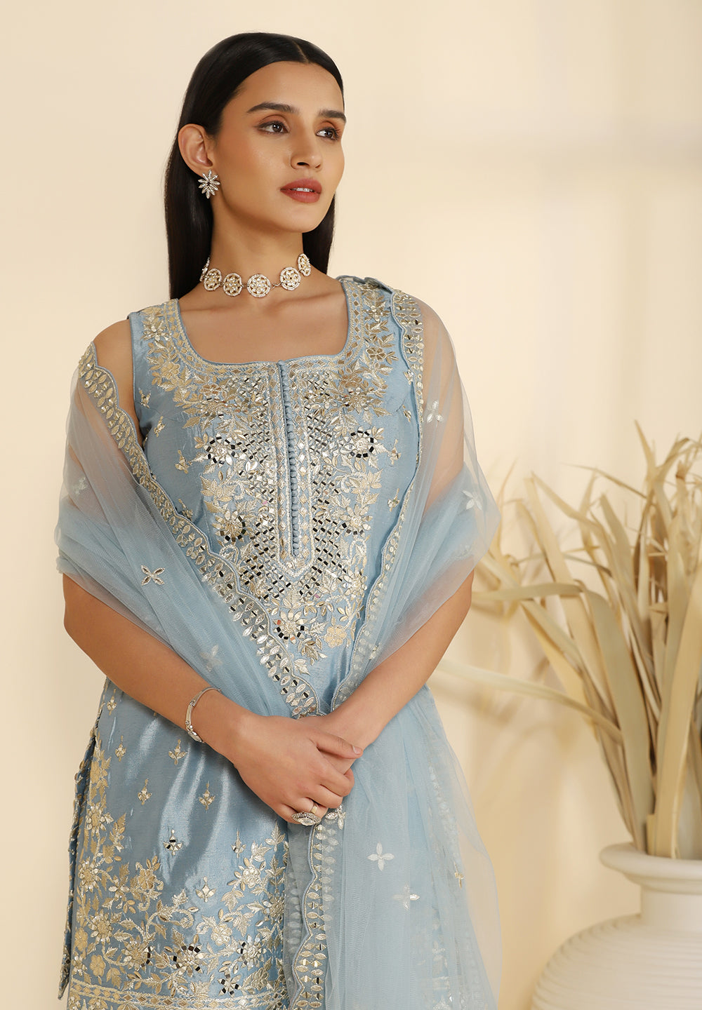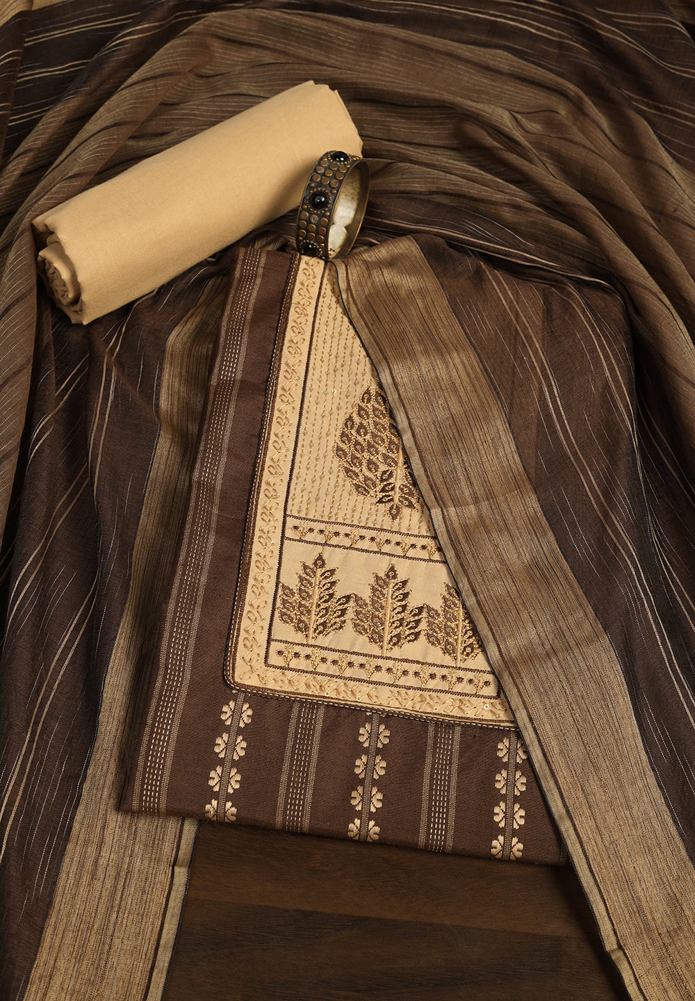 Banarasi Chanderi Unstitched Suit – Zari, Aari & Sequin Detailing