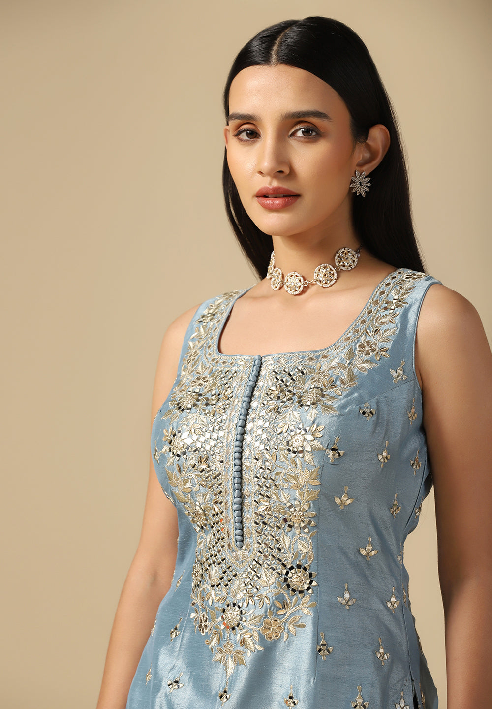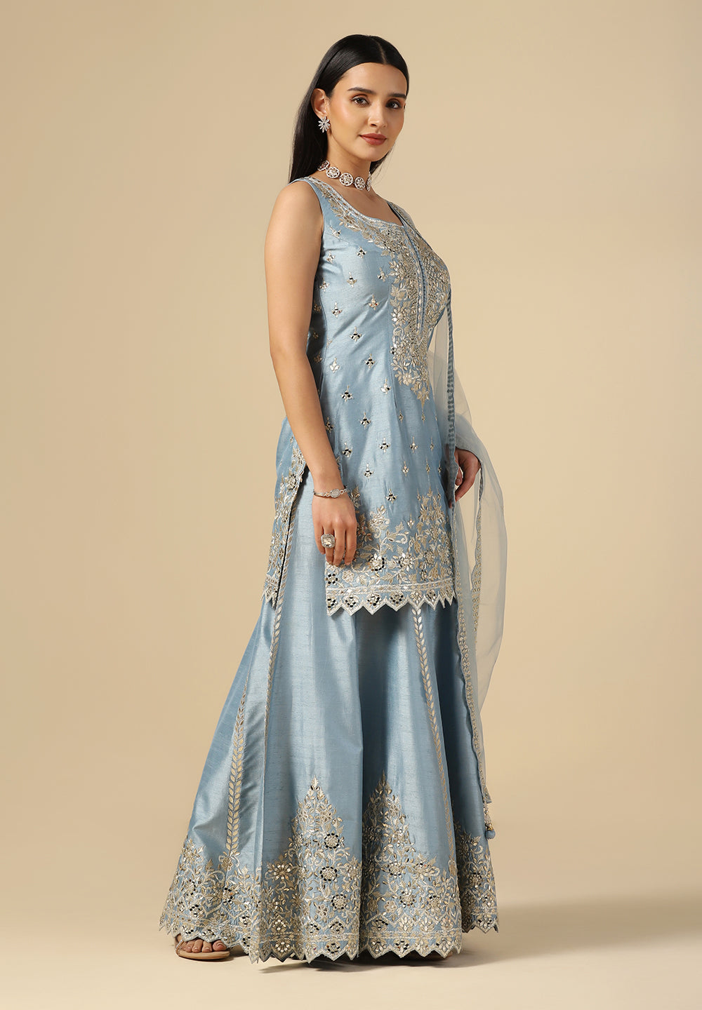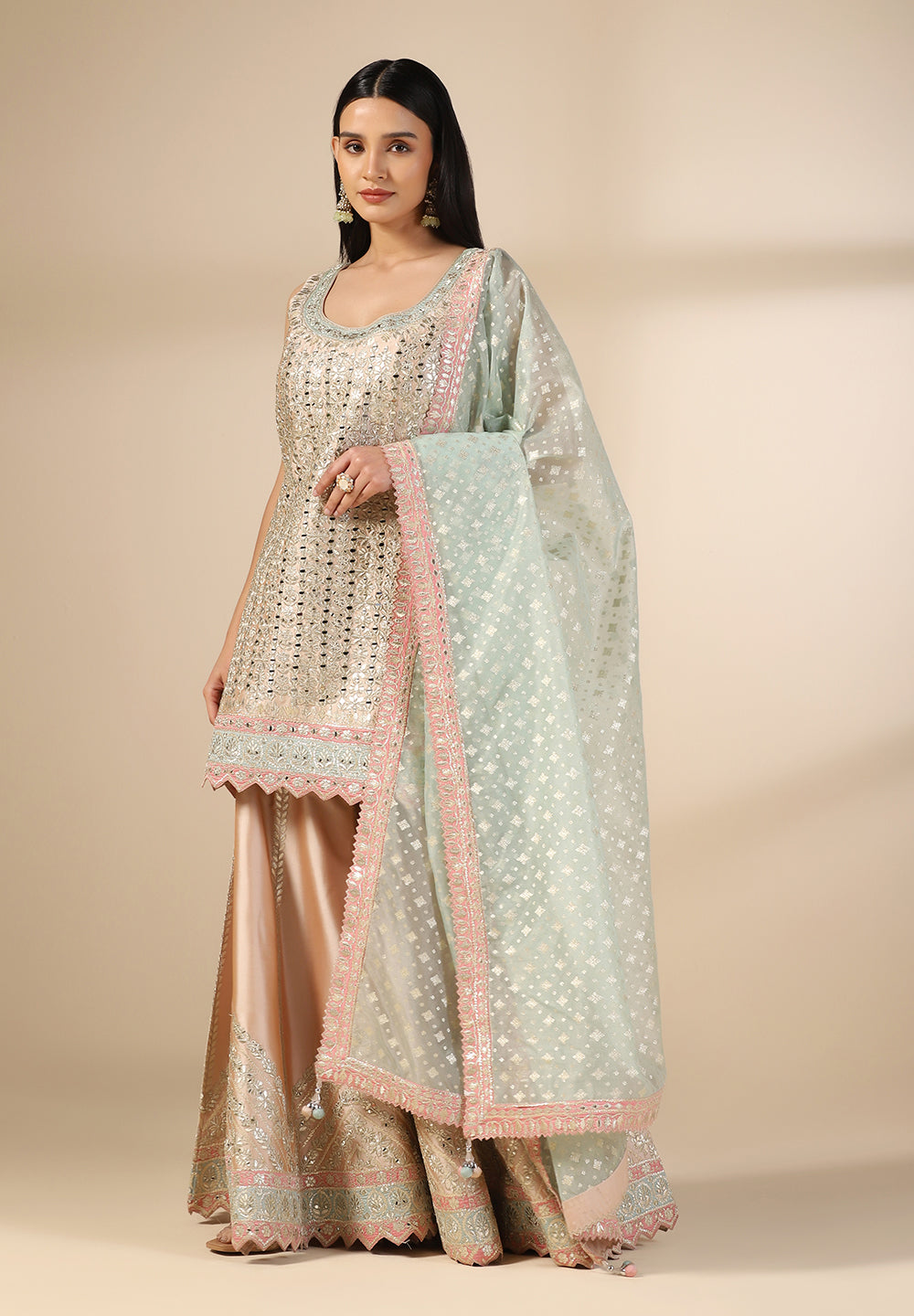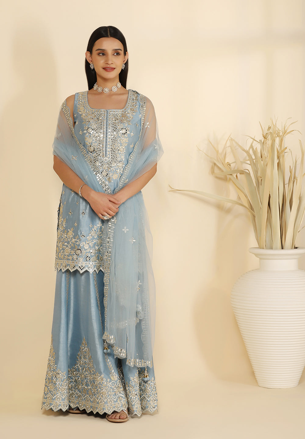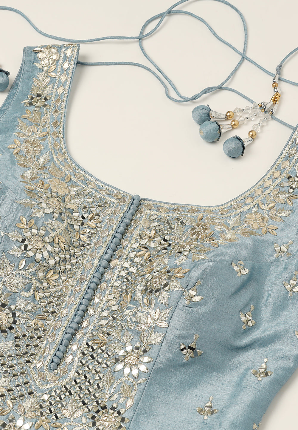 Banarasi Chanderi Unstitched Suit – Zari, Aari & Sequin Detailing