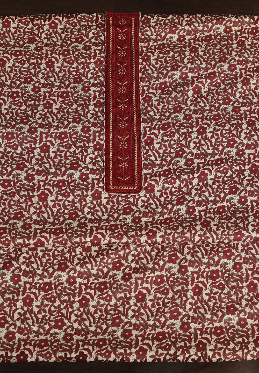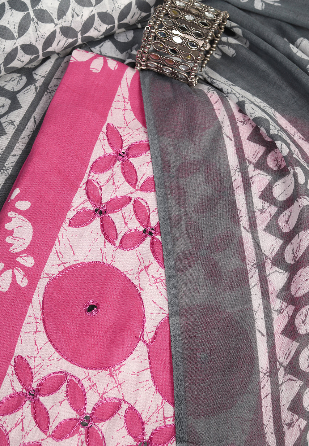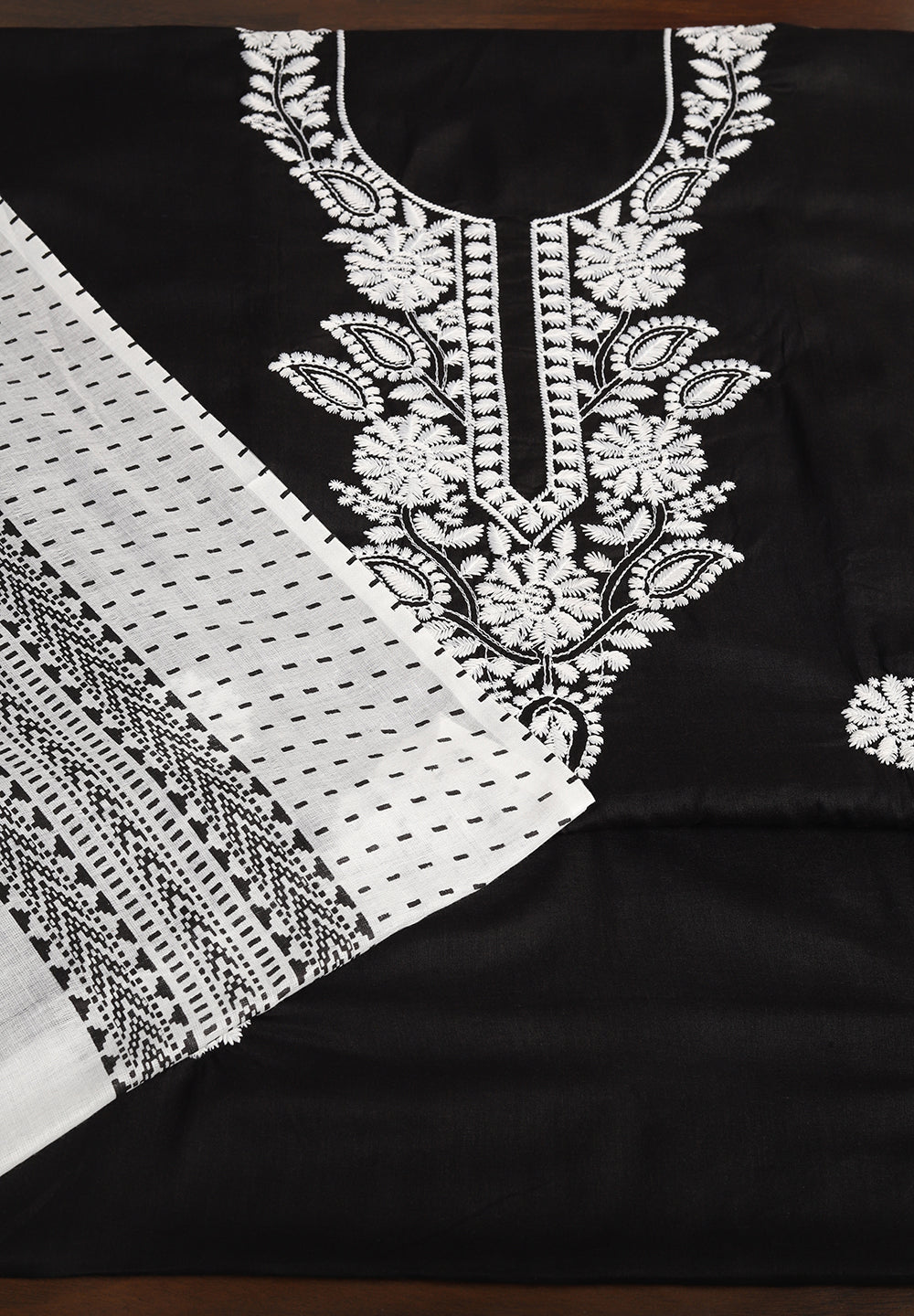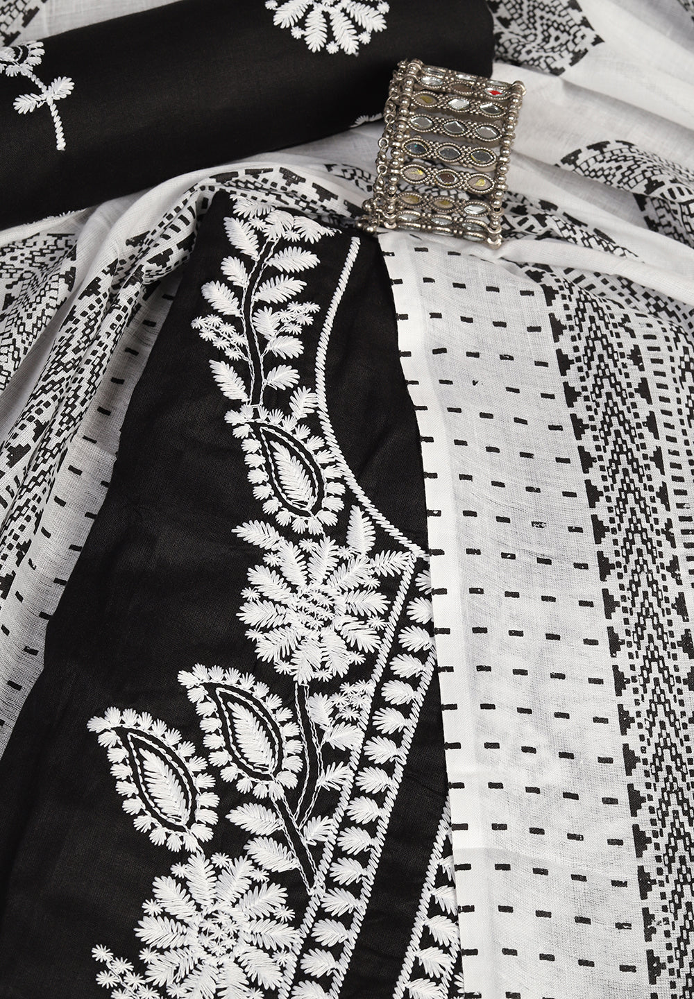 "Unstitched Cotton Suit with Artistic Resham Thread Detailing"