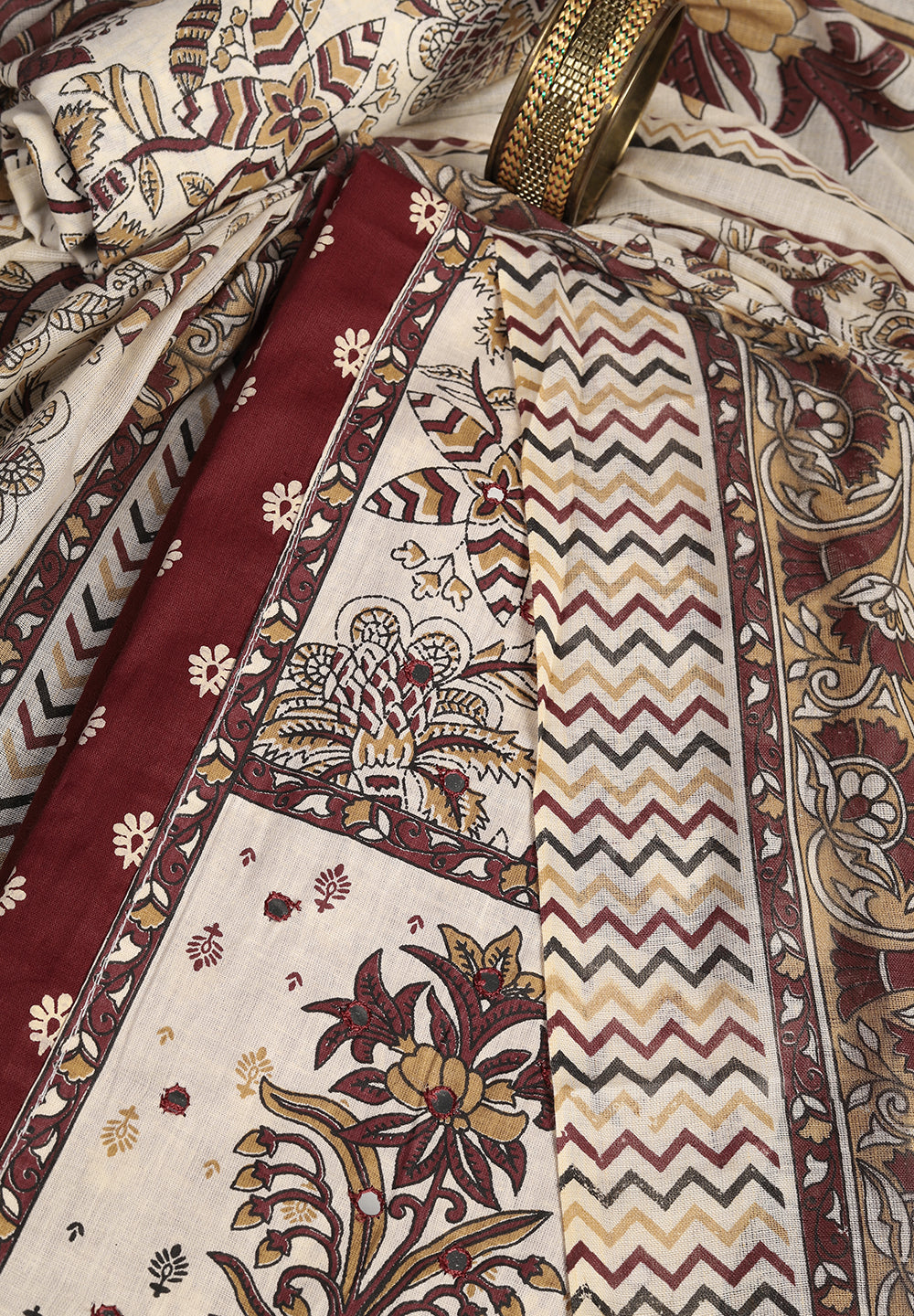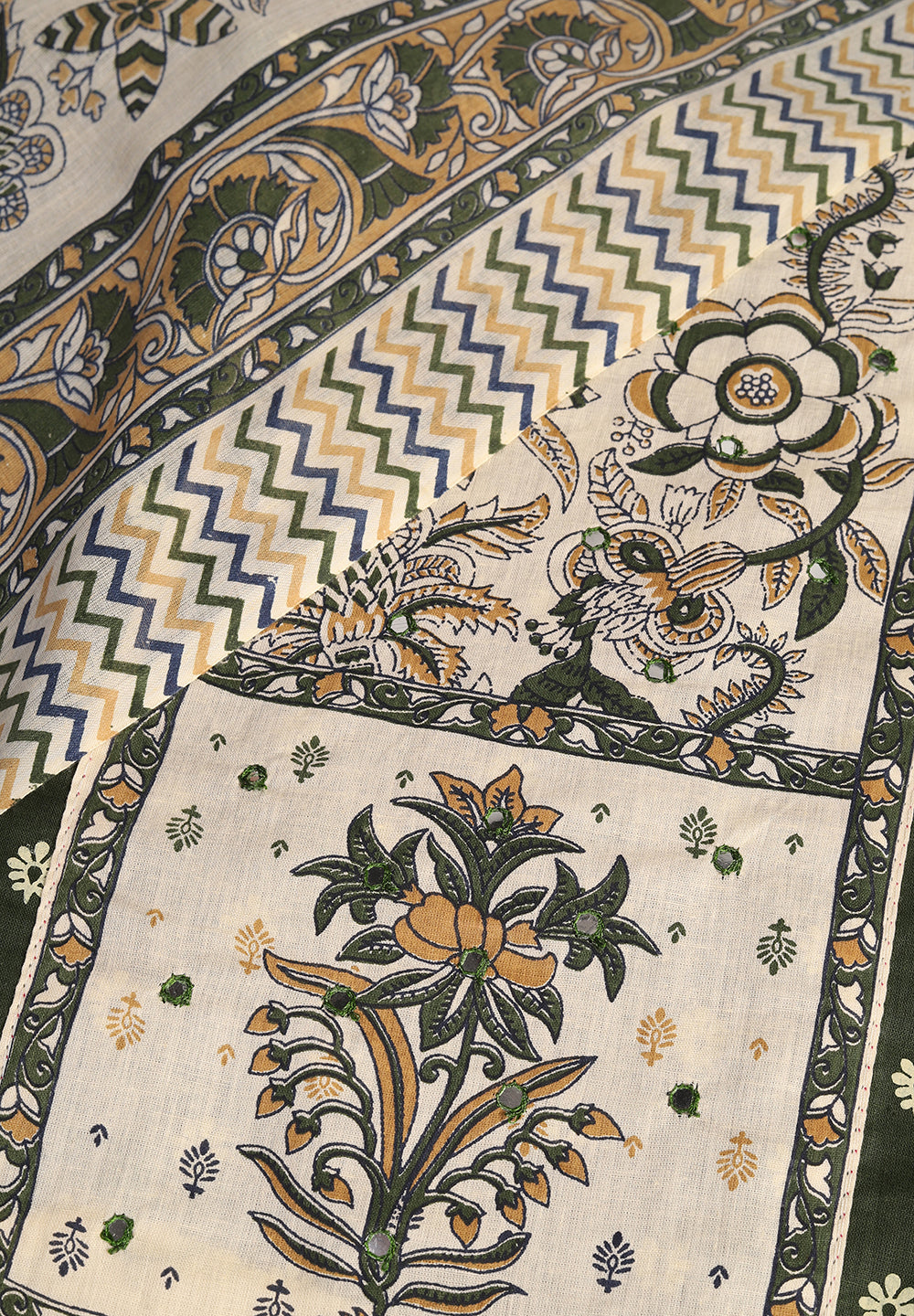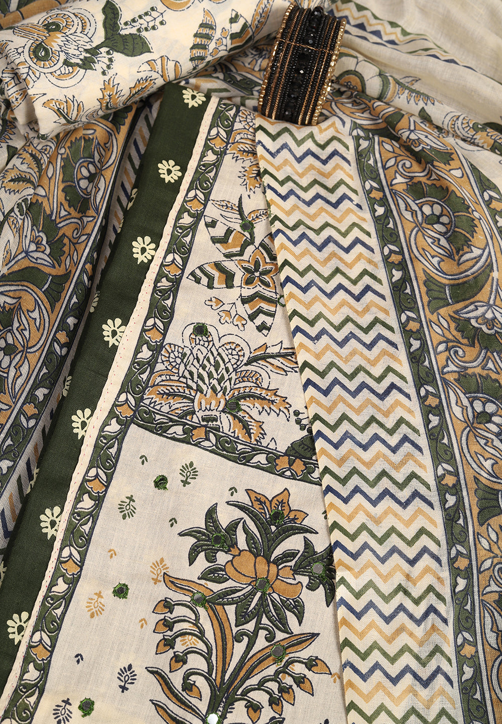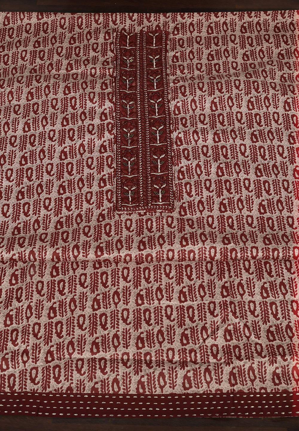 "Unstitched Cotton Suit with Artistic Resham Thread Detailing"