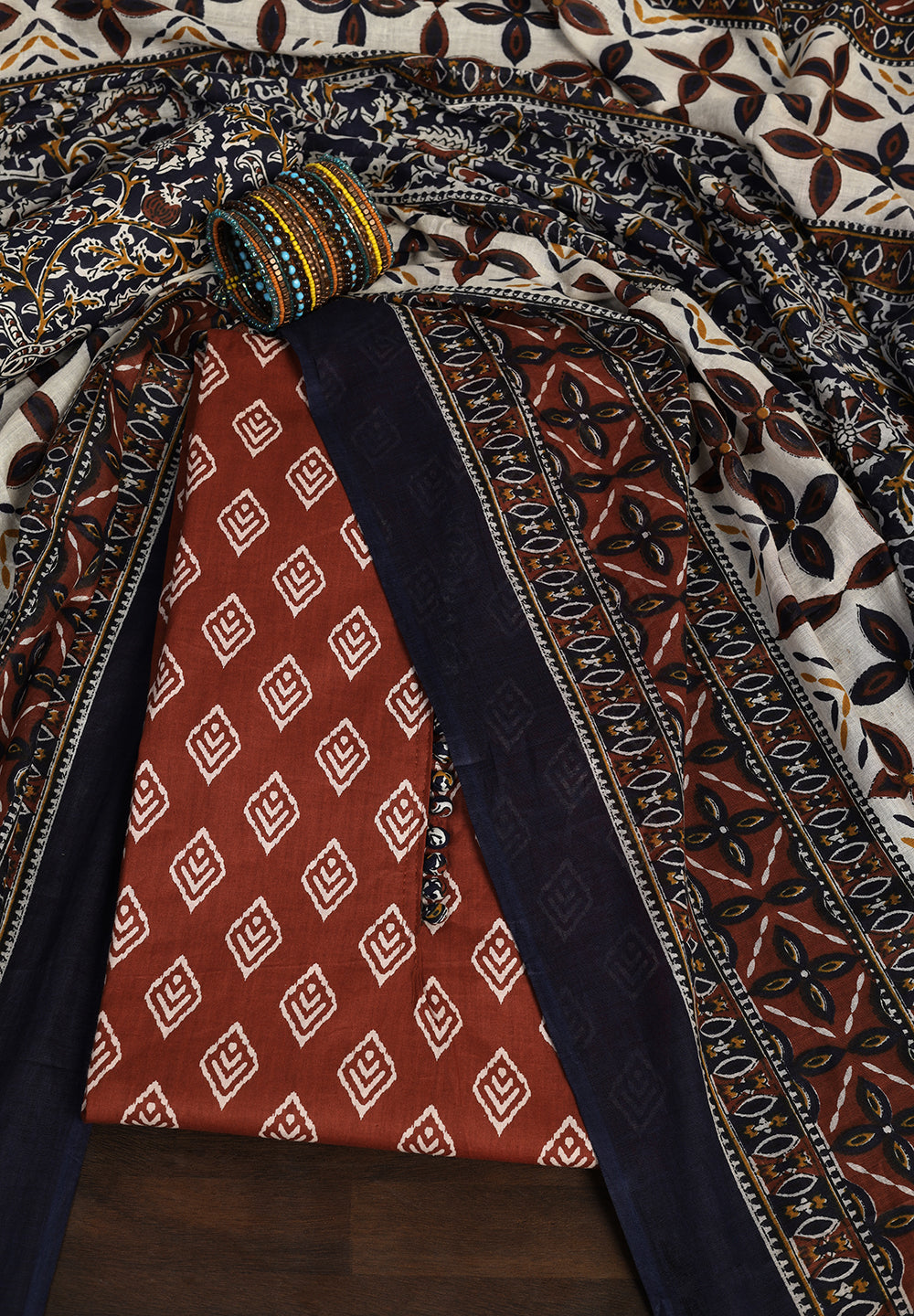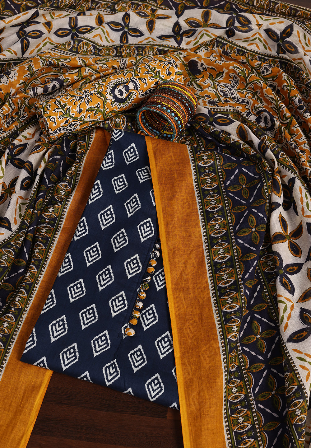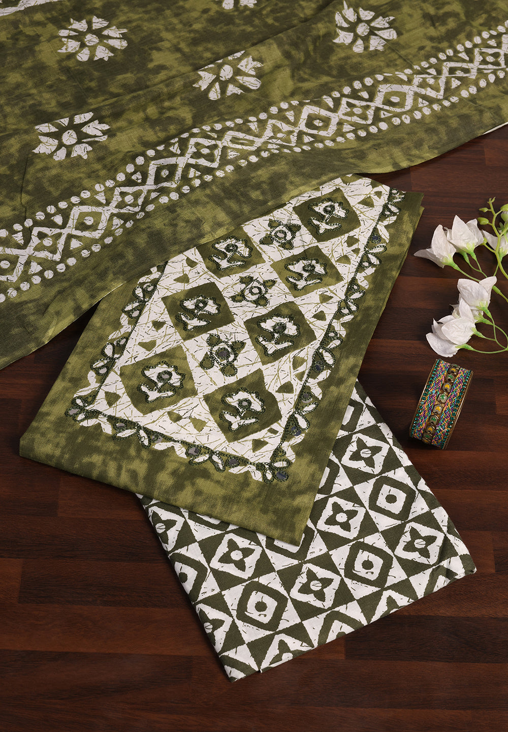"Timeless Beauty: Cotton Unstitched Suit with Authentic Batik Print"