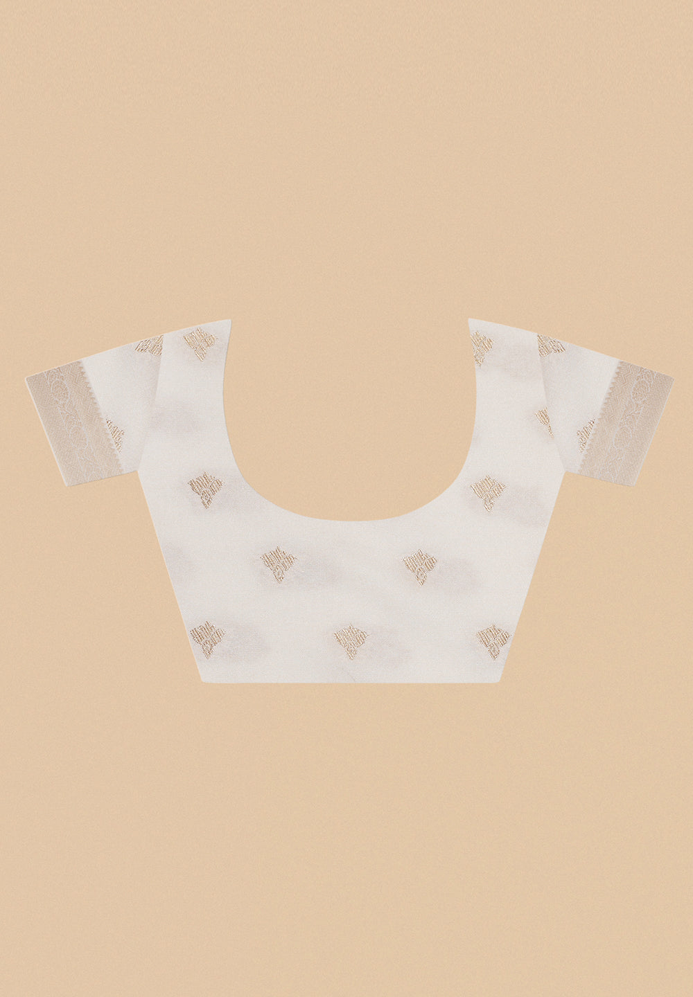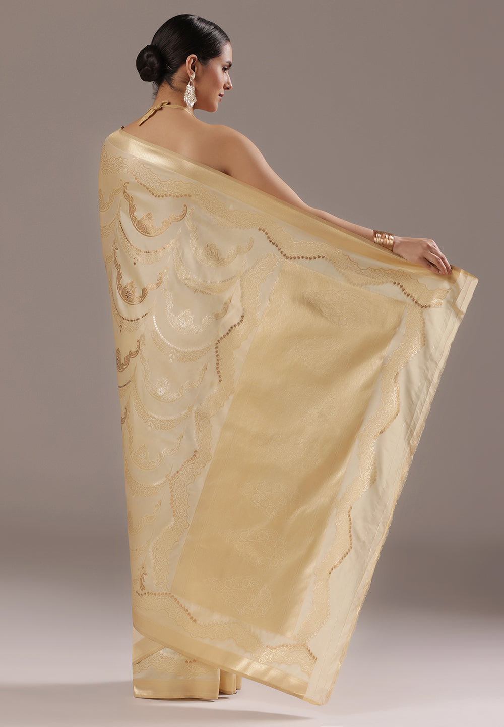 A Touch of Royalty: Cream Banarasi Silk Saree with Golden Zari Accents