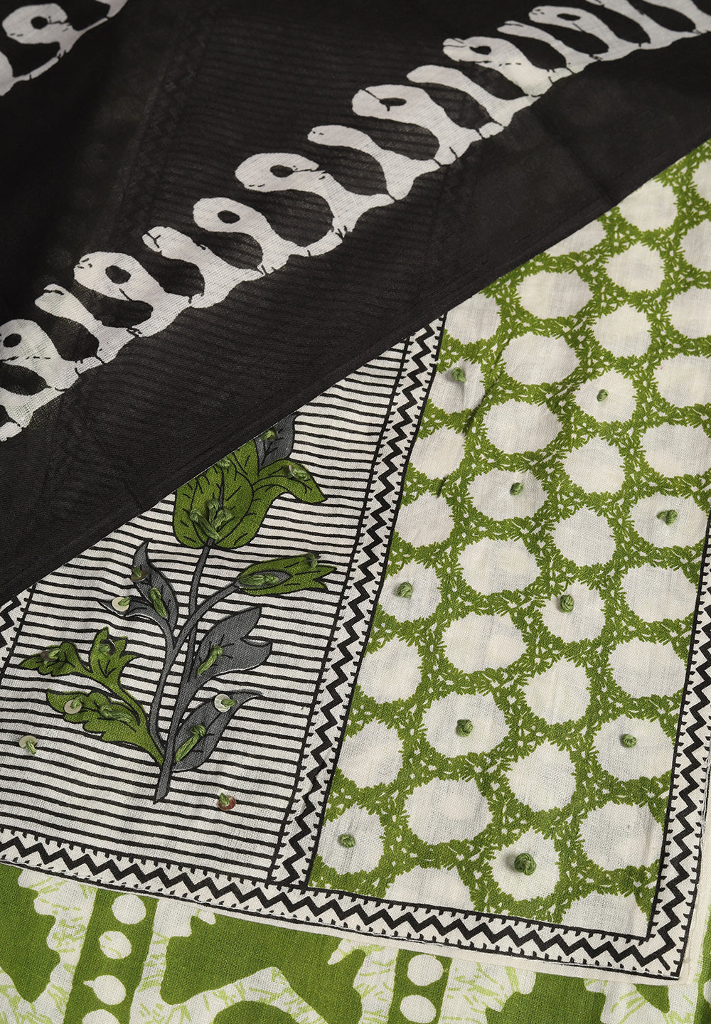 "Grace in Every Stitch: Cotton Unstitched Suit with Fine Resham Work"
