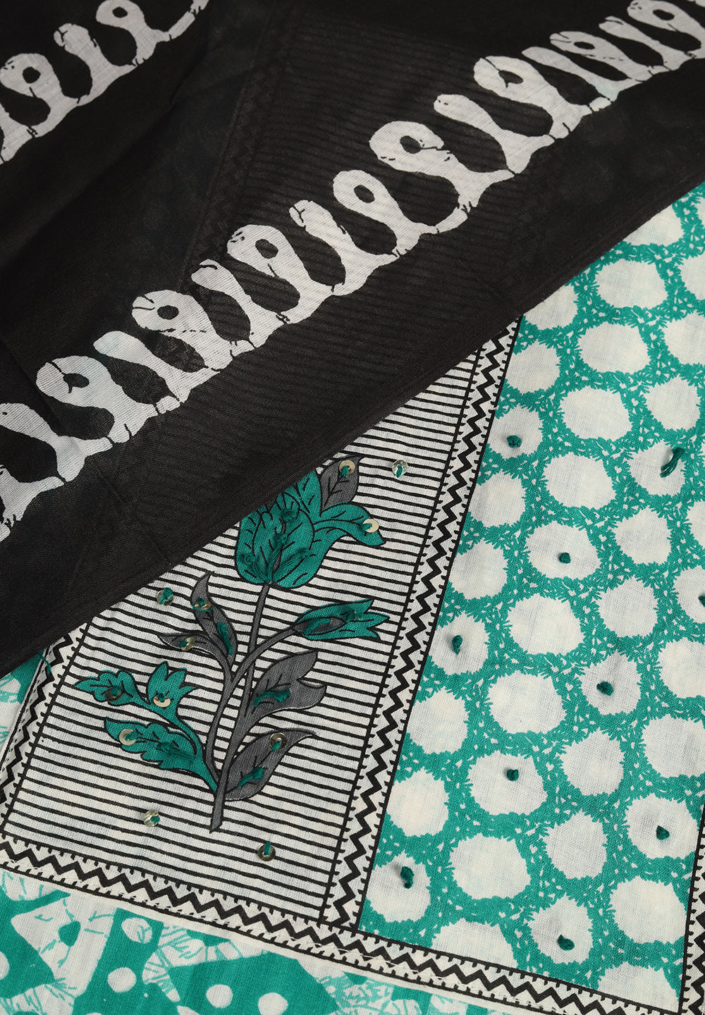 "Breezy Cotton Charm: Unstitched Printed Suit with Striking Contrast Dupatta"