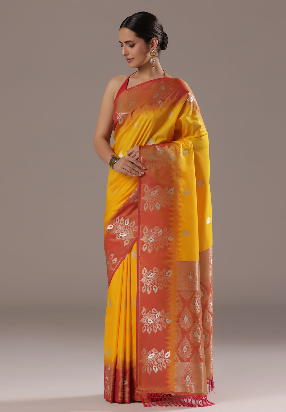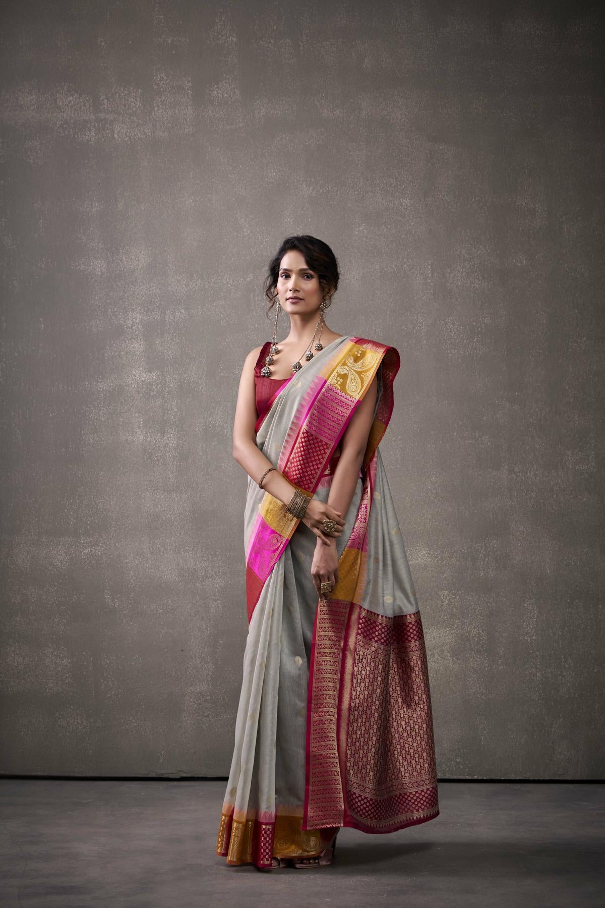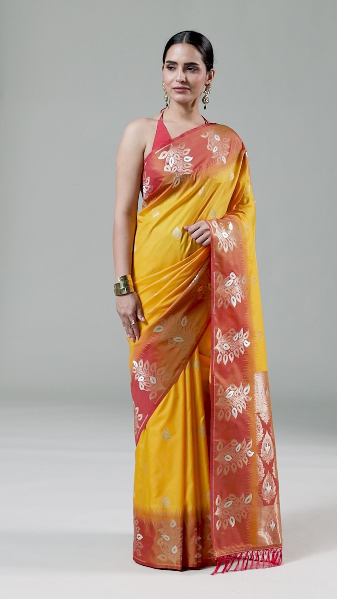 - Authentic Craftsmanship: Every saree is handwoven by skilled artisans from Varanasi using age-old techniques.