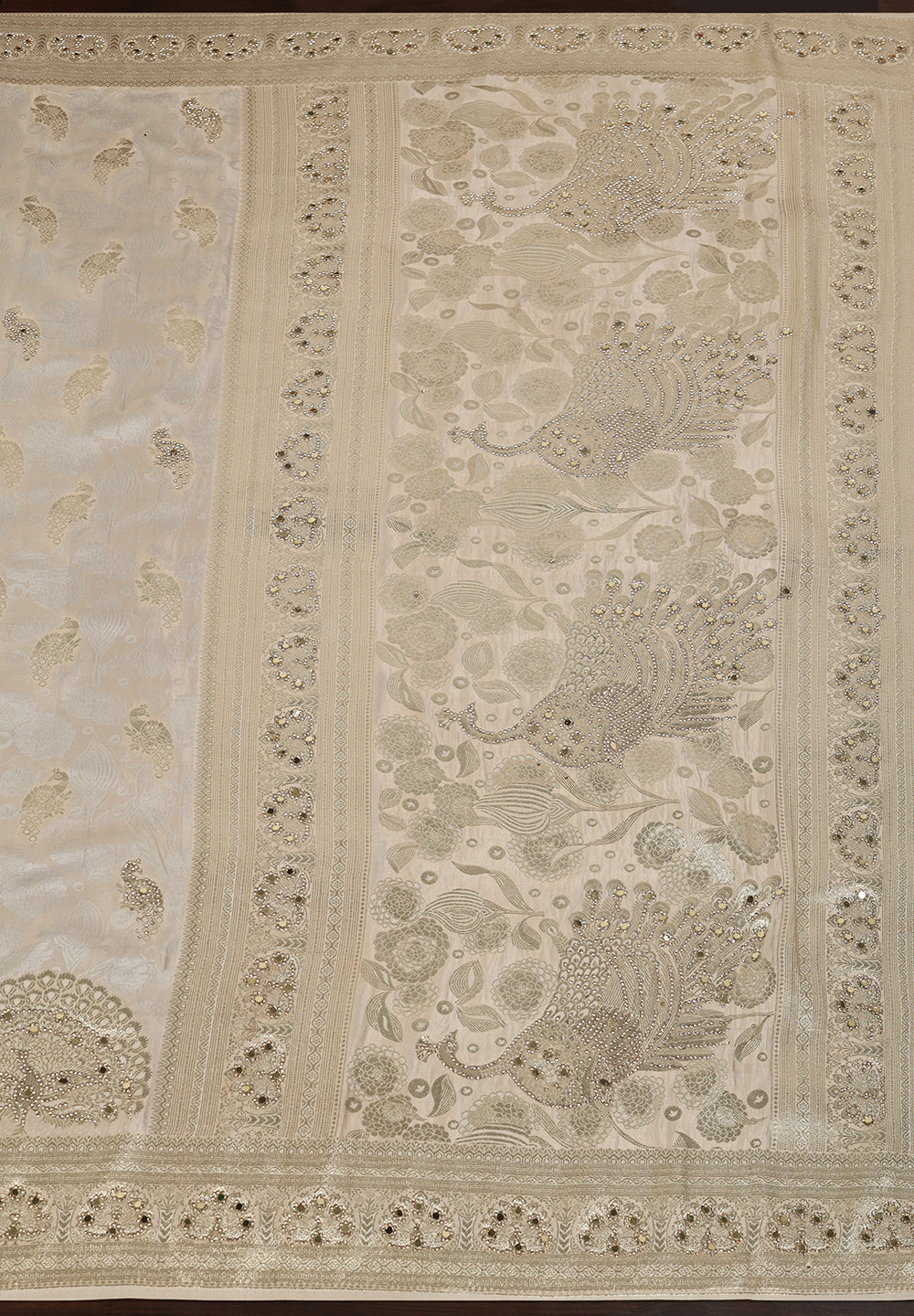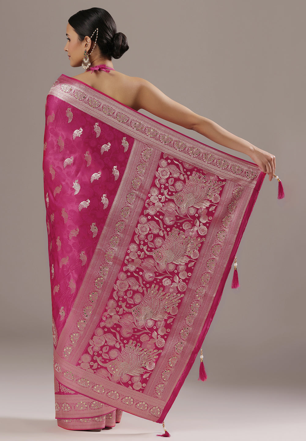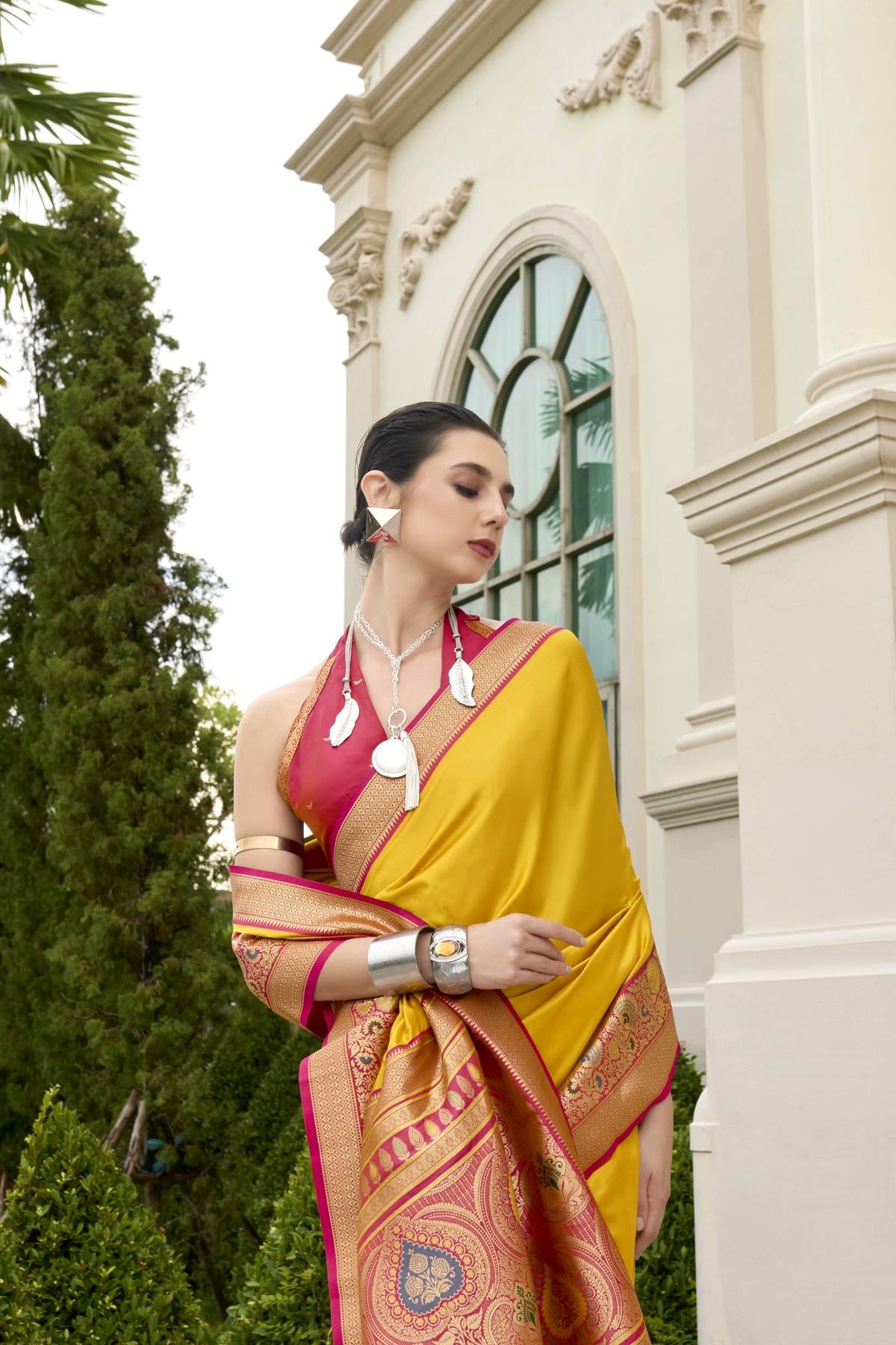 - Authentic Craftsmanship: Every saree is handwoven by skilled artisans from Varanasi using age-old techniques.
