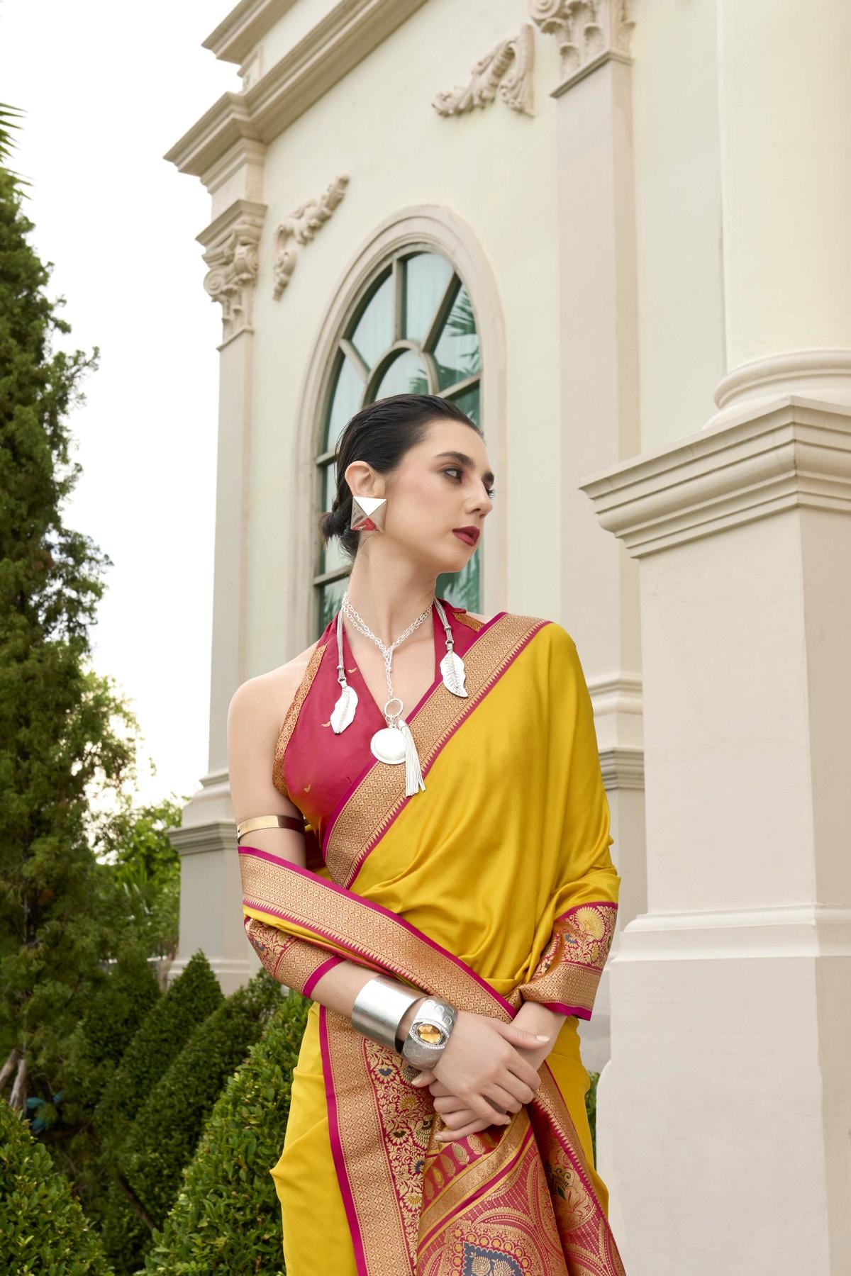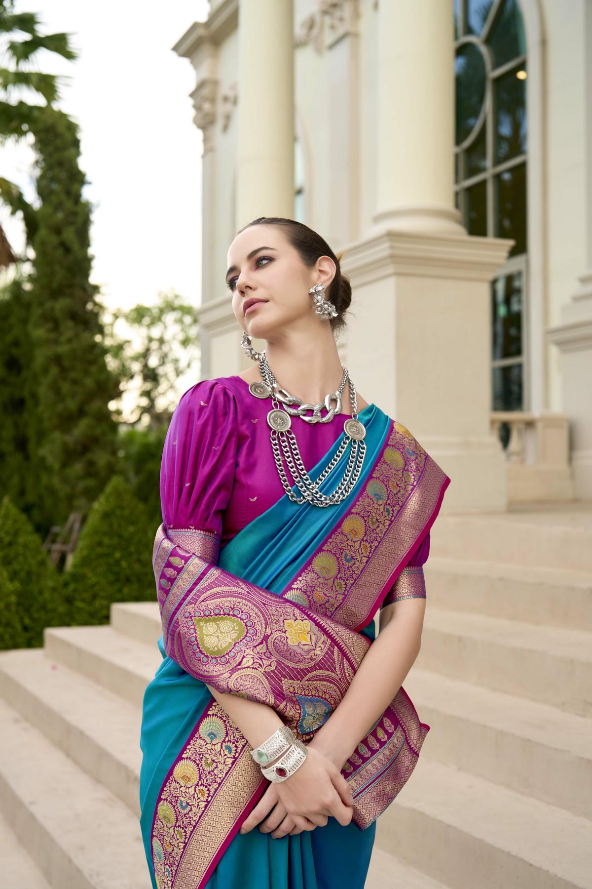 A. Absolutely. Pair your Banarasi saree with a contemporary blouse, minimal jewelry, and modern draping styles for a chic, fusion look.