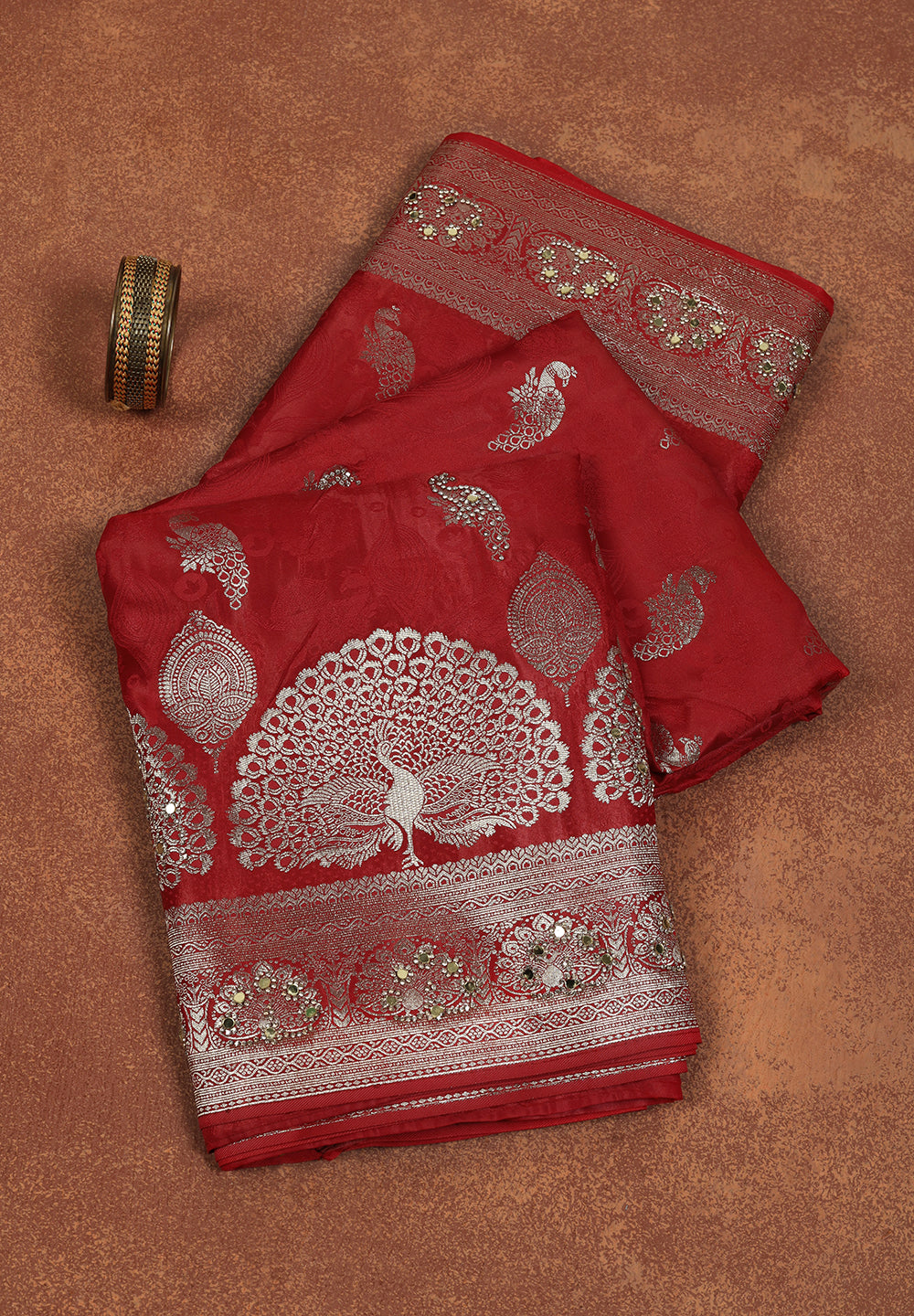 Perfect for Diwali, Karwa Chauth, or family gatherings, our lightweight Banarasi georgette sarees and Banarasi organza sarees offer comfort and grace in equal measure. These sarees drape effortlessly, making them ideal for day-to-night festive dressing.