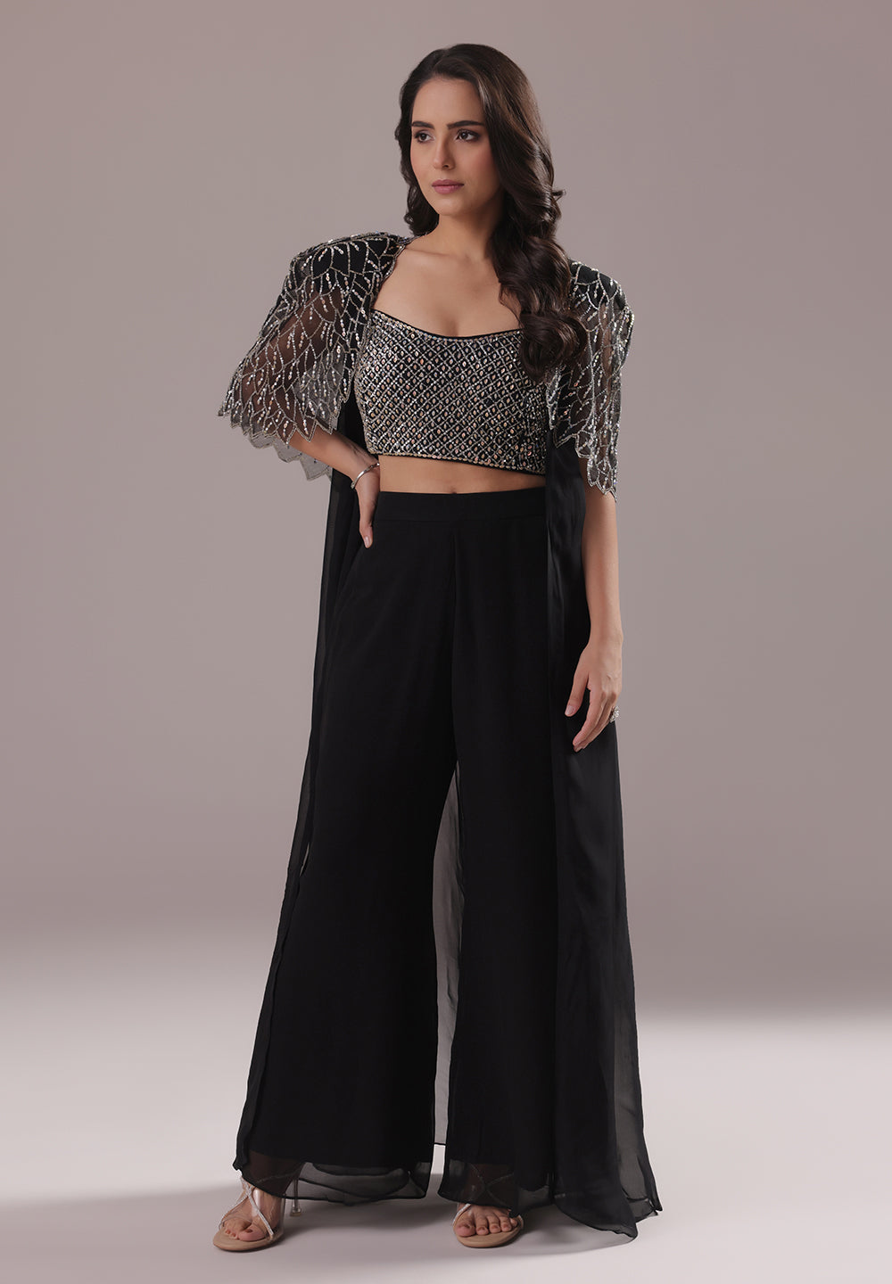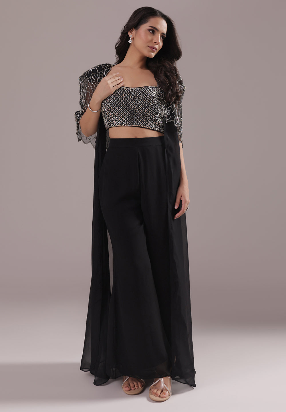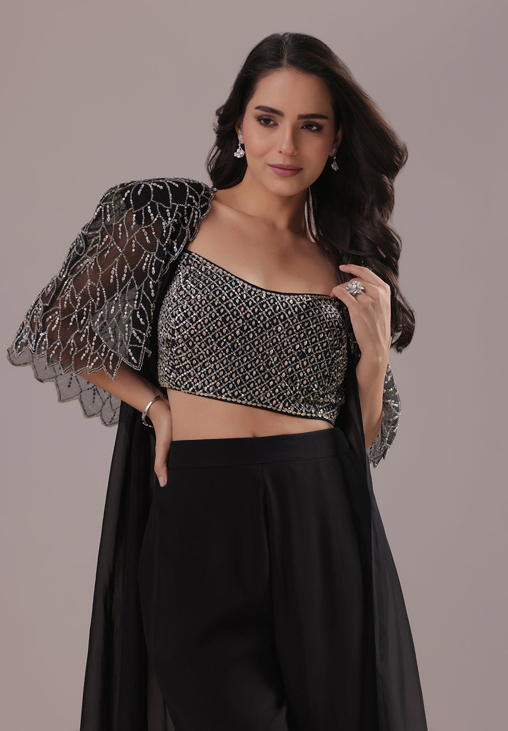 Black Sequin Cape Co-ord Set