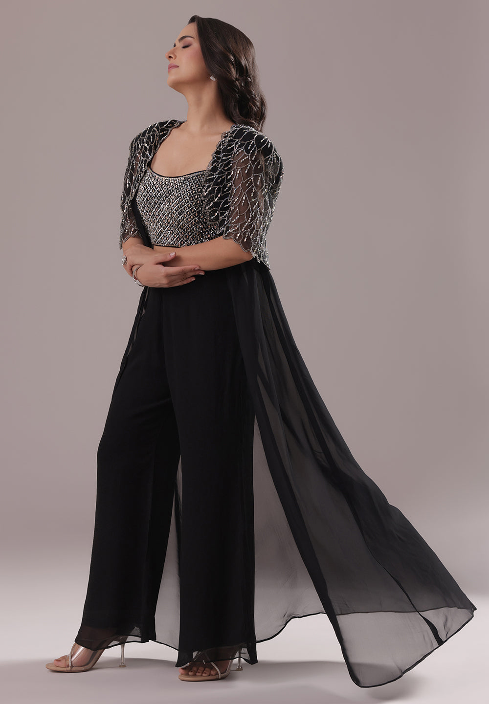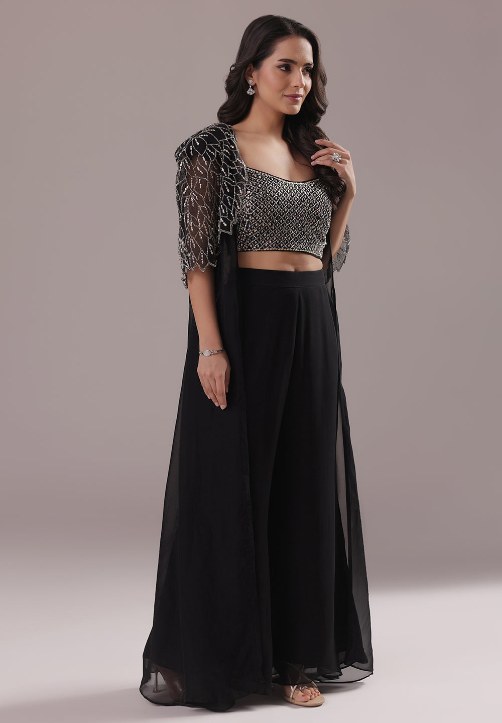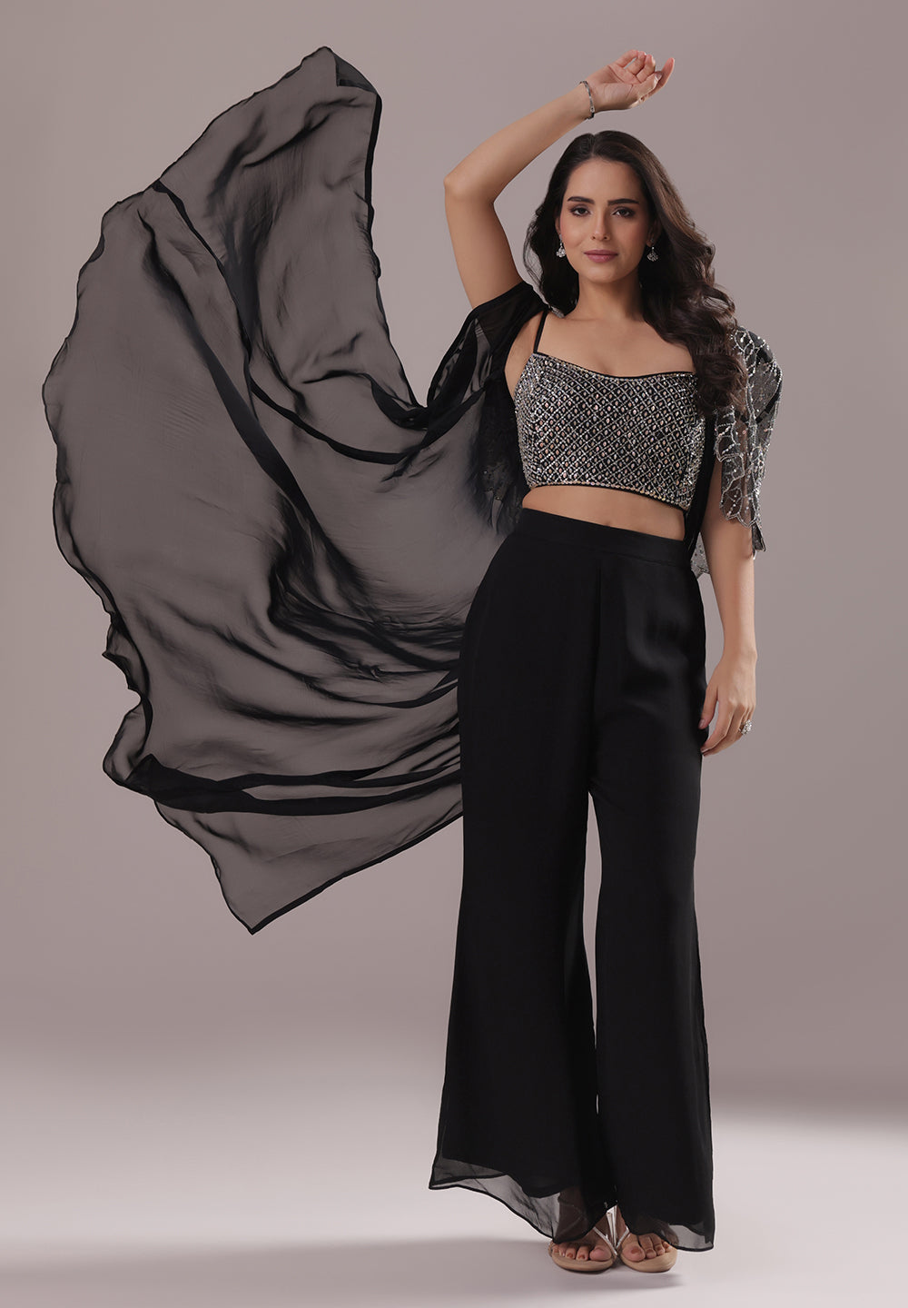 Black Sequin Cape Co-ord Set