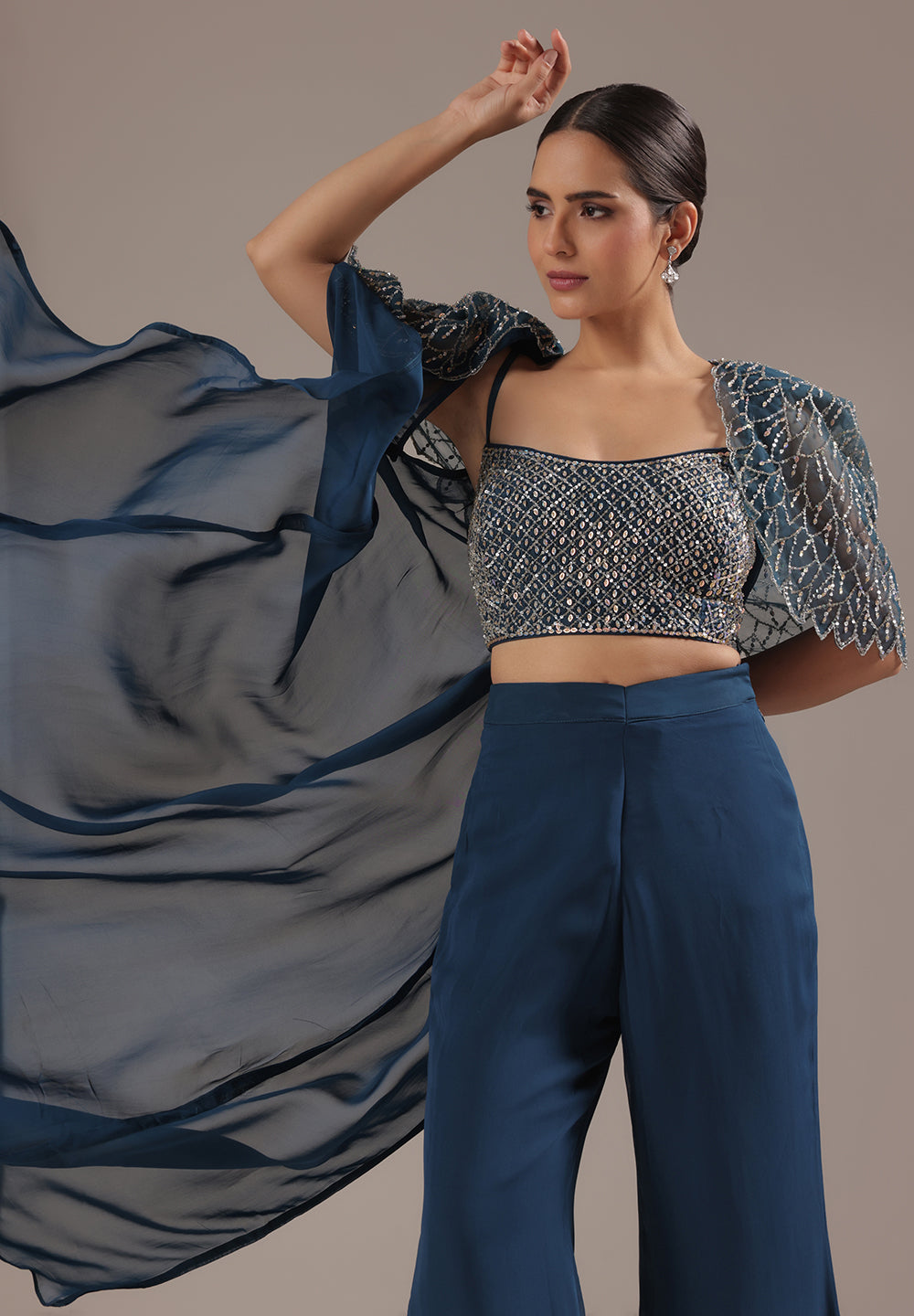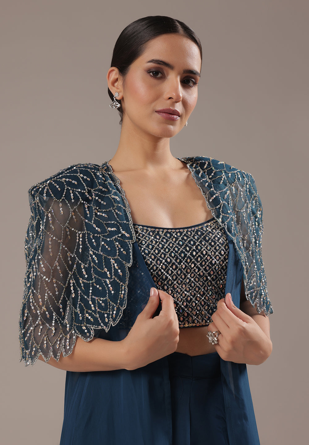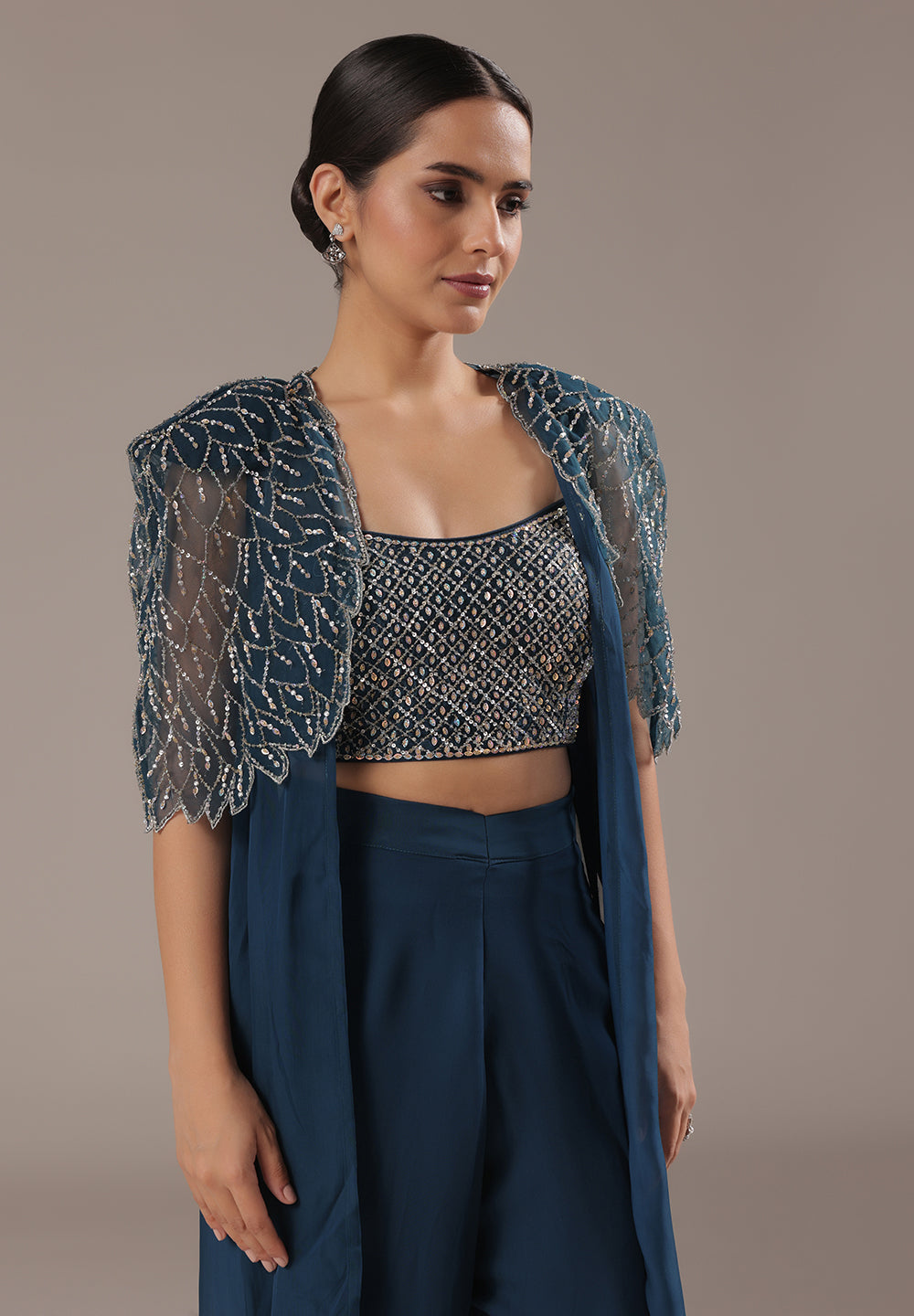 Blue Sequin Cape Co-ord Set