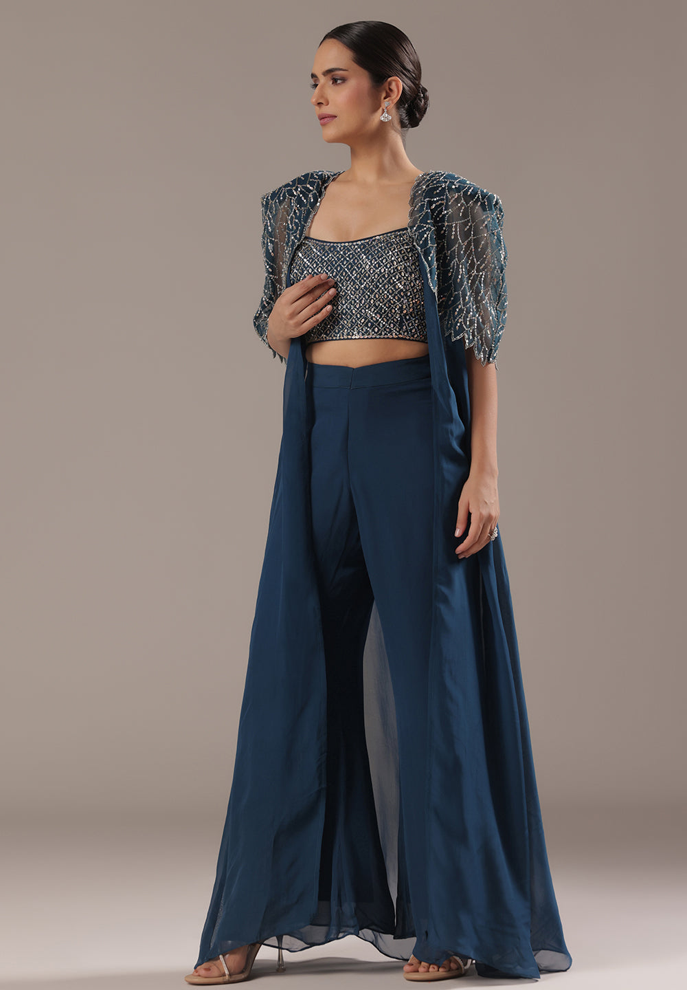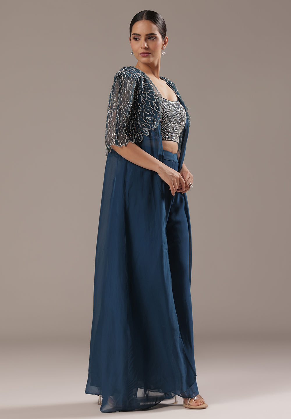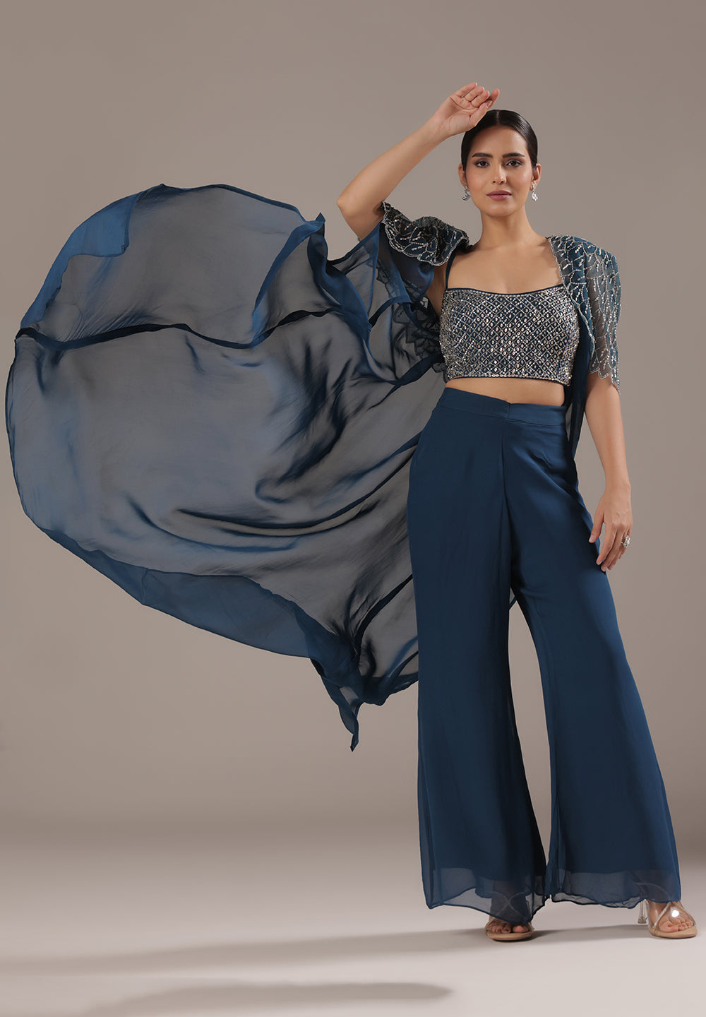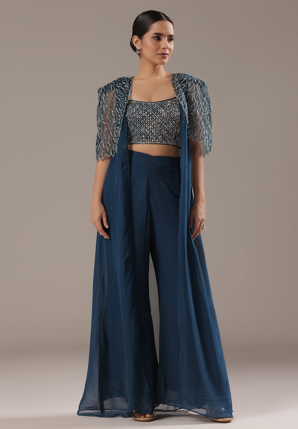 Blue Sequin Cape Co-ord Set