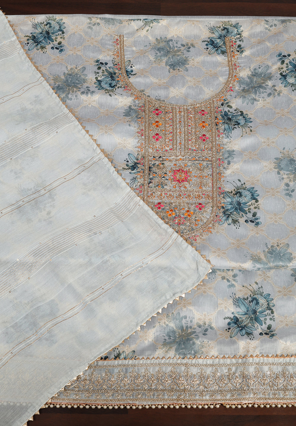 - Experiment with Dupattas: Pair your suit with a contrasting Banarasi, organza, or net dupatta to elevate the overall look.