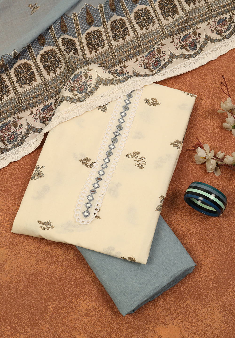 Our cotton suit sets are crafted from breathable, soft fabrics that ensure comfort all day long, while the Banarasi Chanderi unstitched suits add a touch of luxury with zari and sequin detailing. Each fabric tells a story of India’s traditional craftsmanship — whether it’s the fine texture of muslin cotton, the subtle sheen of linen-cotton, or the charm of printed cotton dress materials.