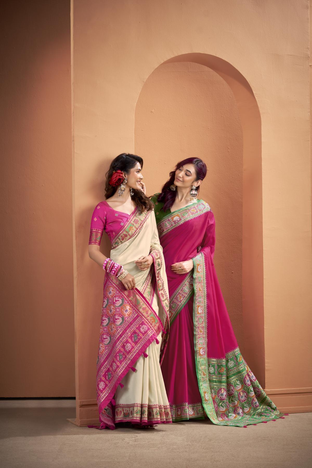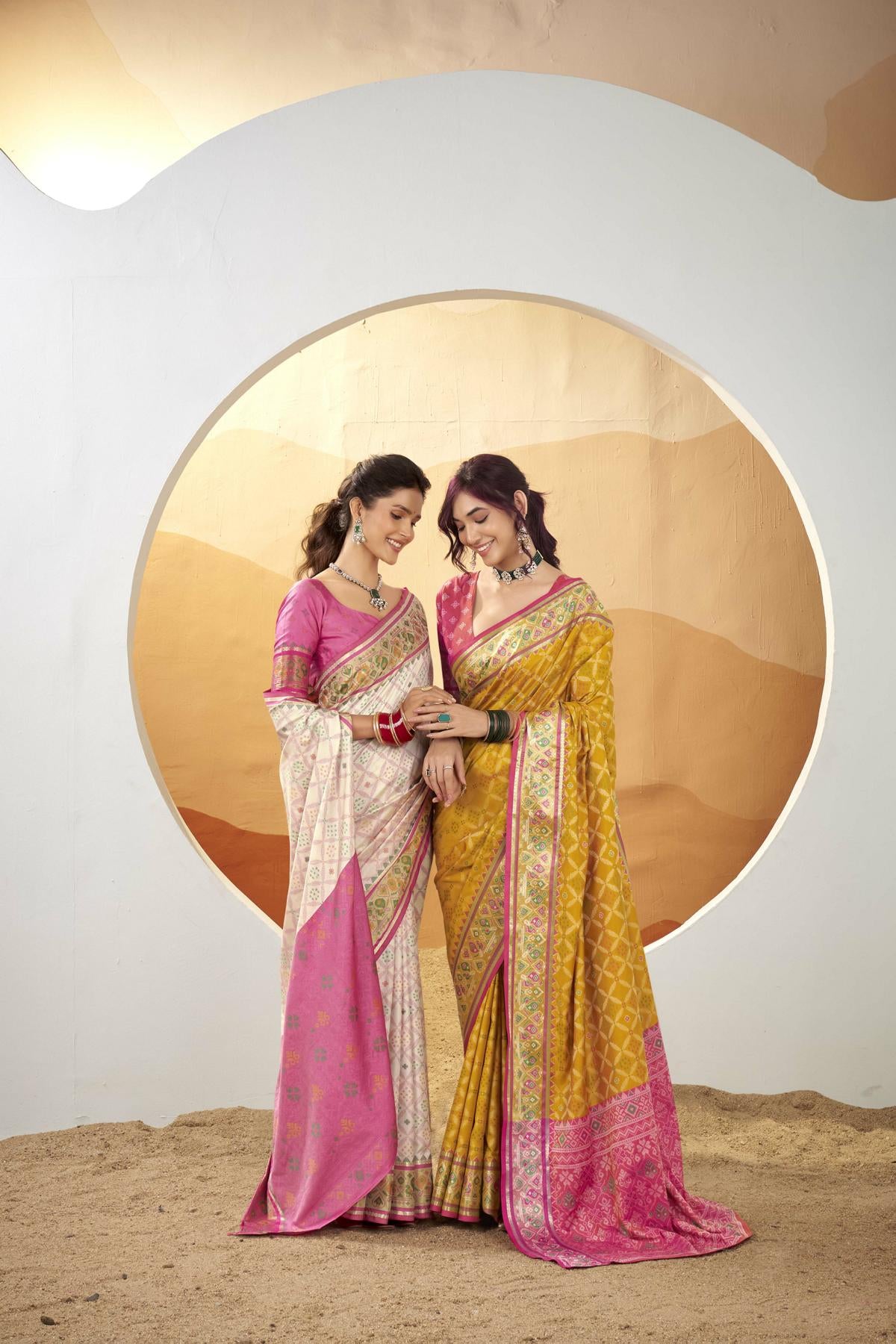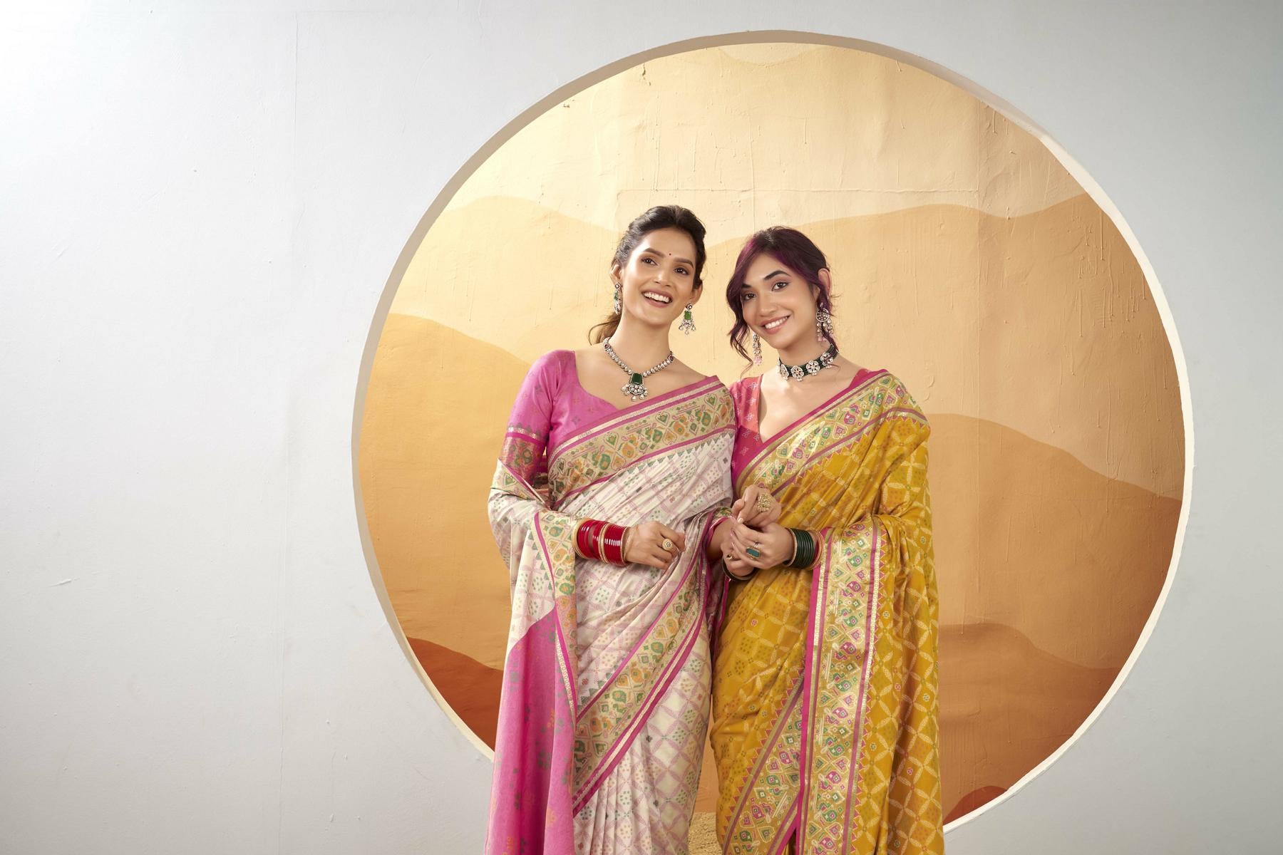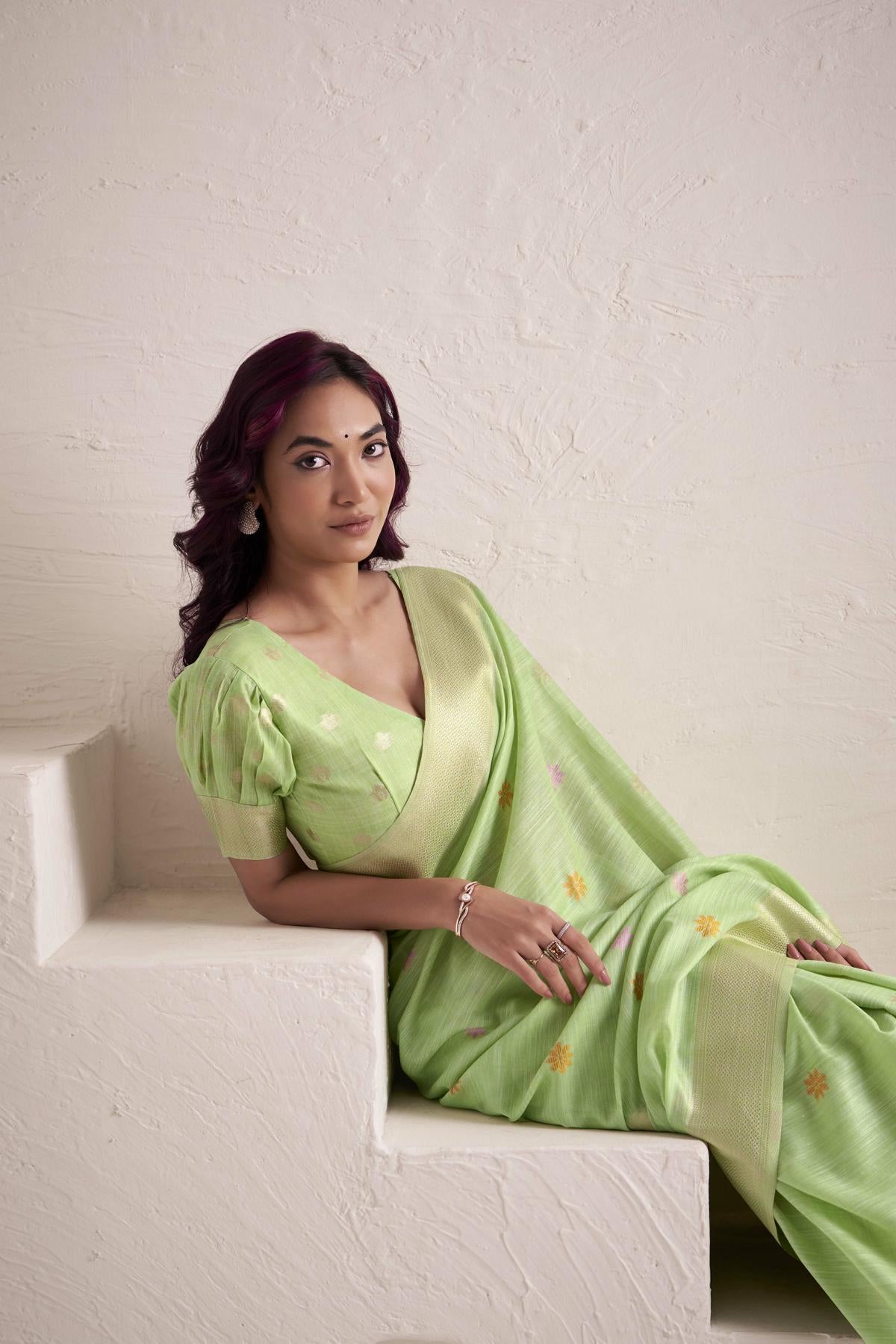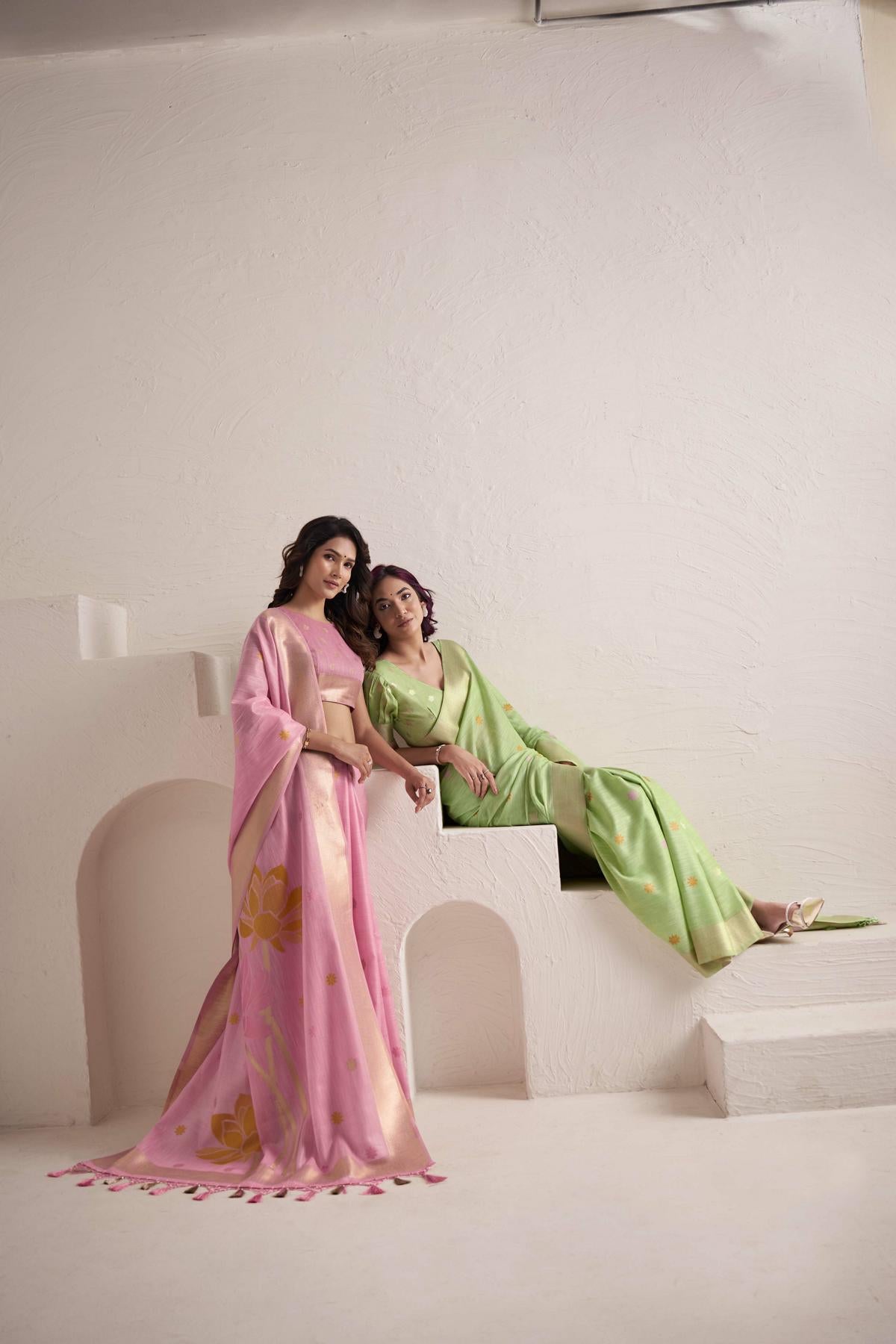 These sarees are perfect for brunches, festive poojas, or outdoor celebrations — giving you a radiant, graceful look that defines the essence of modern ethnic wear for women.