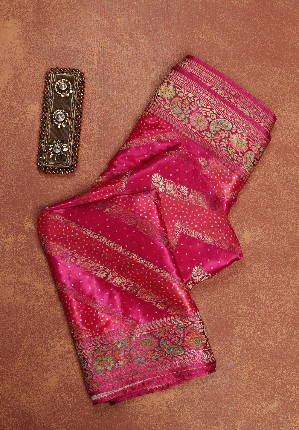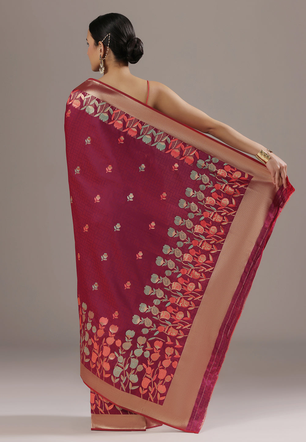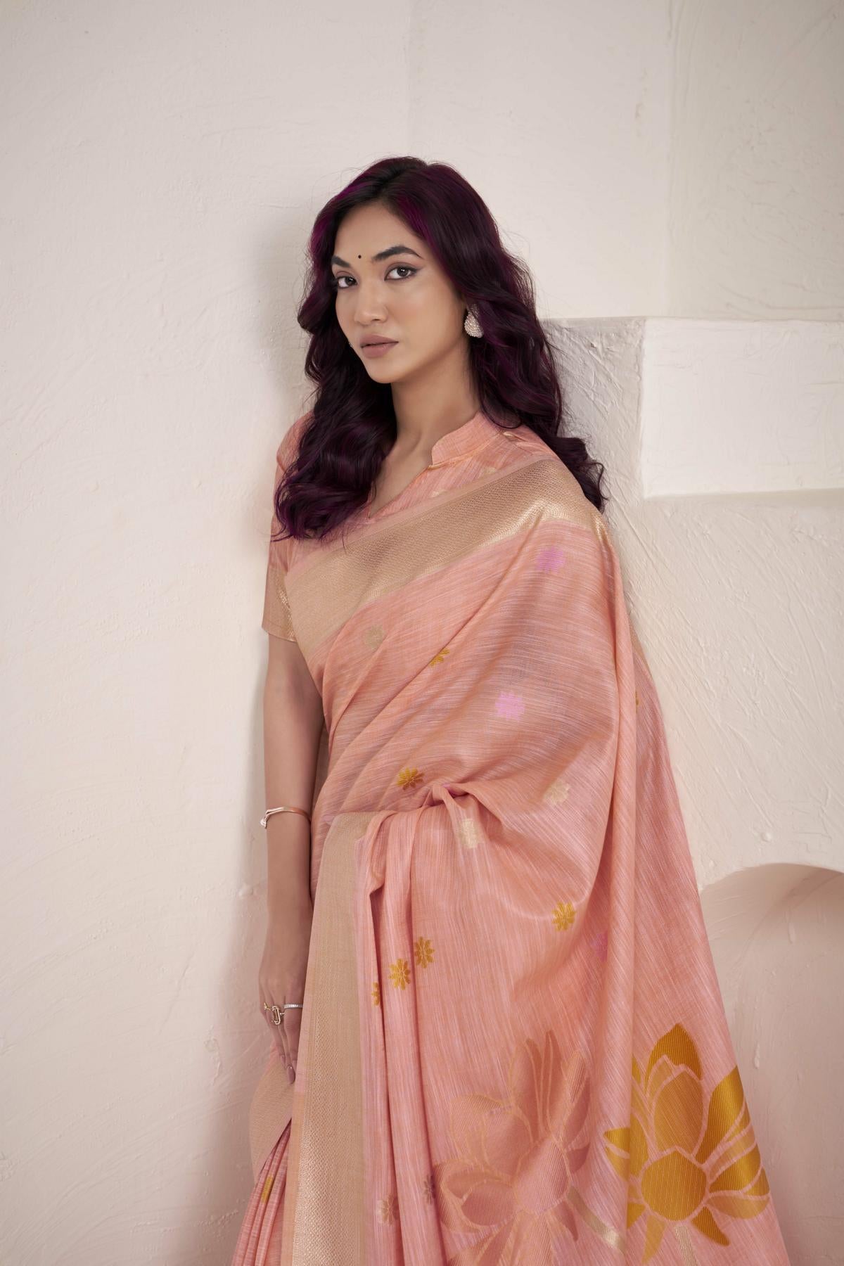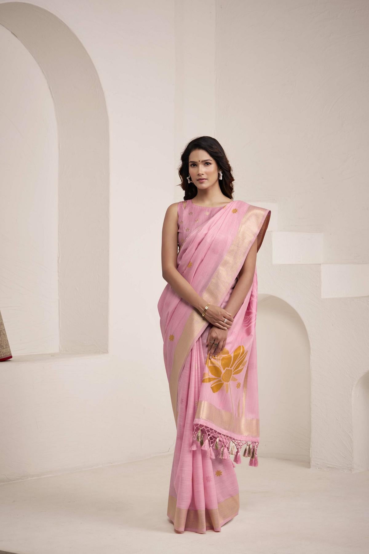 - Opt for lightweight jewellery when wearing Banarasi floral sarees to balance the look.