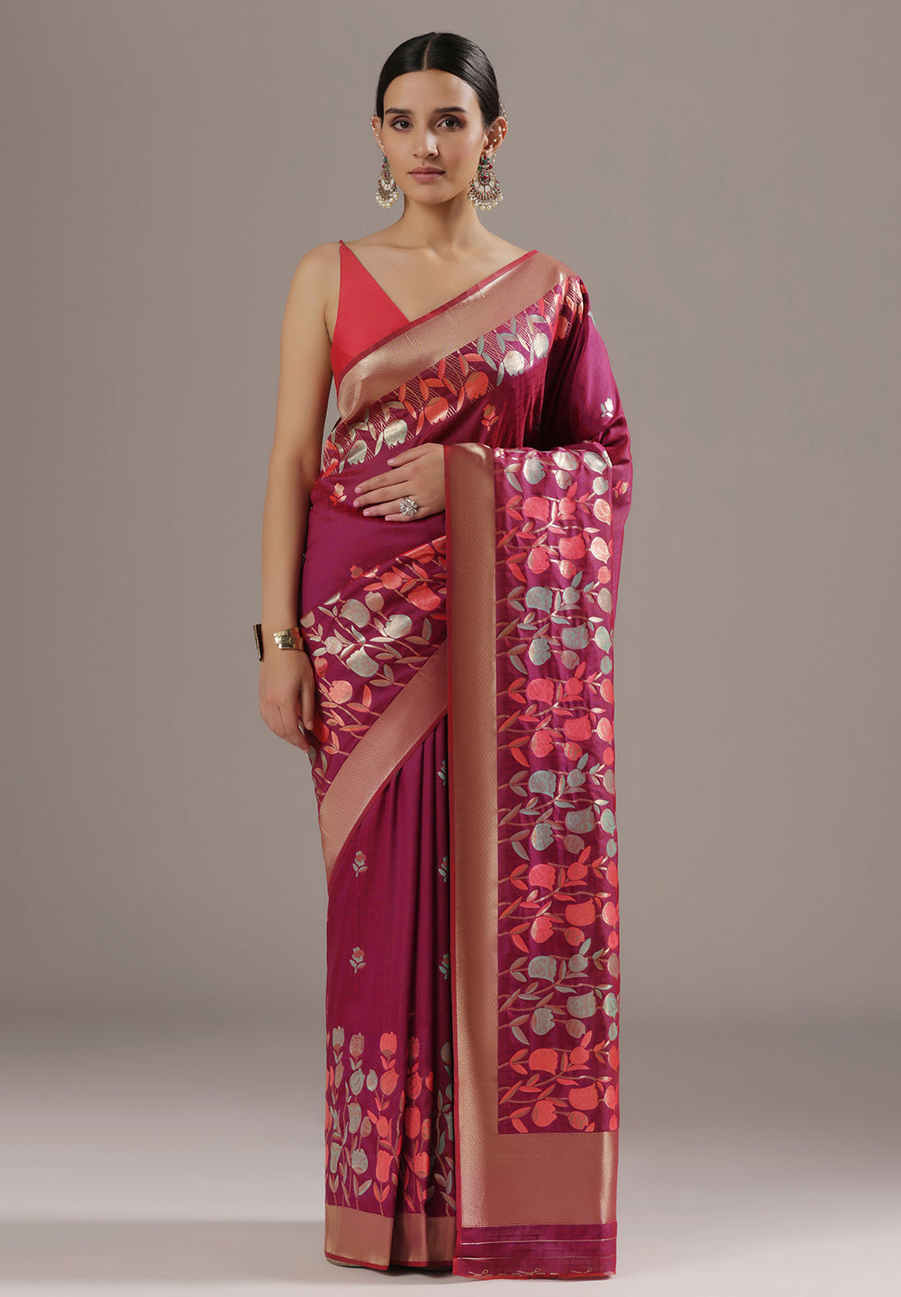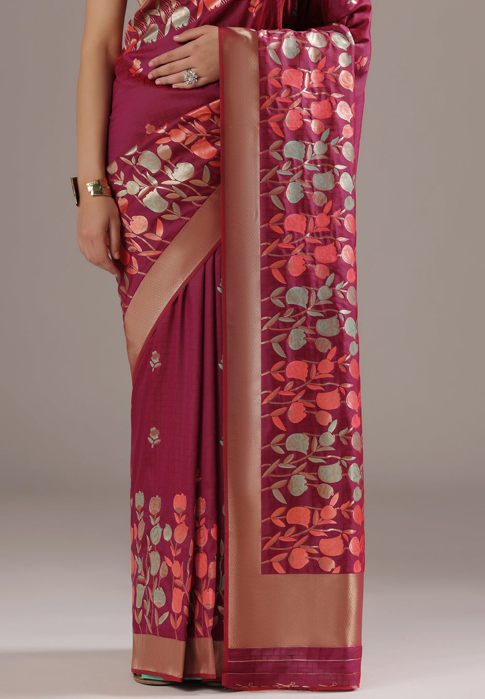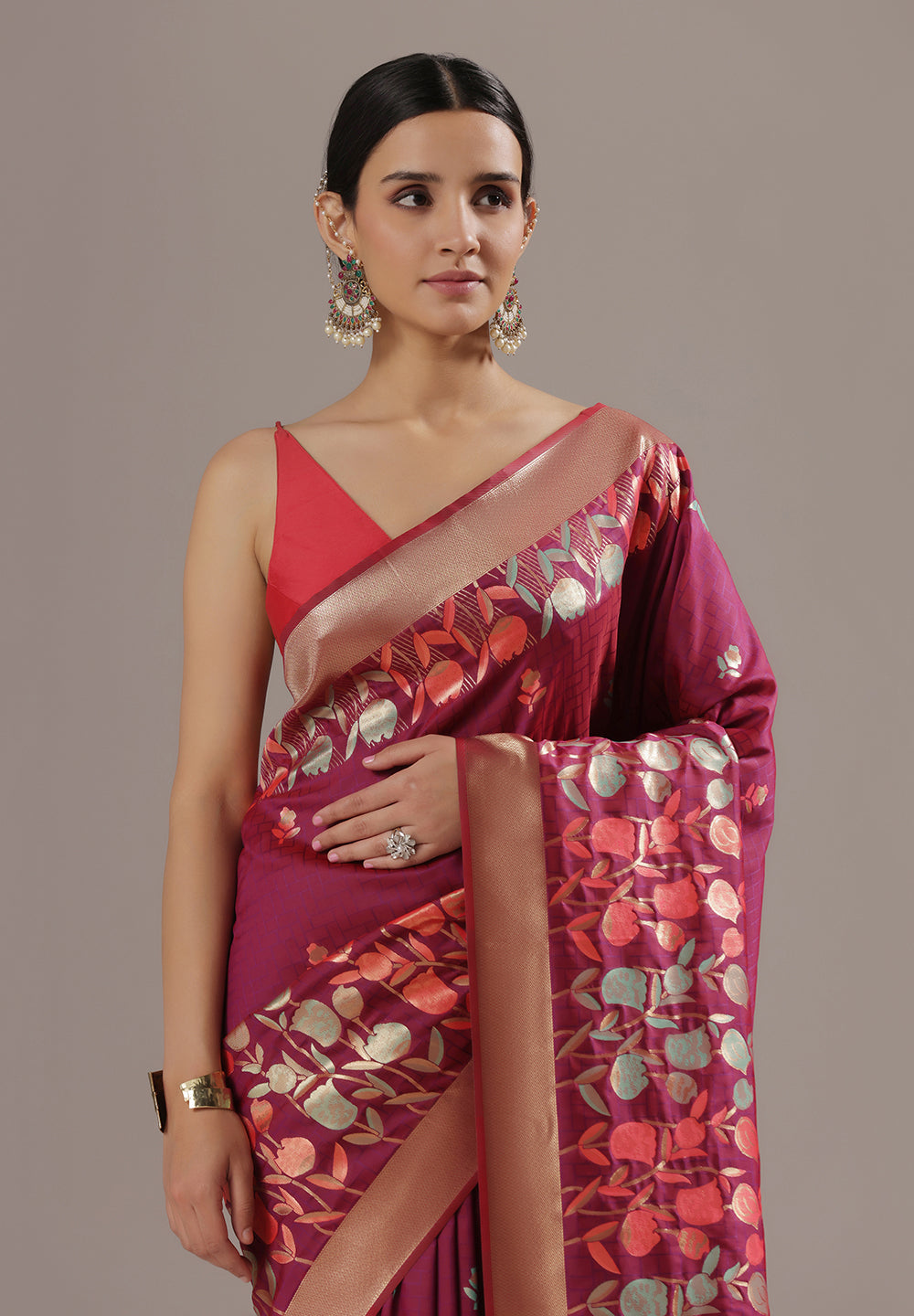 Q5. How do I style a Banarasi floral saree?