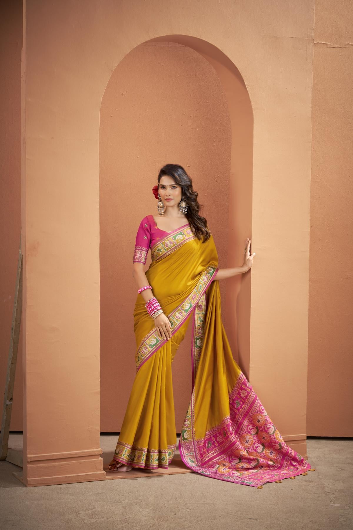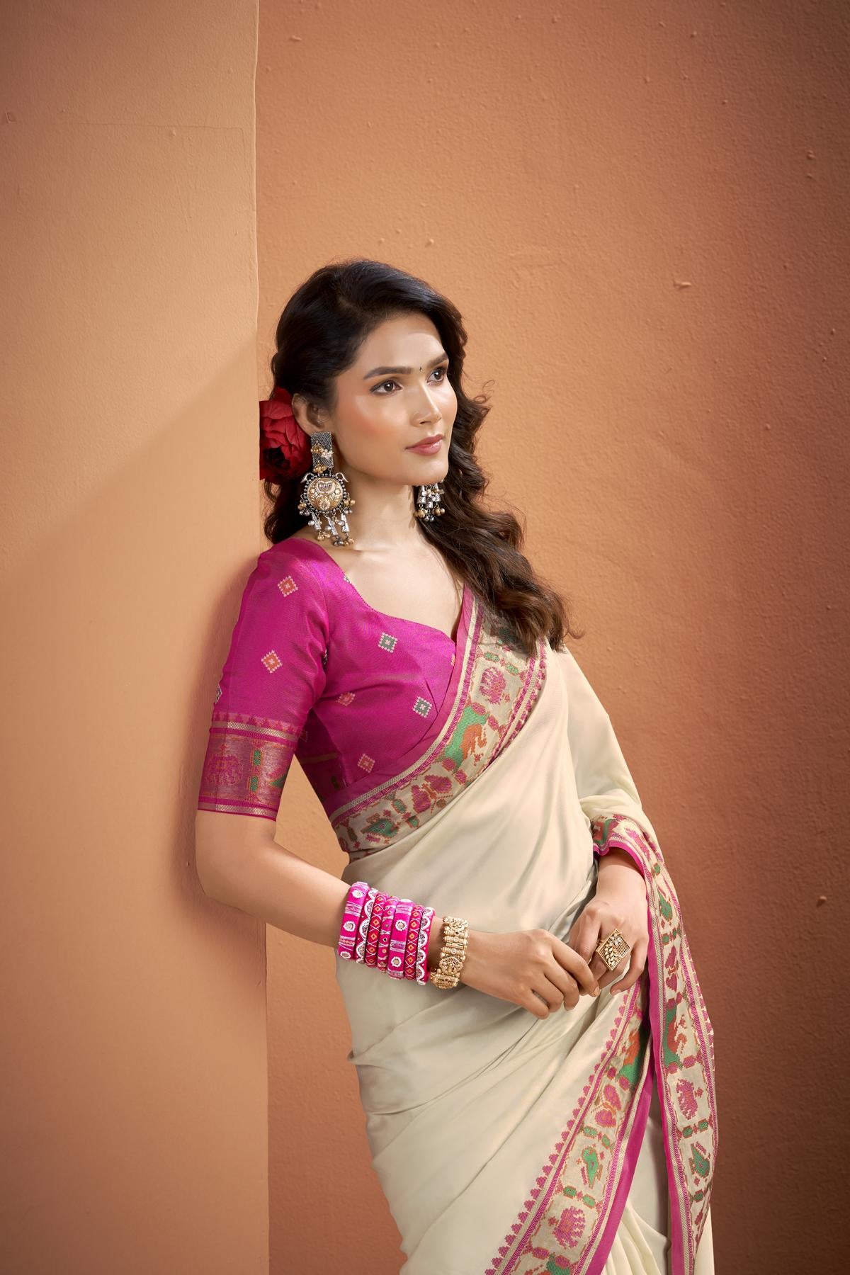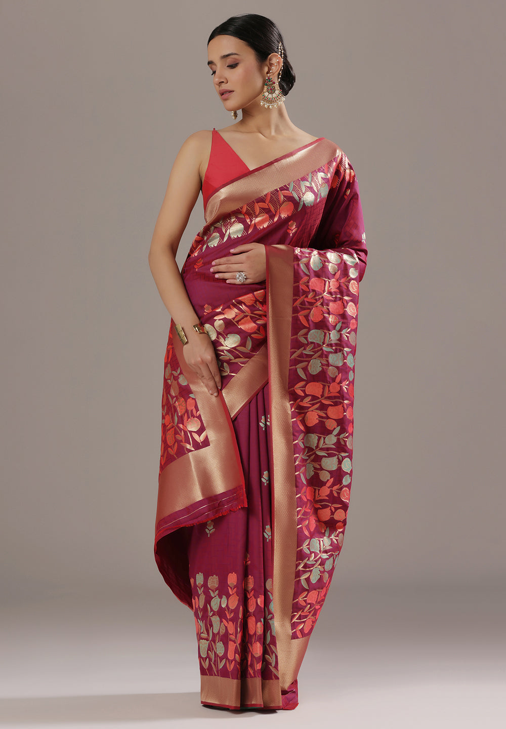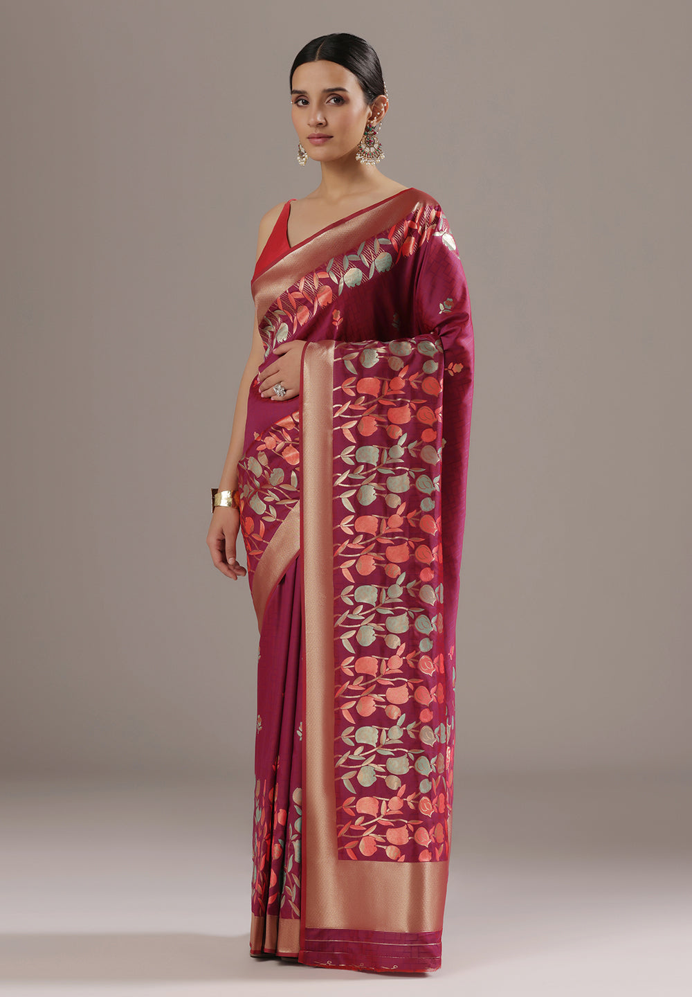 Q5. How do I style a Banarasi floral saree?