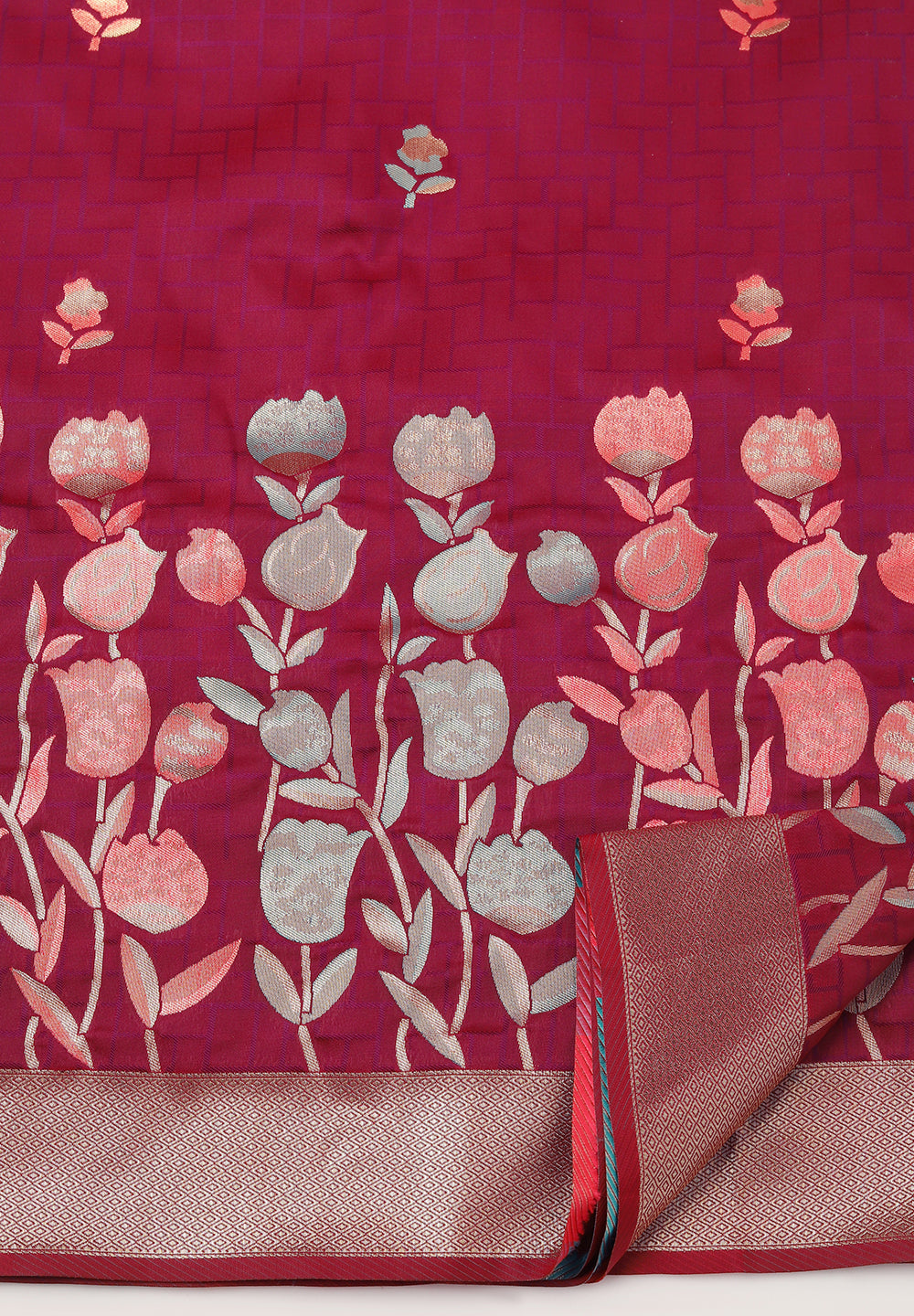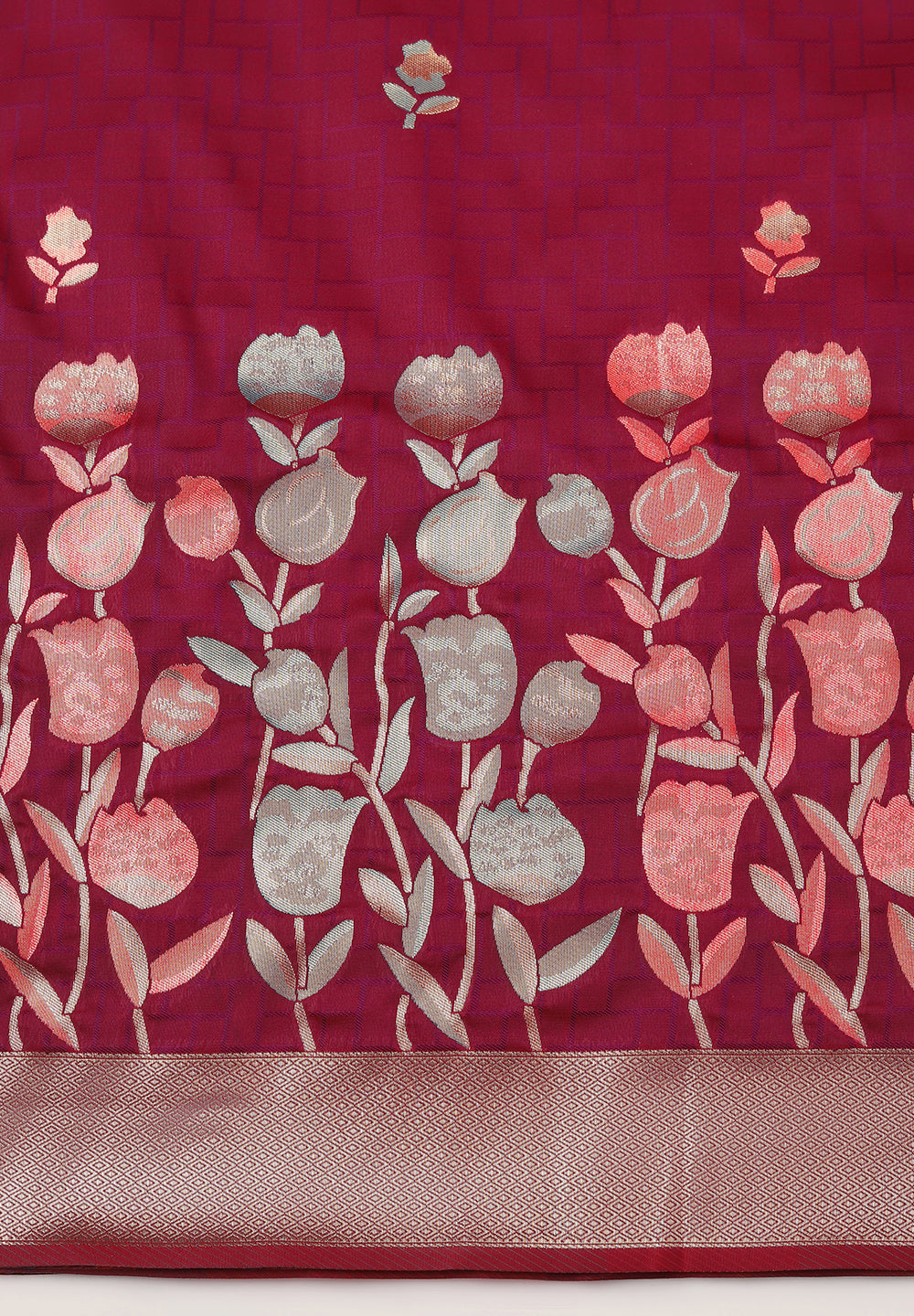Get Luxurious Banarasi Silk Floral Sarees with Zari Borders Online – Perfect for Weddings and Festive Events