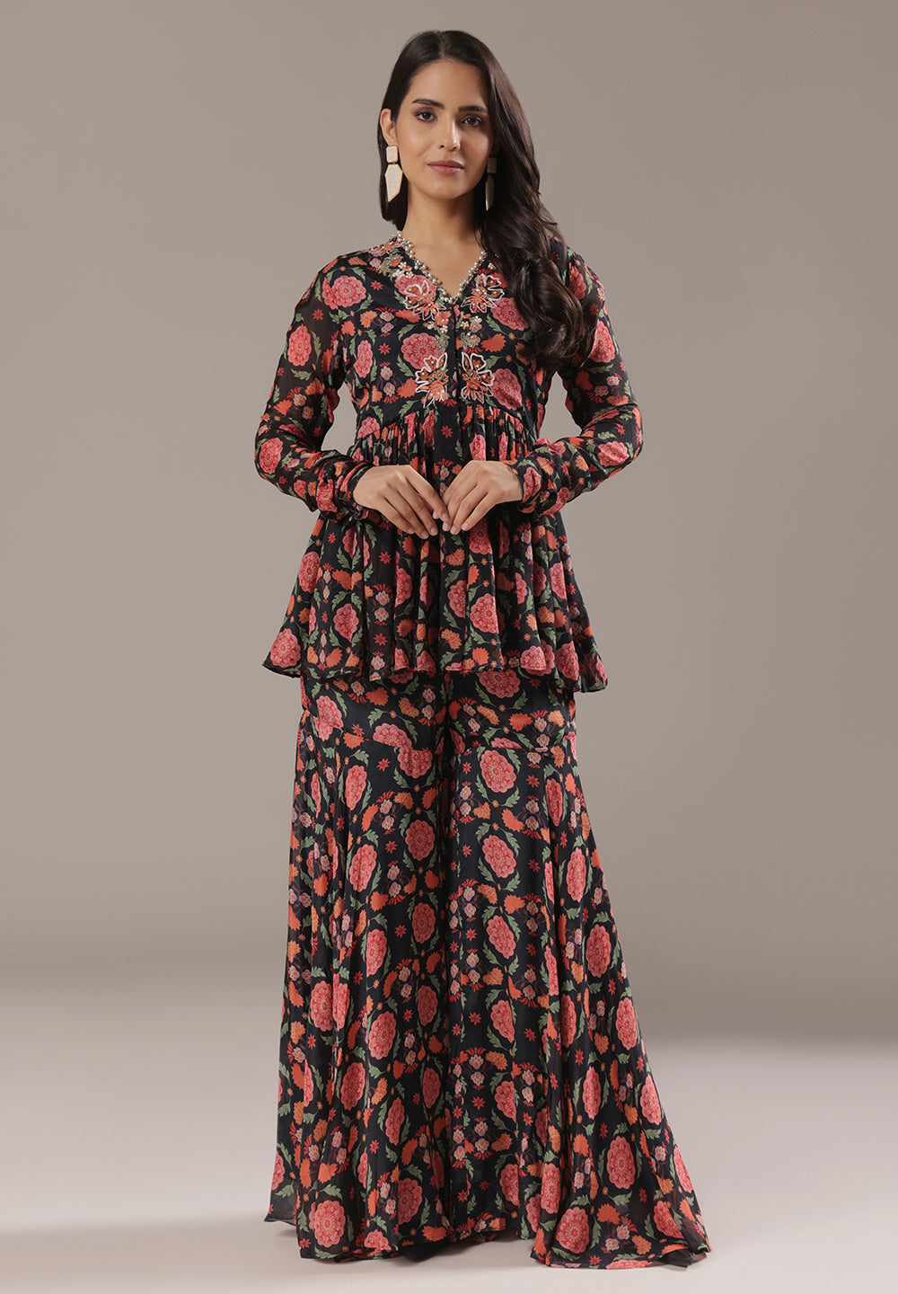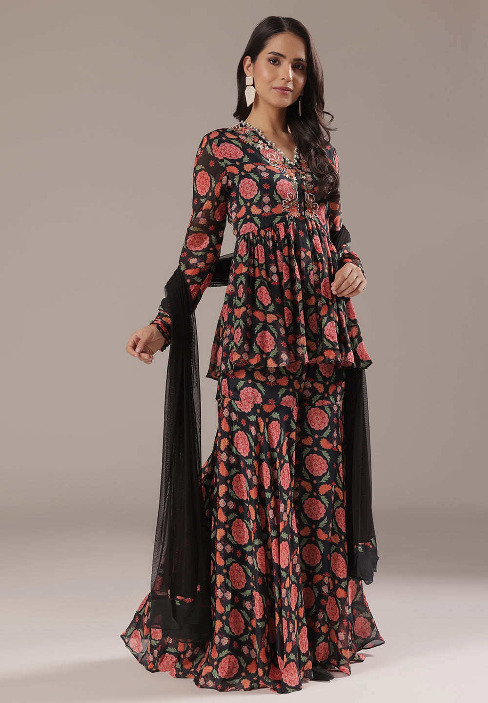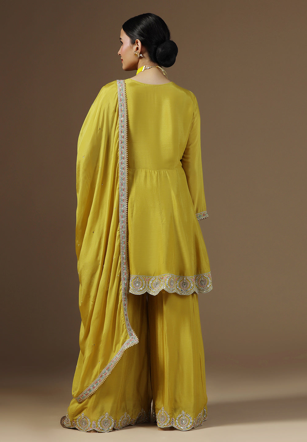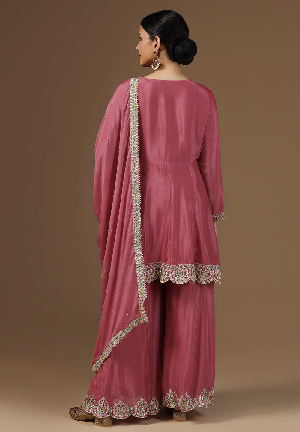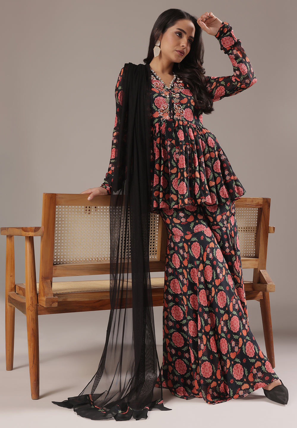 - Complement your look with embroidered juttis or block heels.