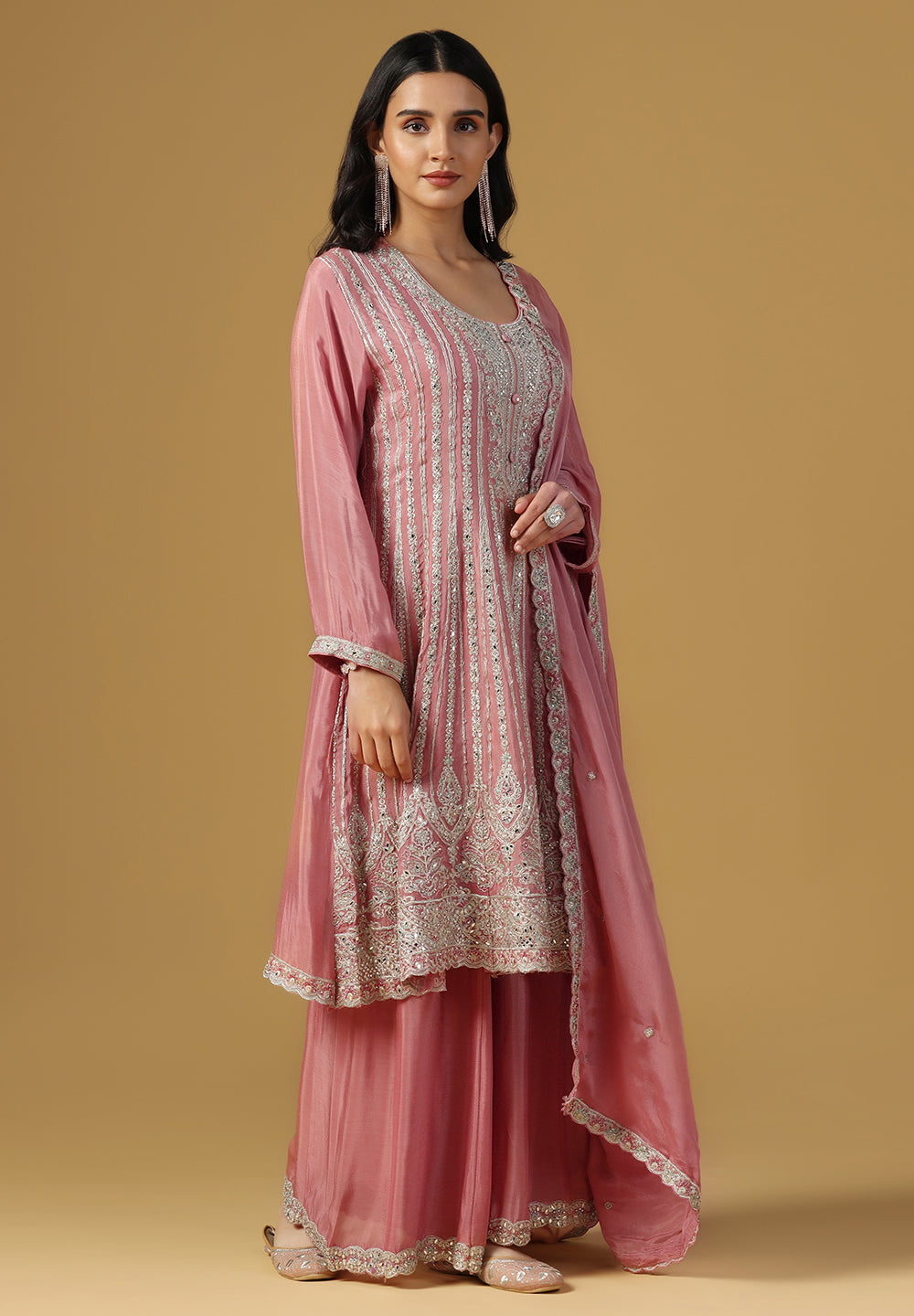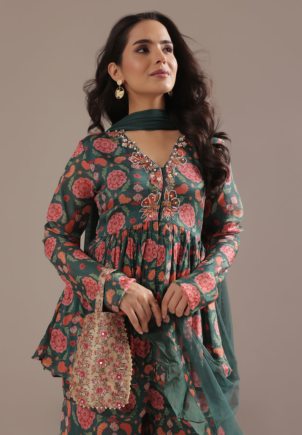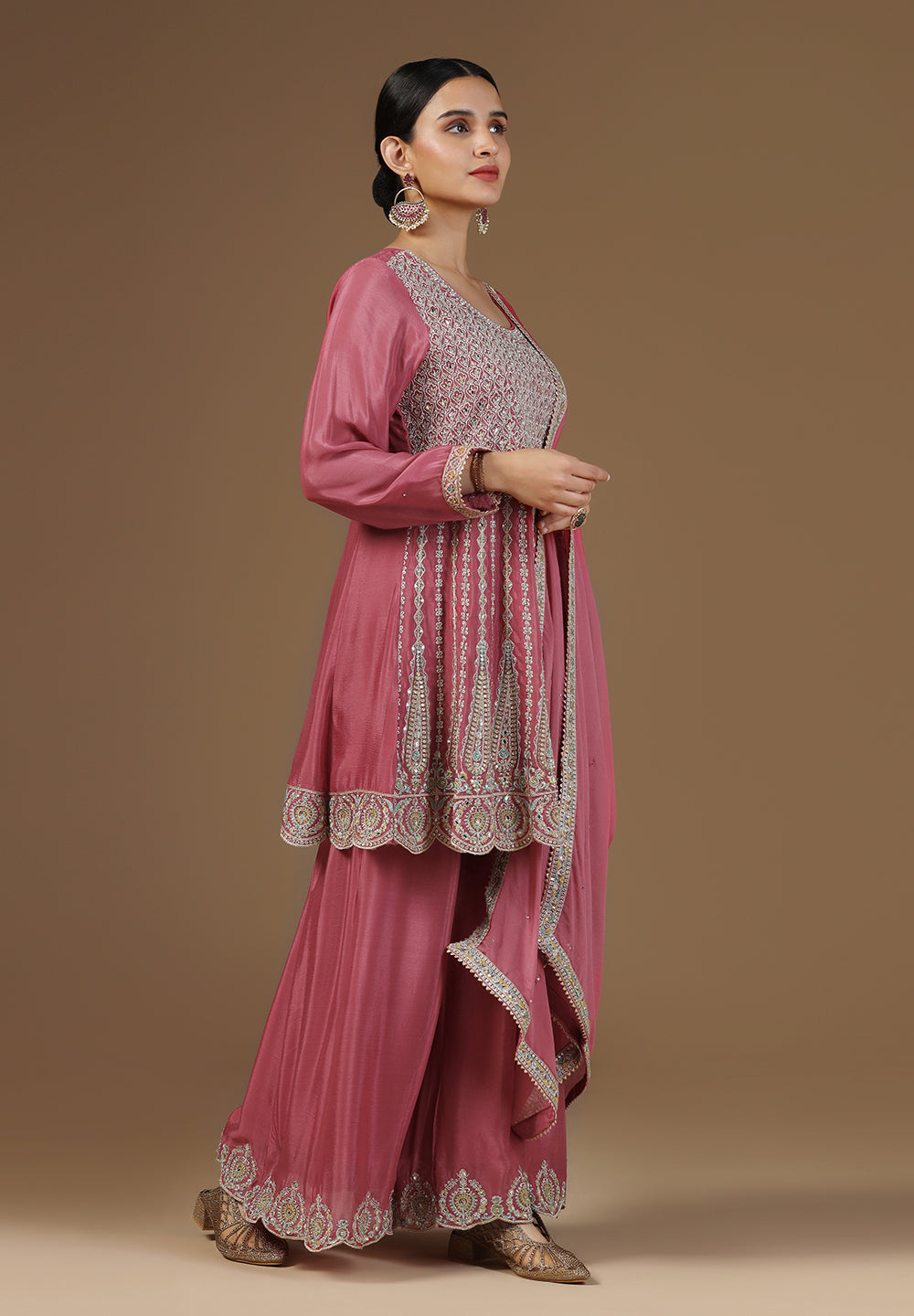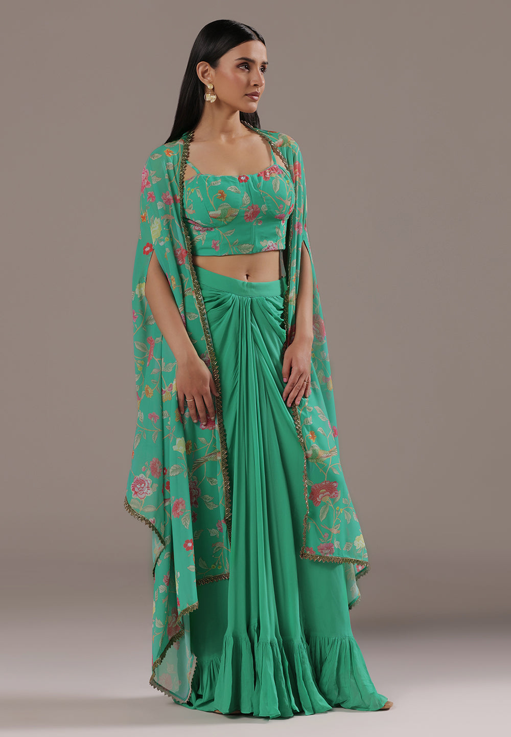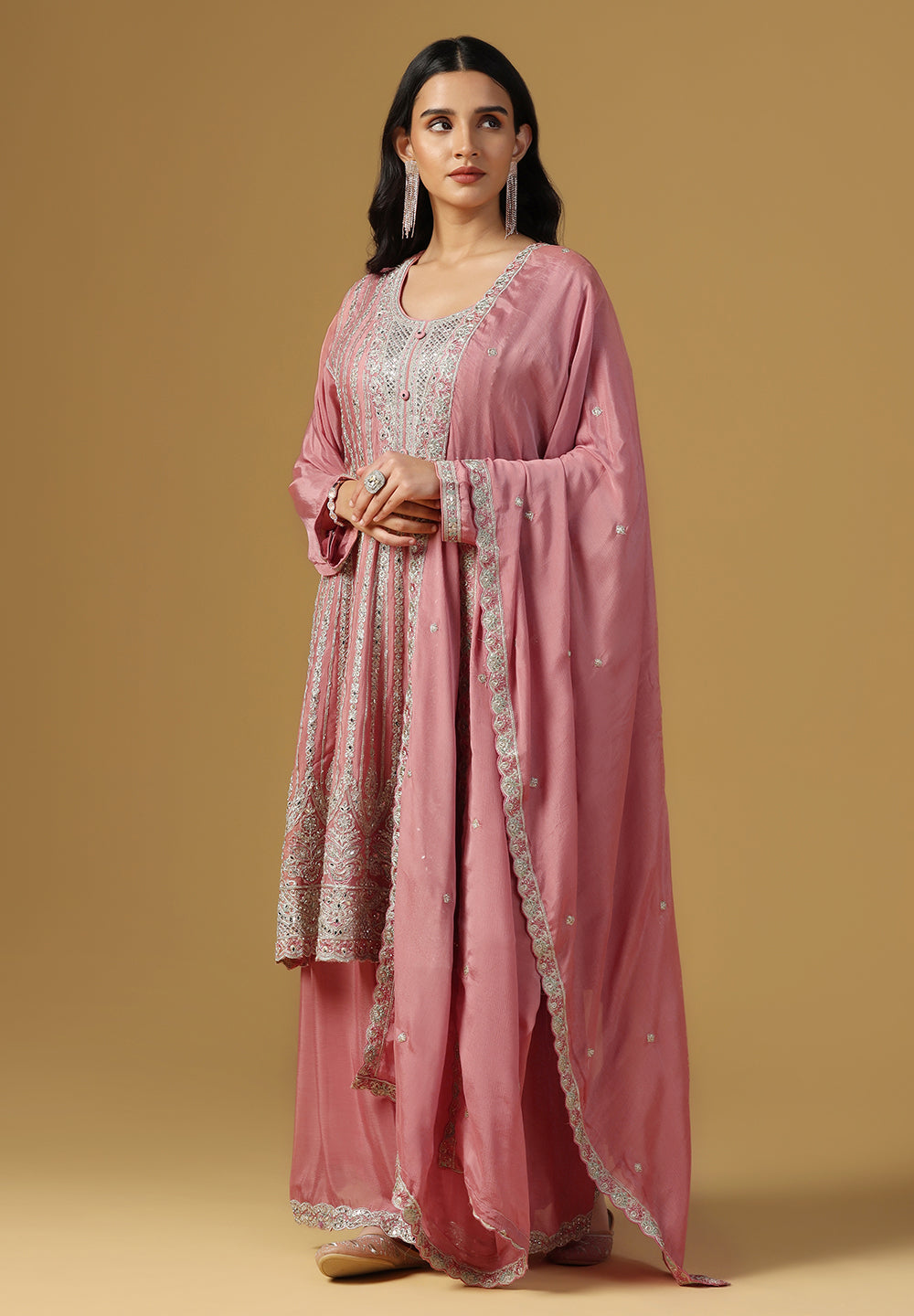 - Accessorize with gold jhumkas or kundan chokers to enhance zari and sequin work.