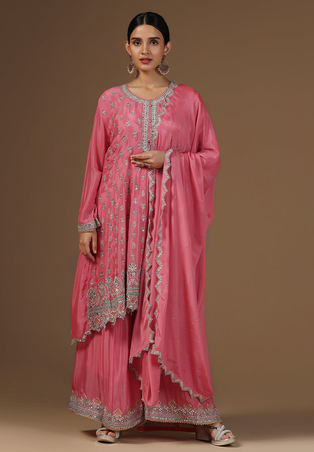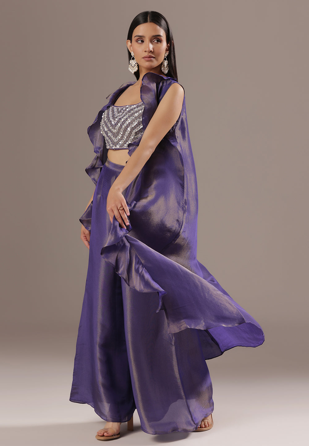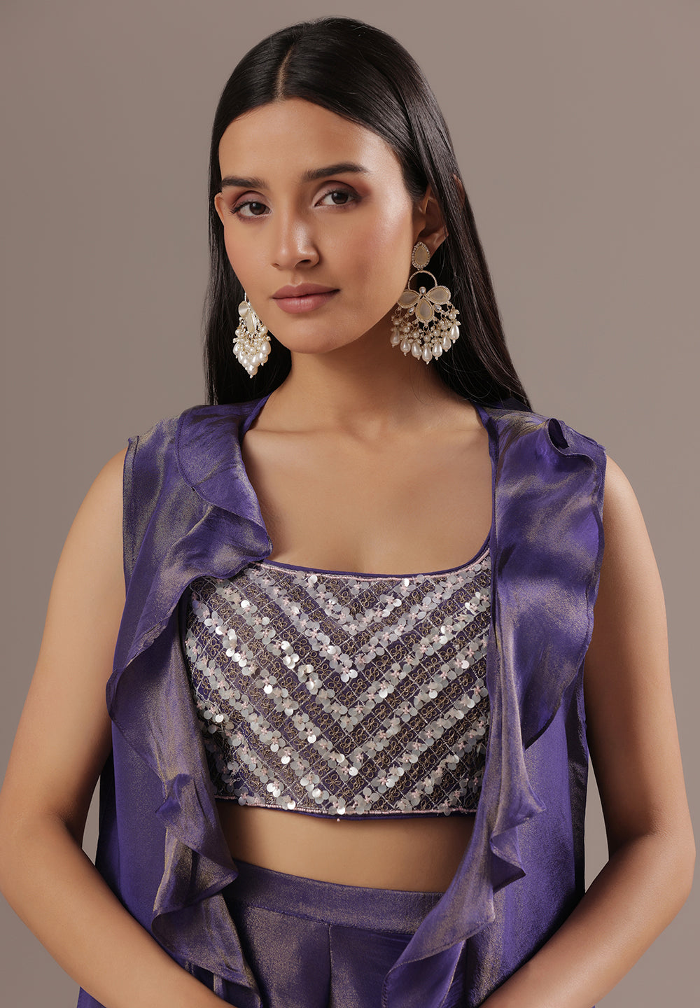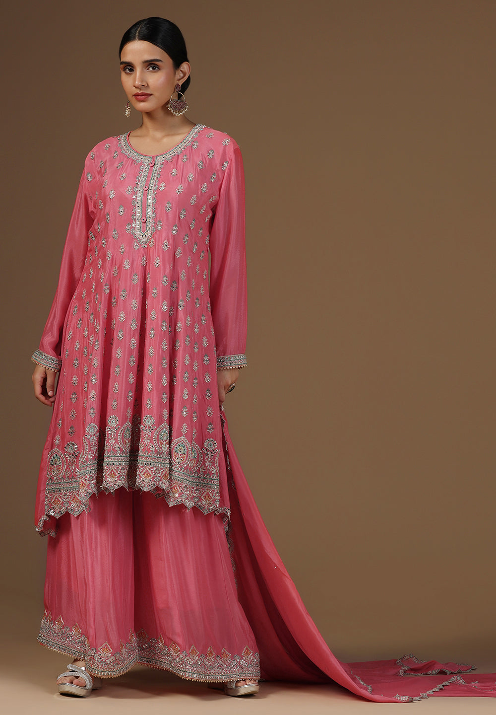 - Accessorize with gold jhumkas or kundan chokers to enhance zari and sequin work.