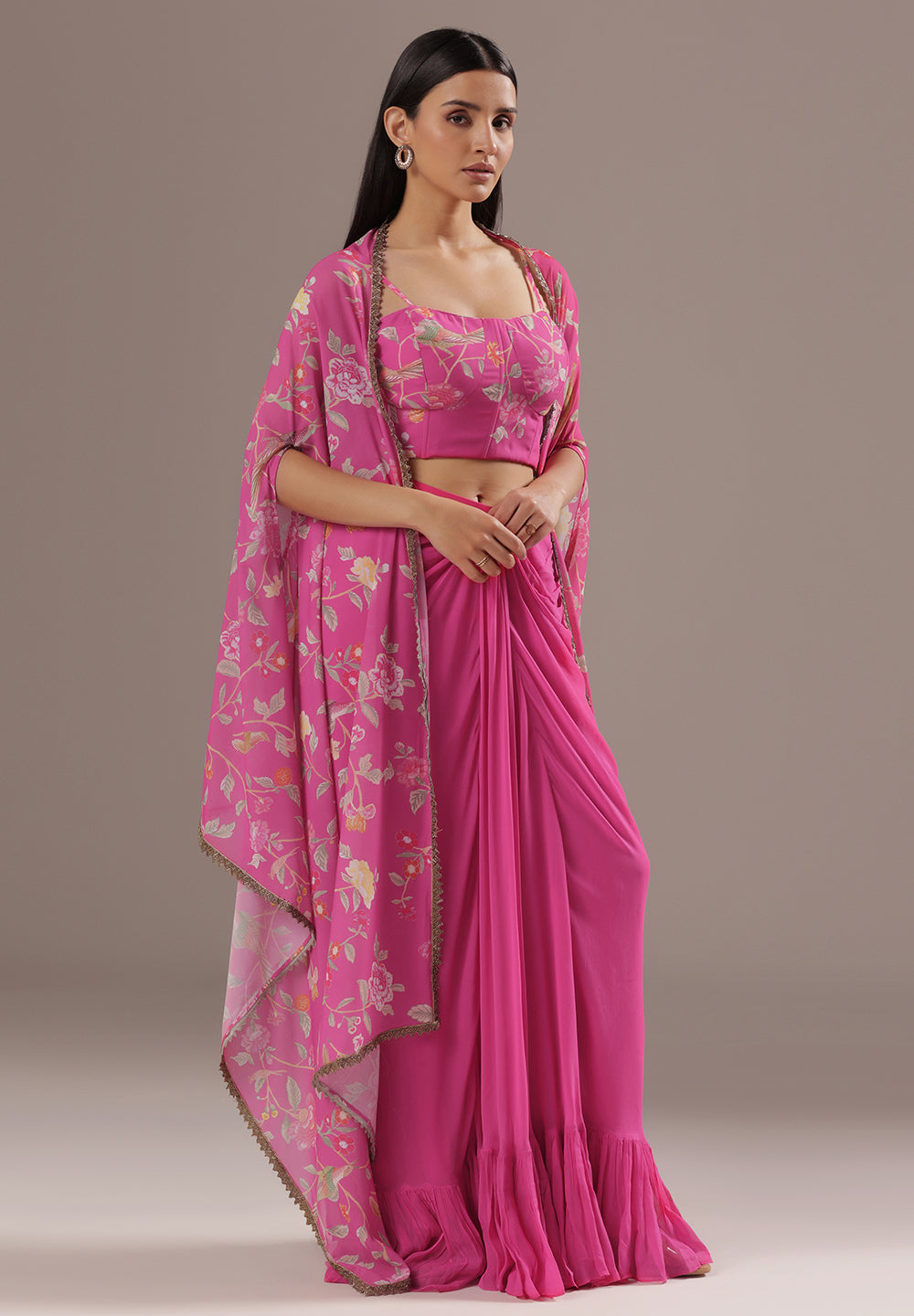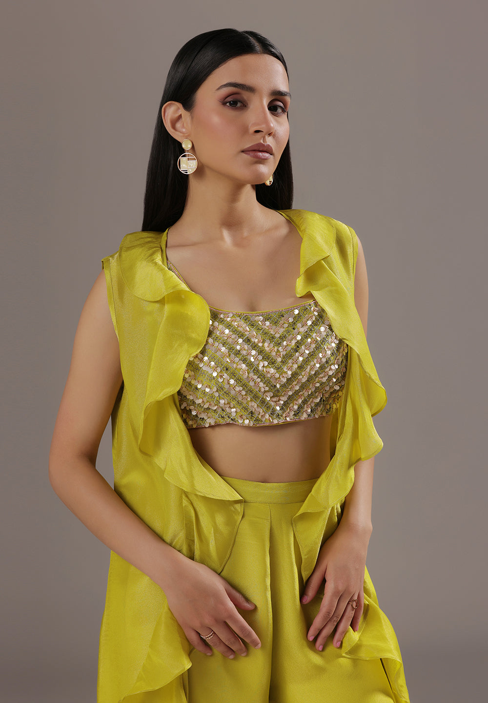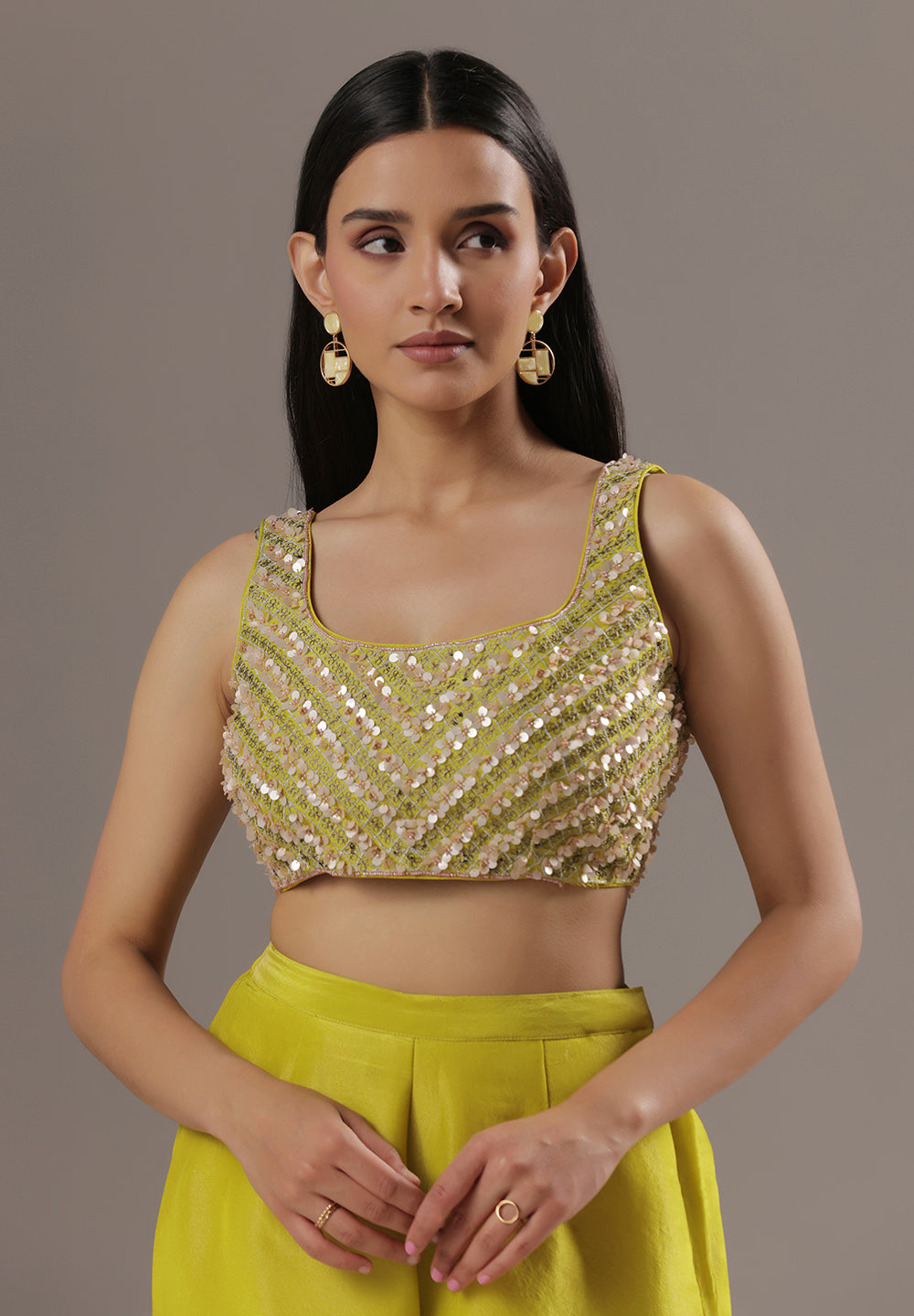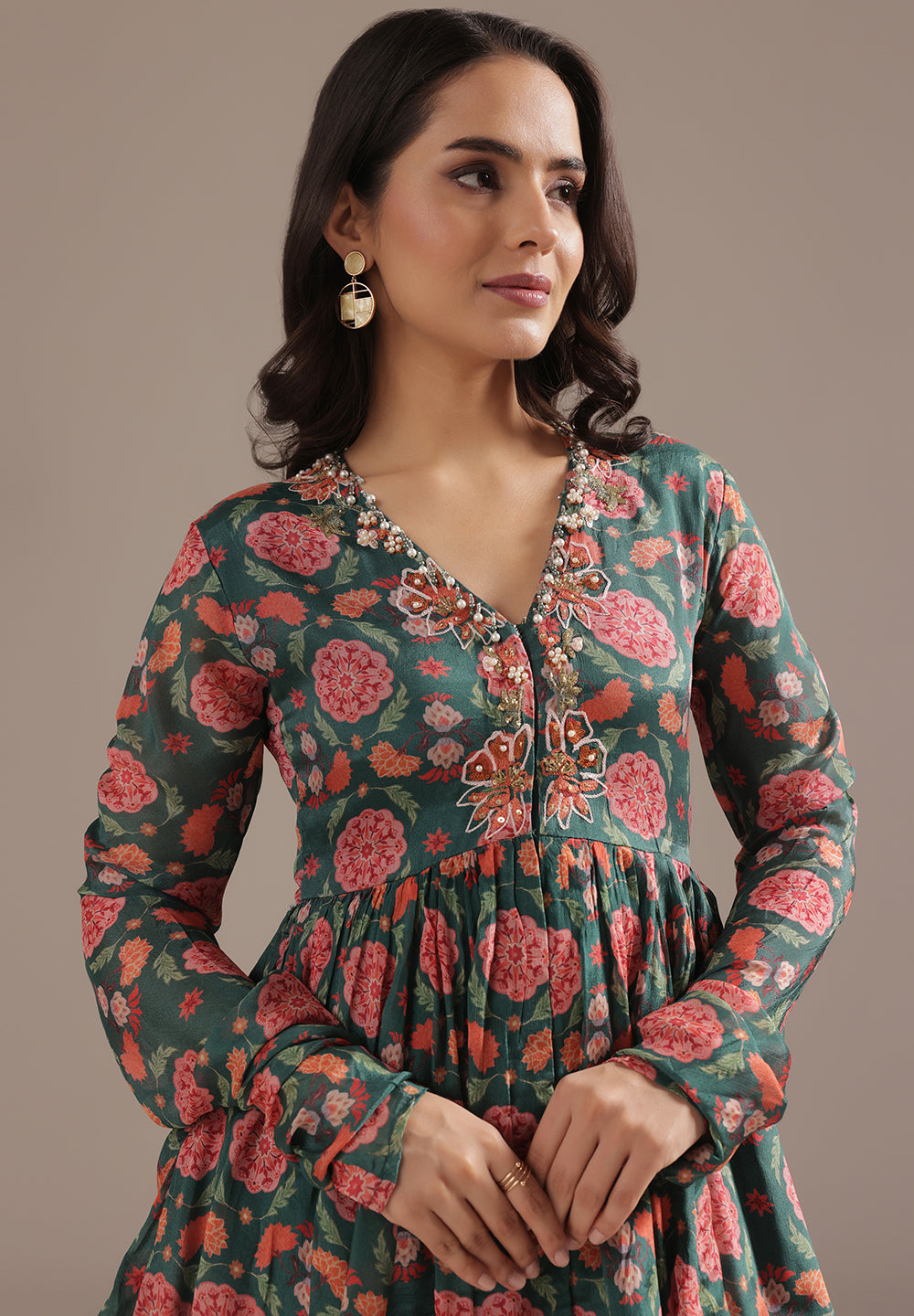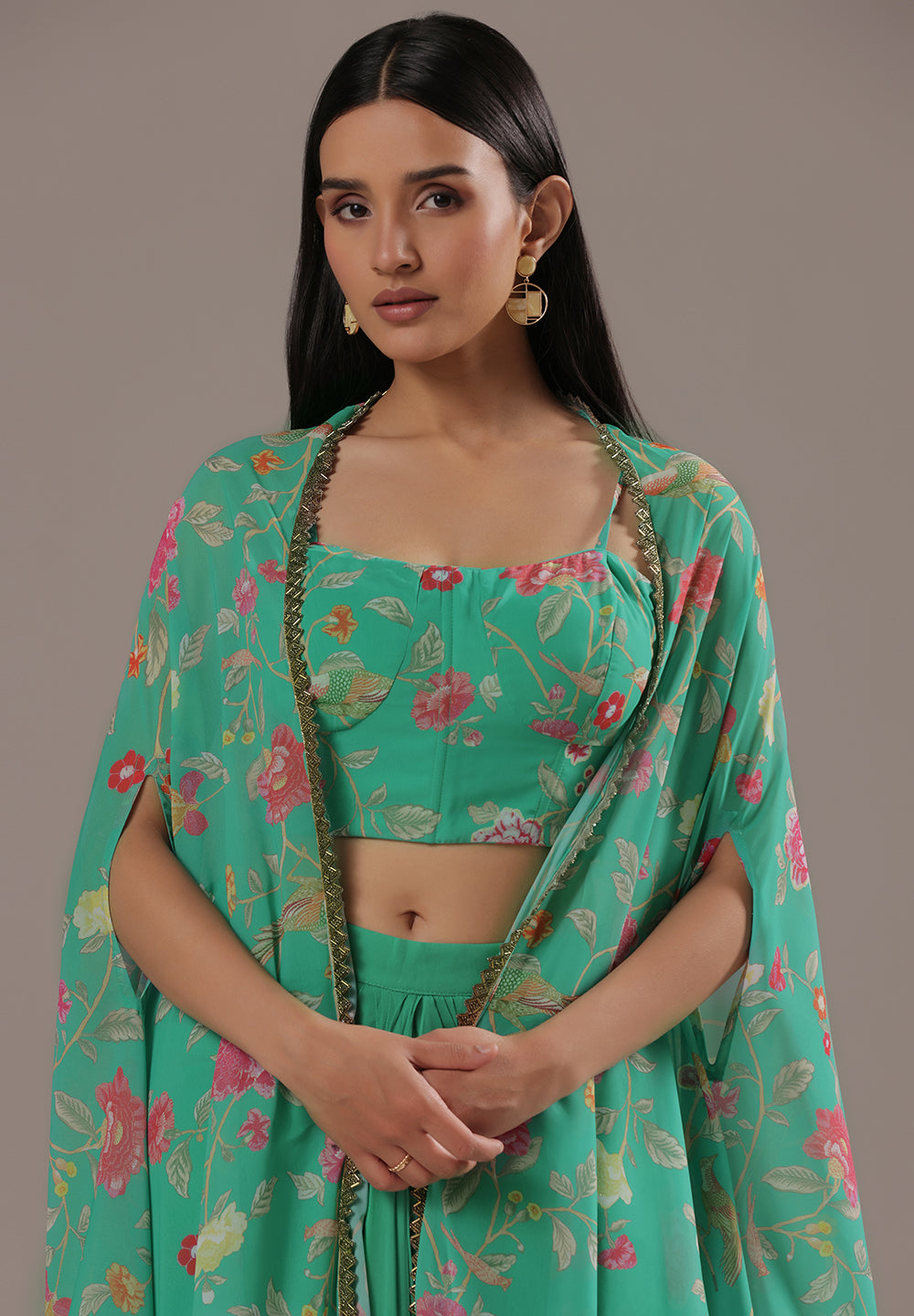 - Accessorize with gold jhumkas or kundan chokers to enhance zari and sequin work.