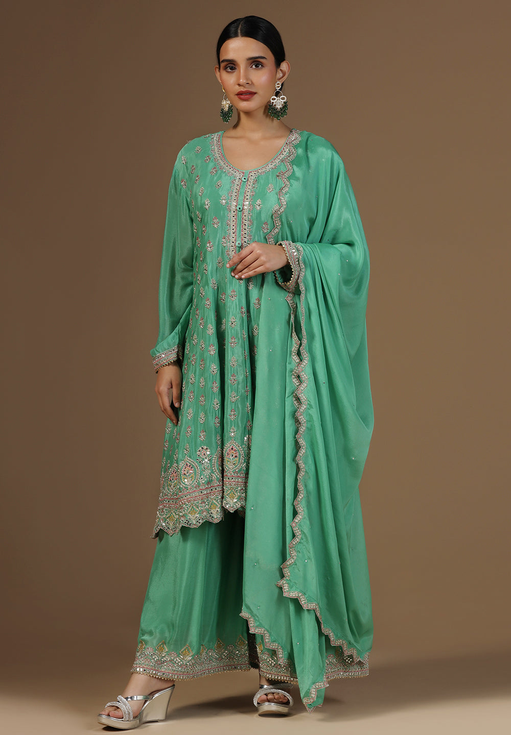Tussar & Organza Green Suits – Subtle Luxury for Grand Occasions