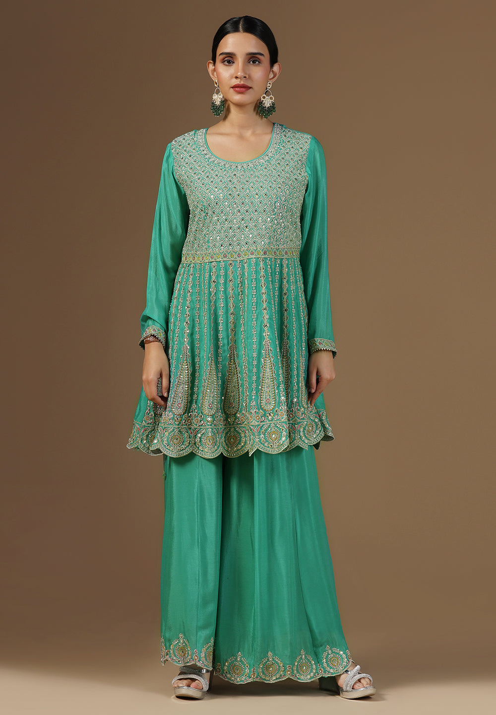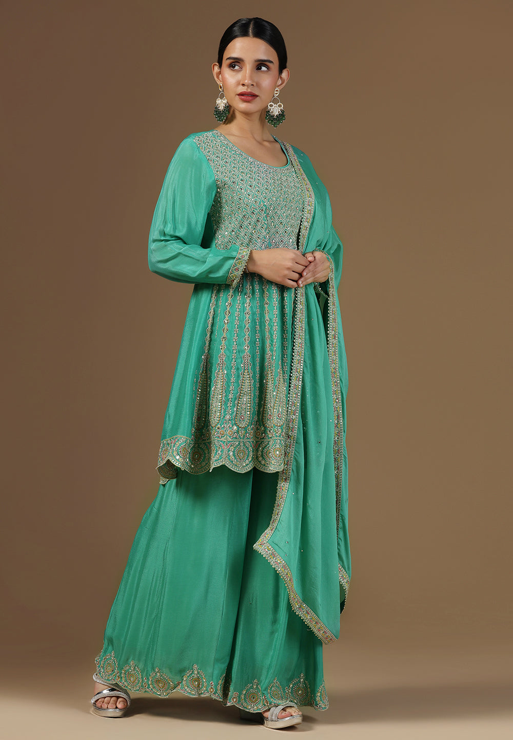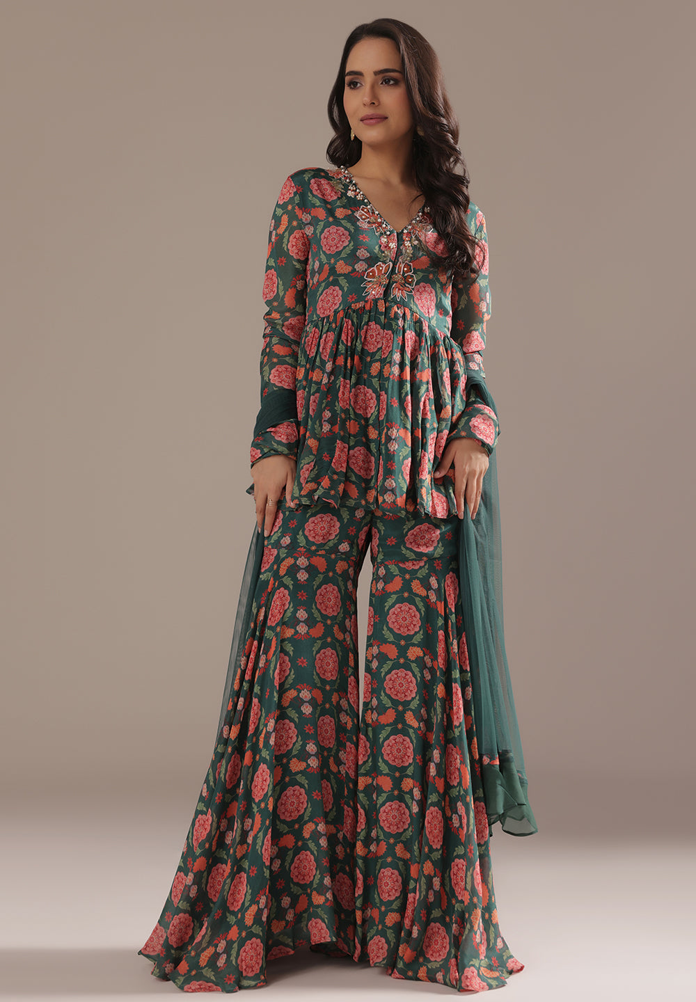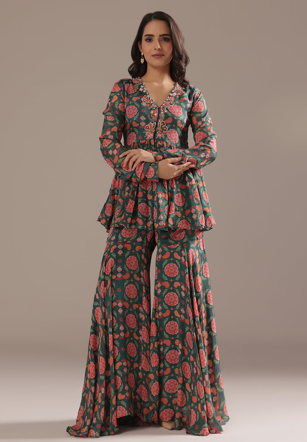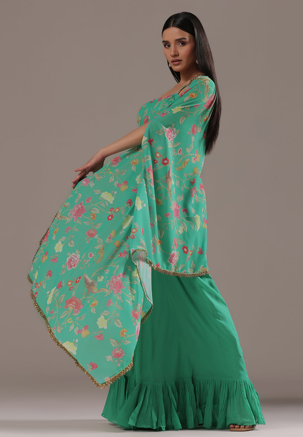 Georgette & Crepe Green Sharara Suits – Glamour for Festive Nights
