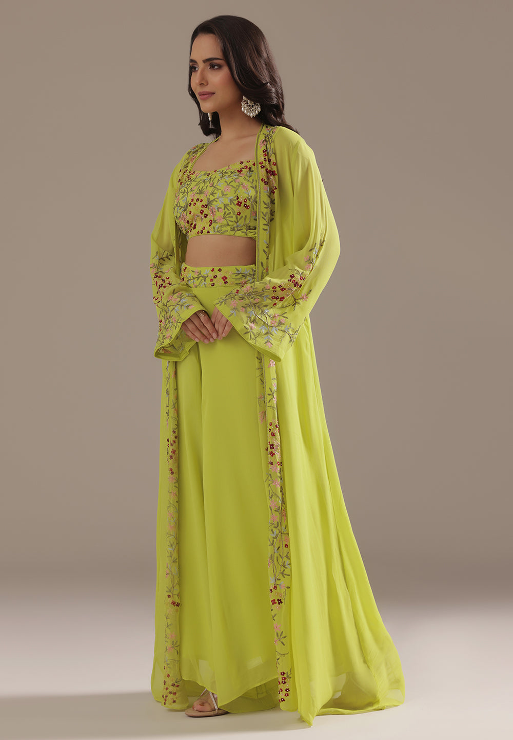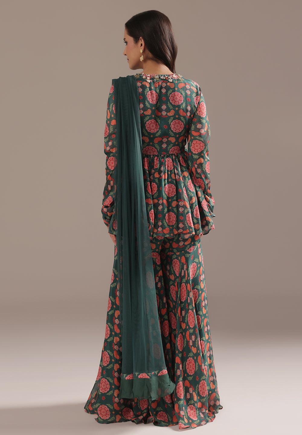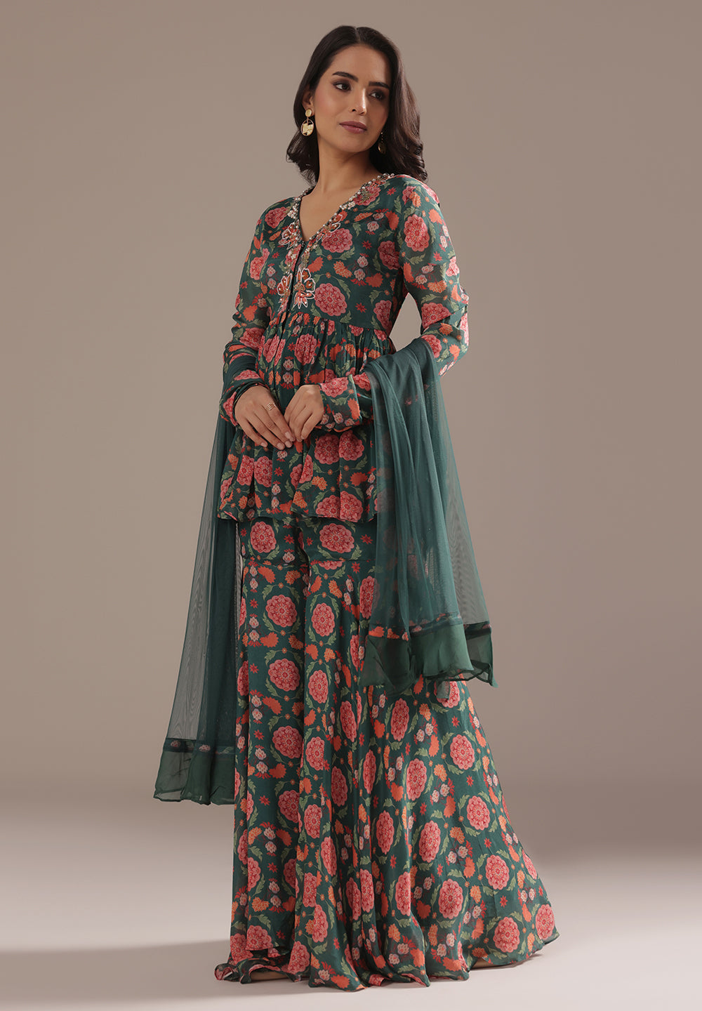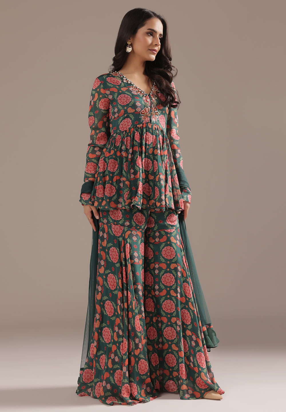 Georgette & Crepe Green Sharara Suits – Glamour for Festive Nights