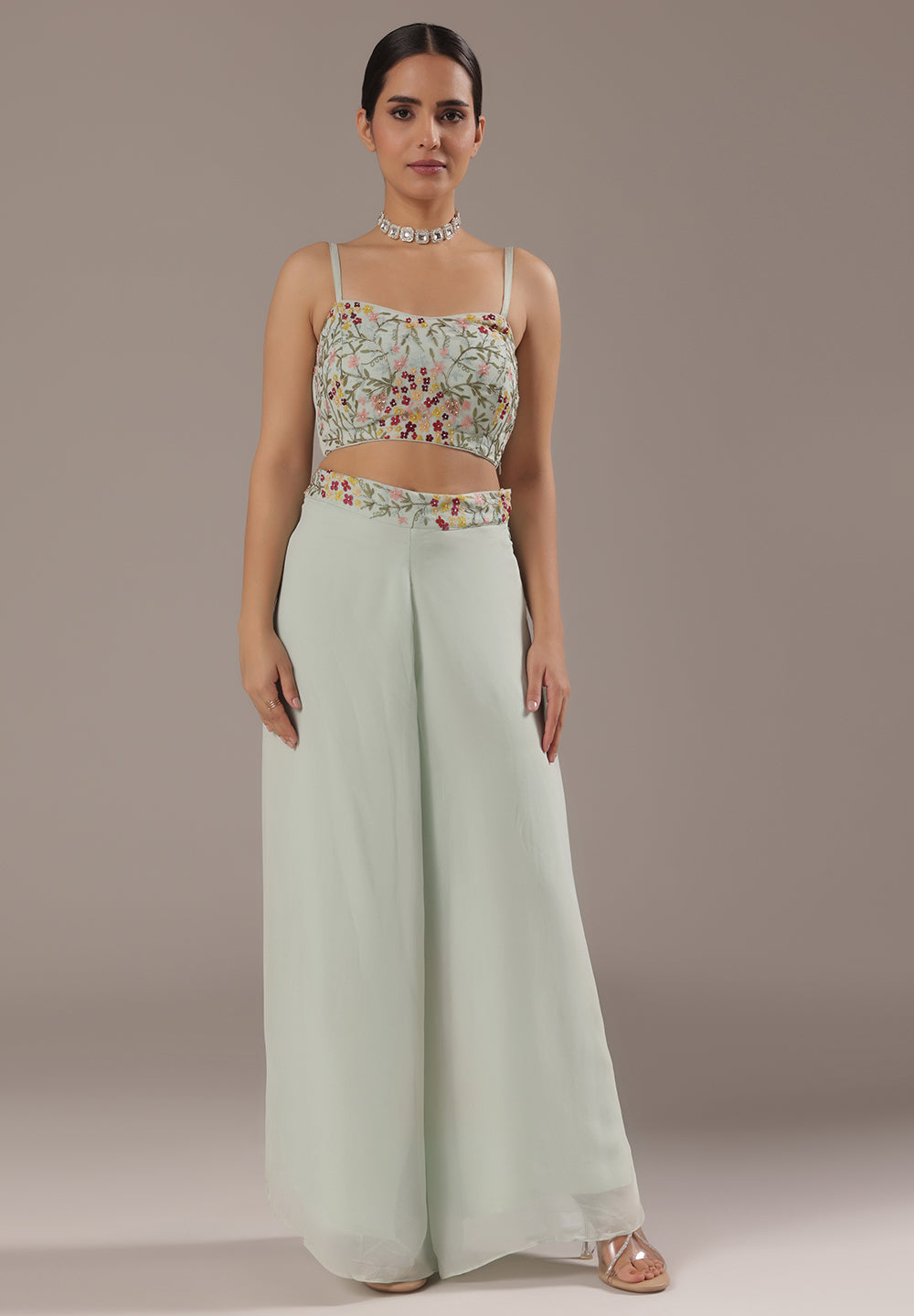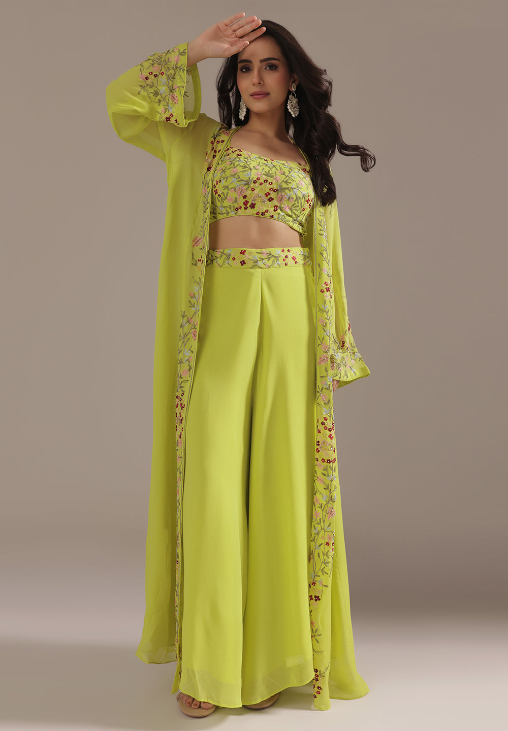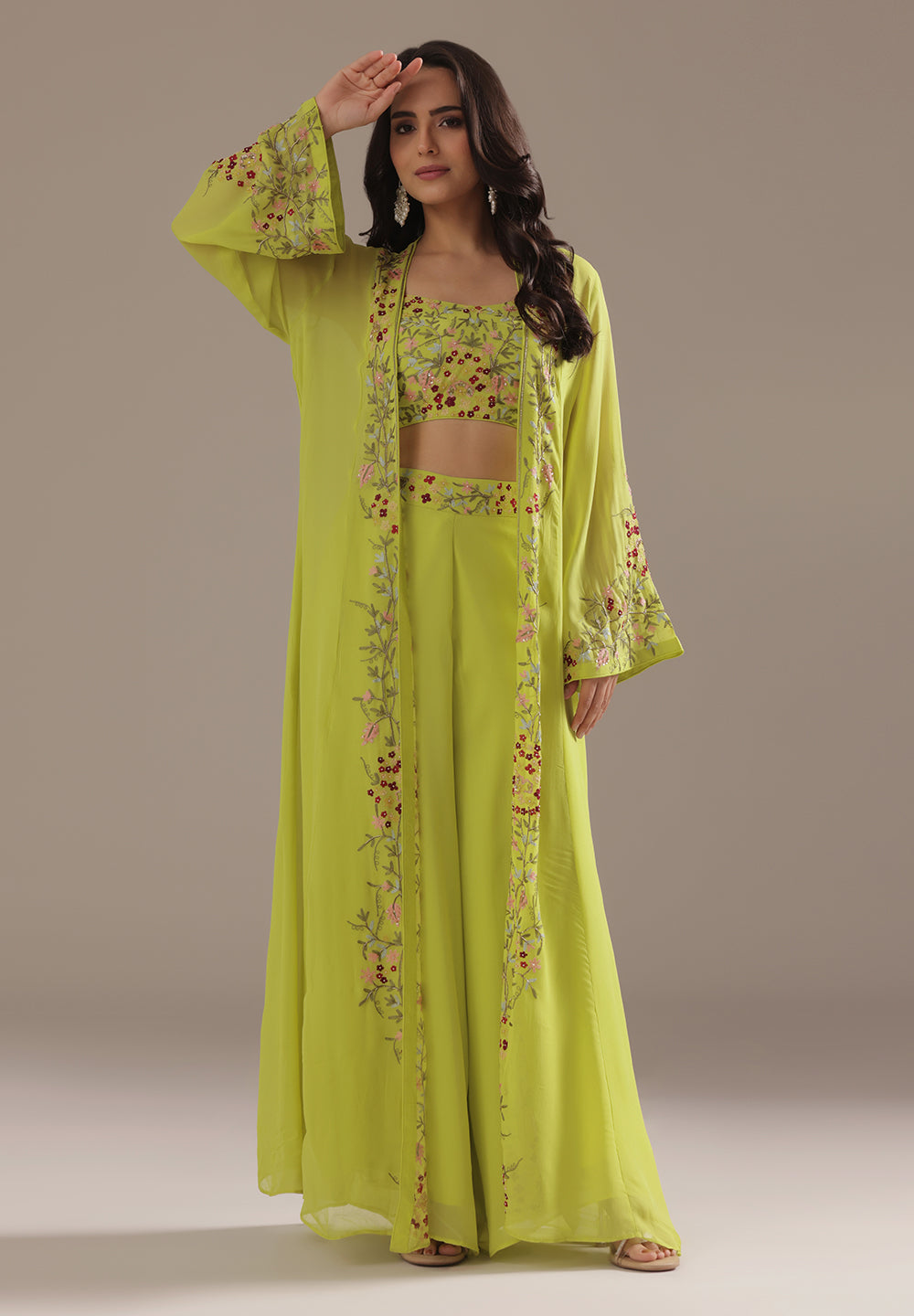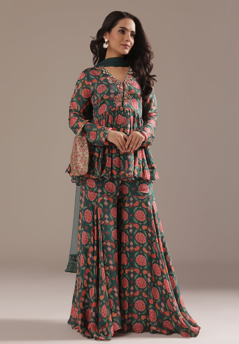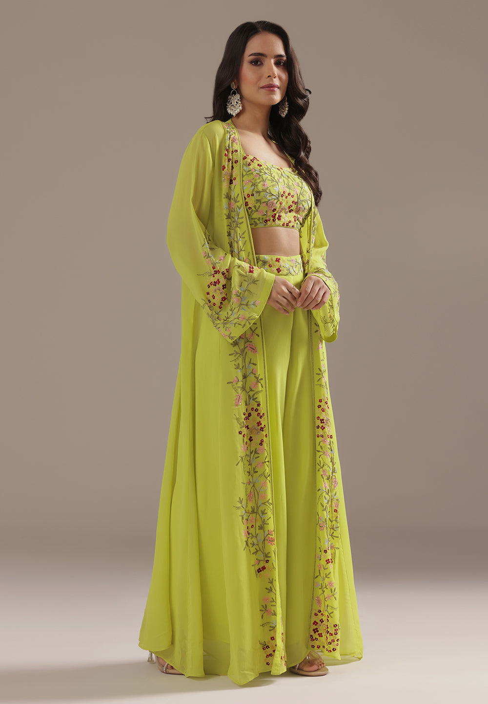 Georgette & Crepe Green Sharara Suits – Glamour for Festive Nights