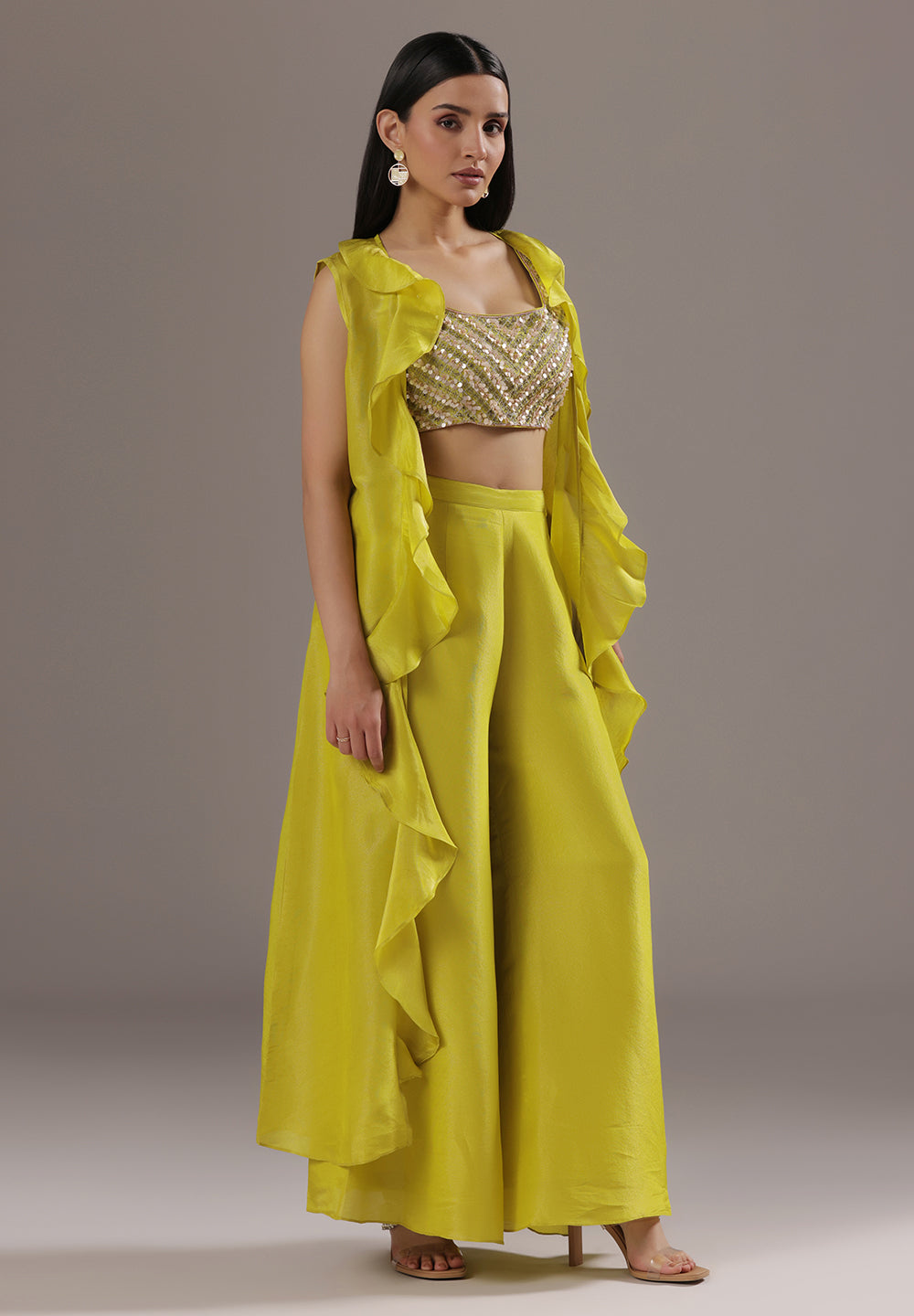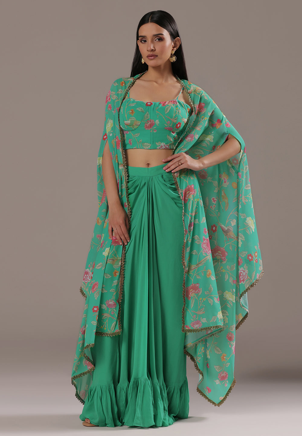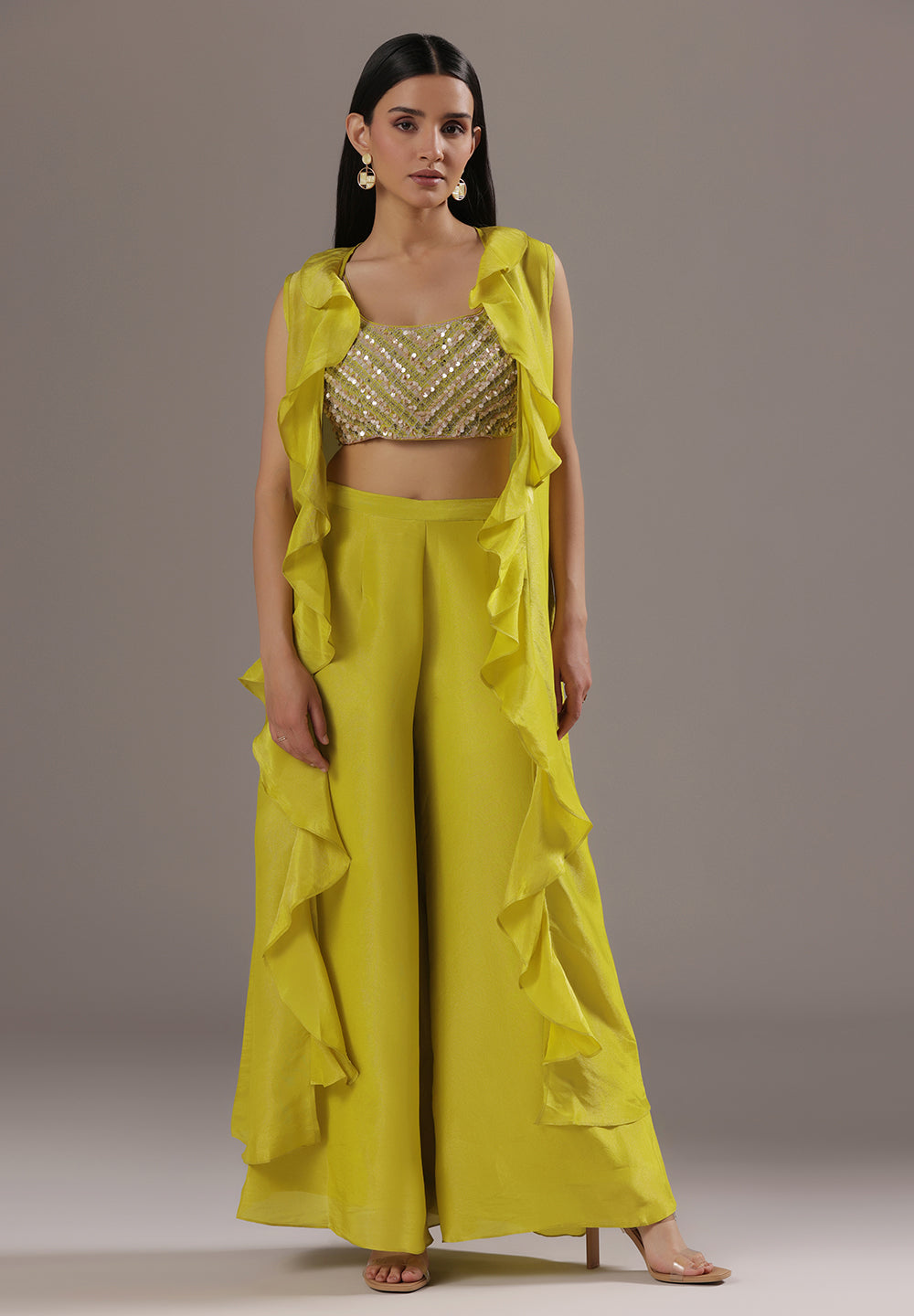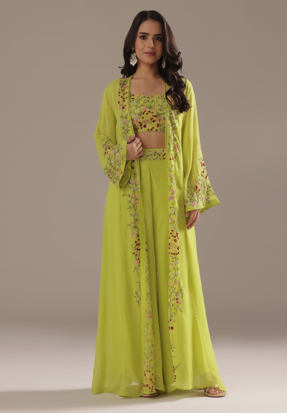 Georgette & Crepe Green Sharara Suits – Glamour for Festive Nights