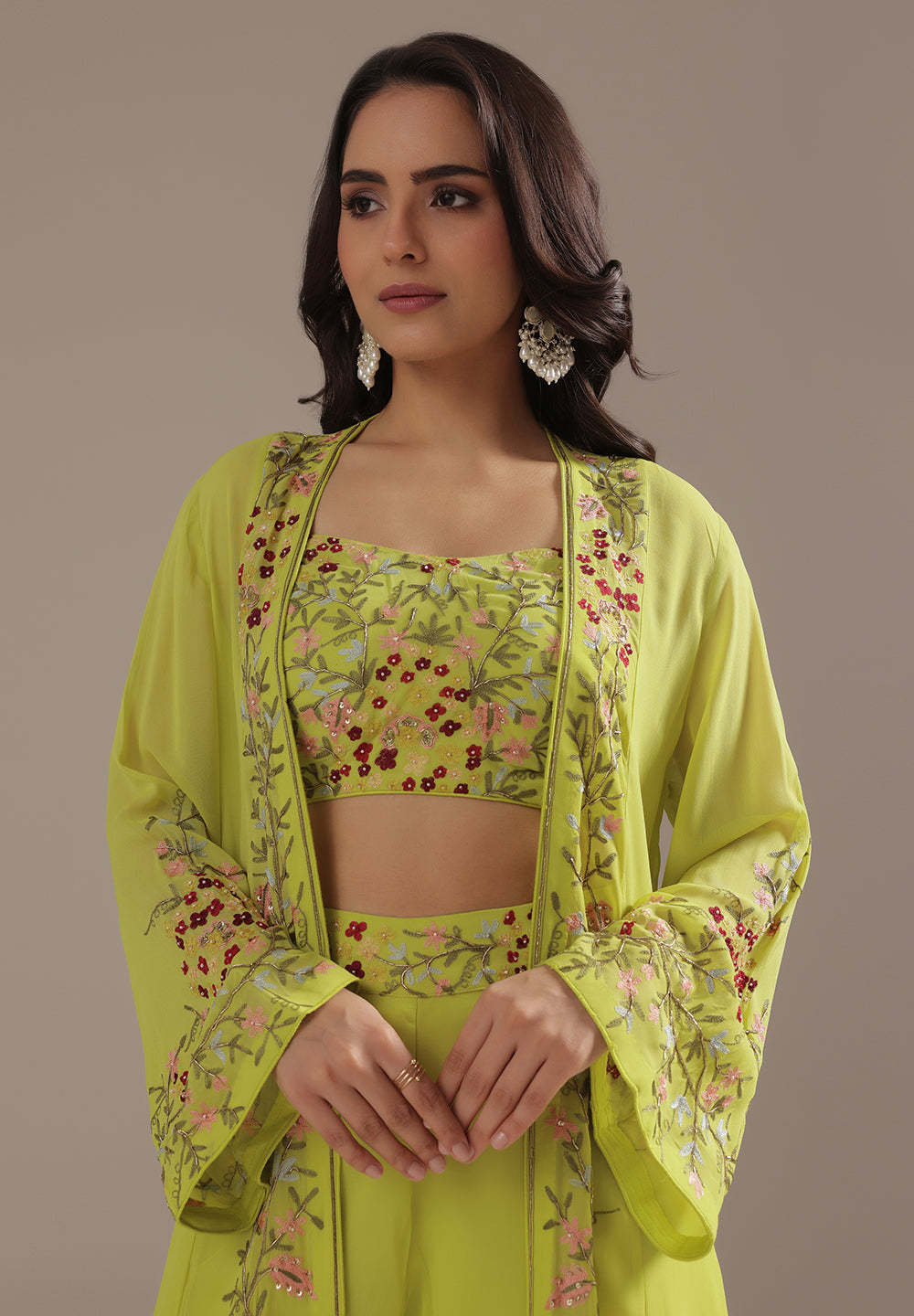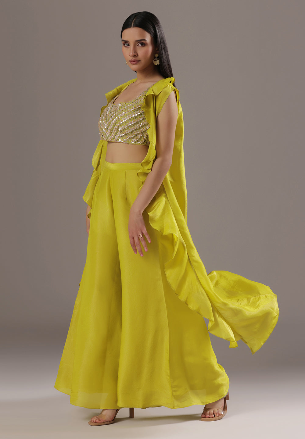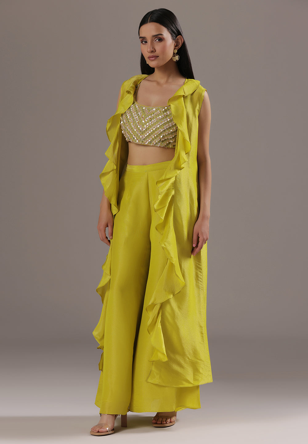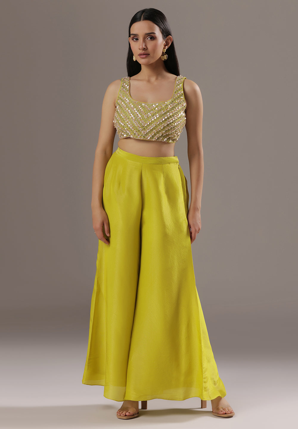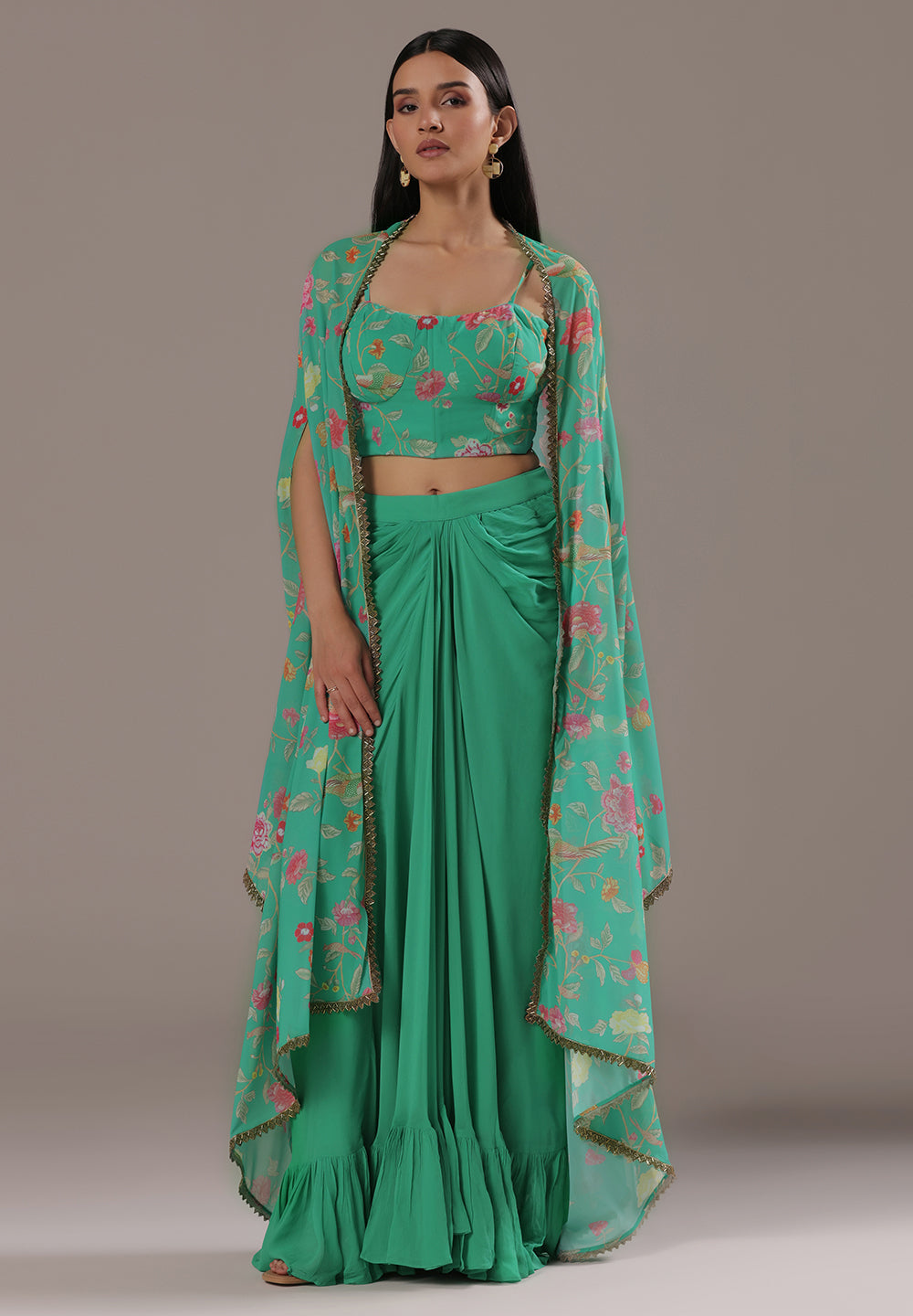Georgette & Crepe Green Sharara Suits – Glamour for Festive Nights