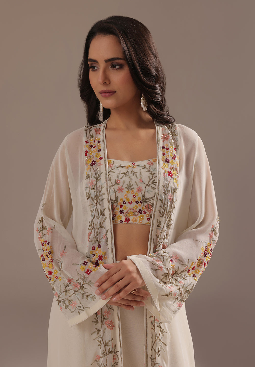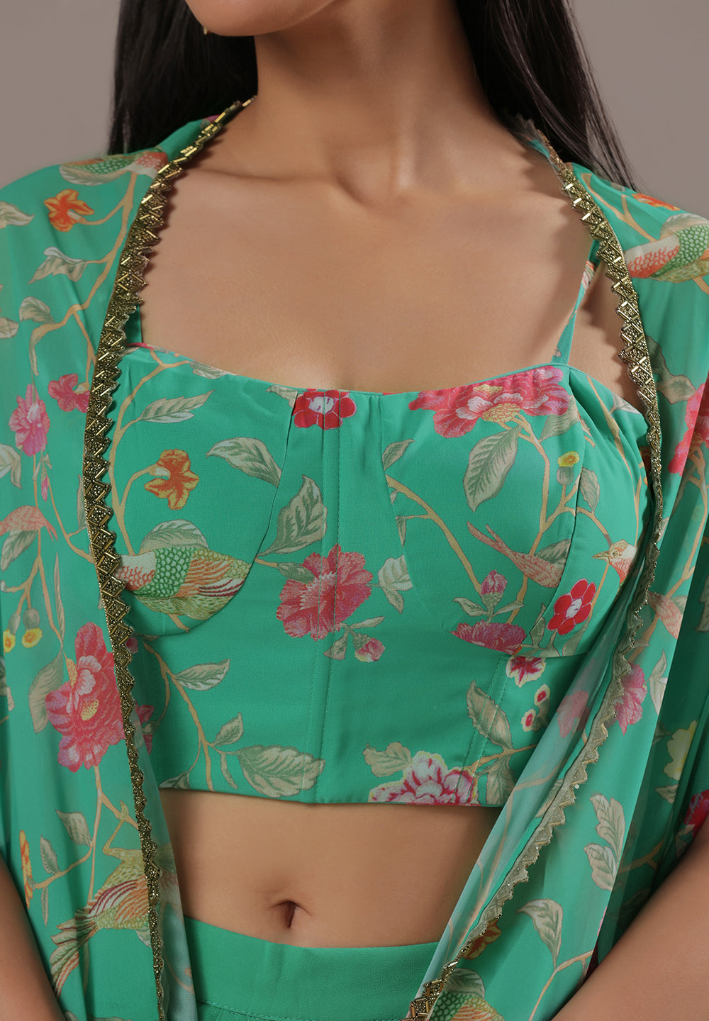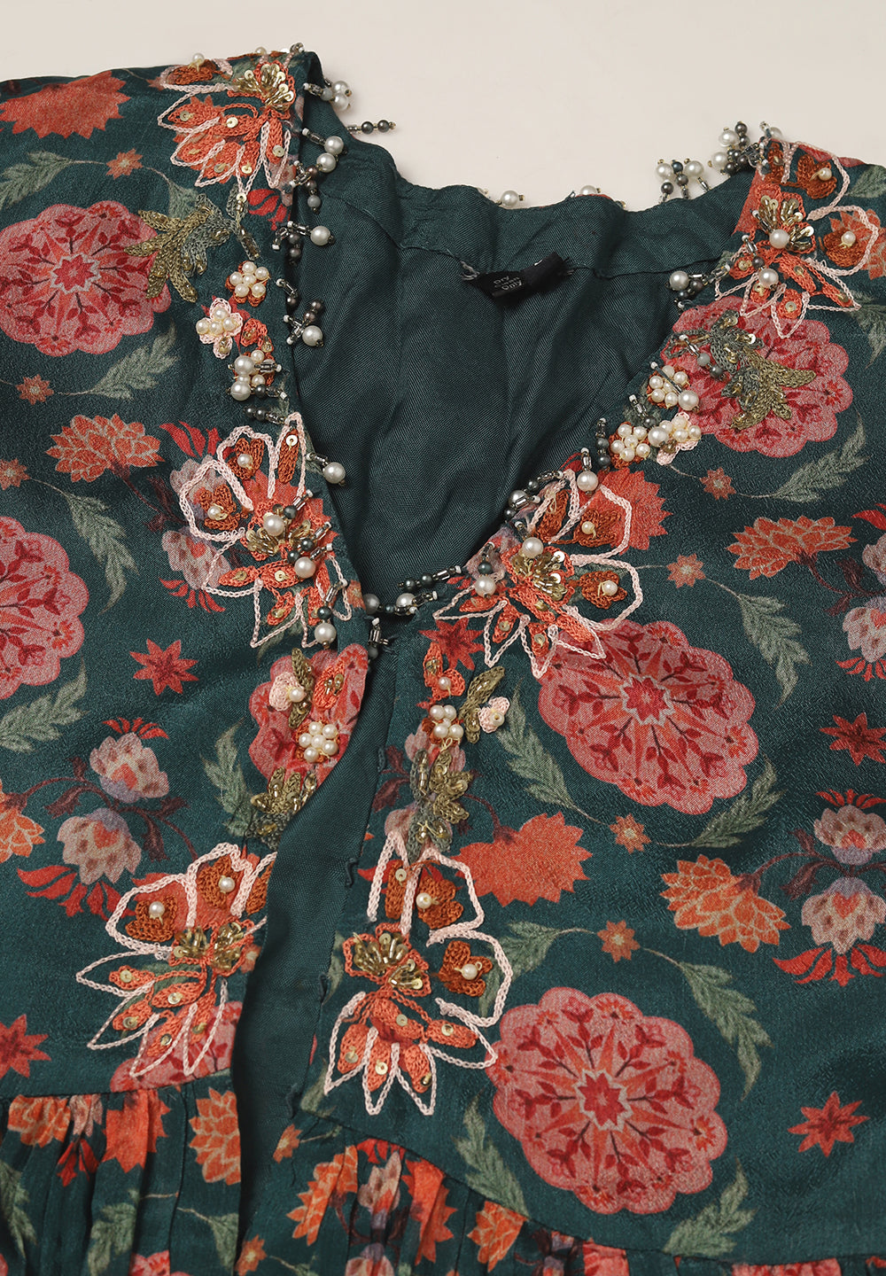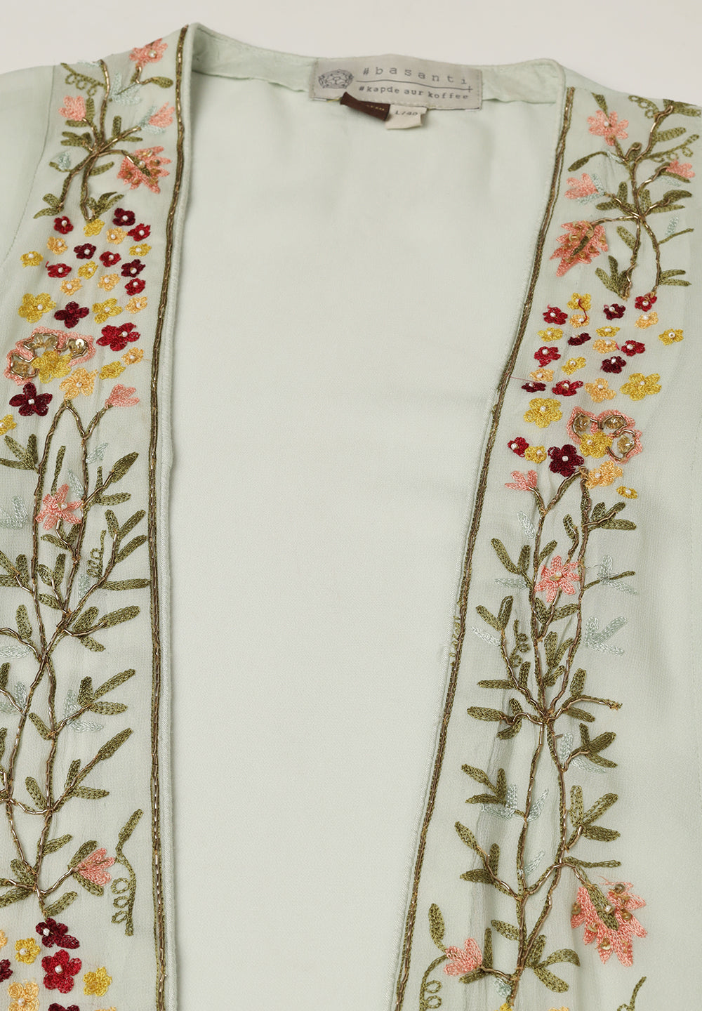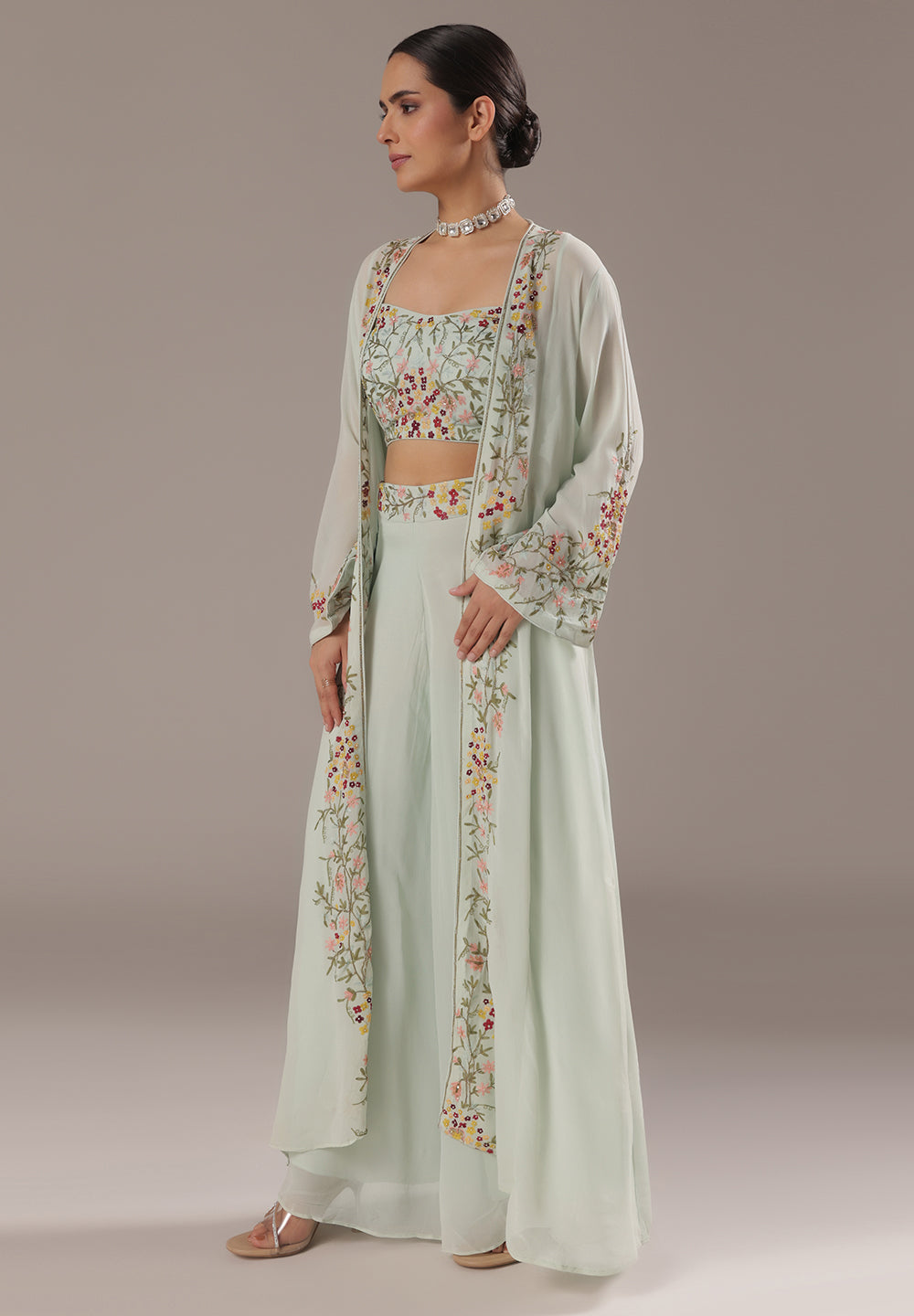- Intricate Aari, Sequin, Zari, and Thread detailing for festive elegance.