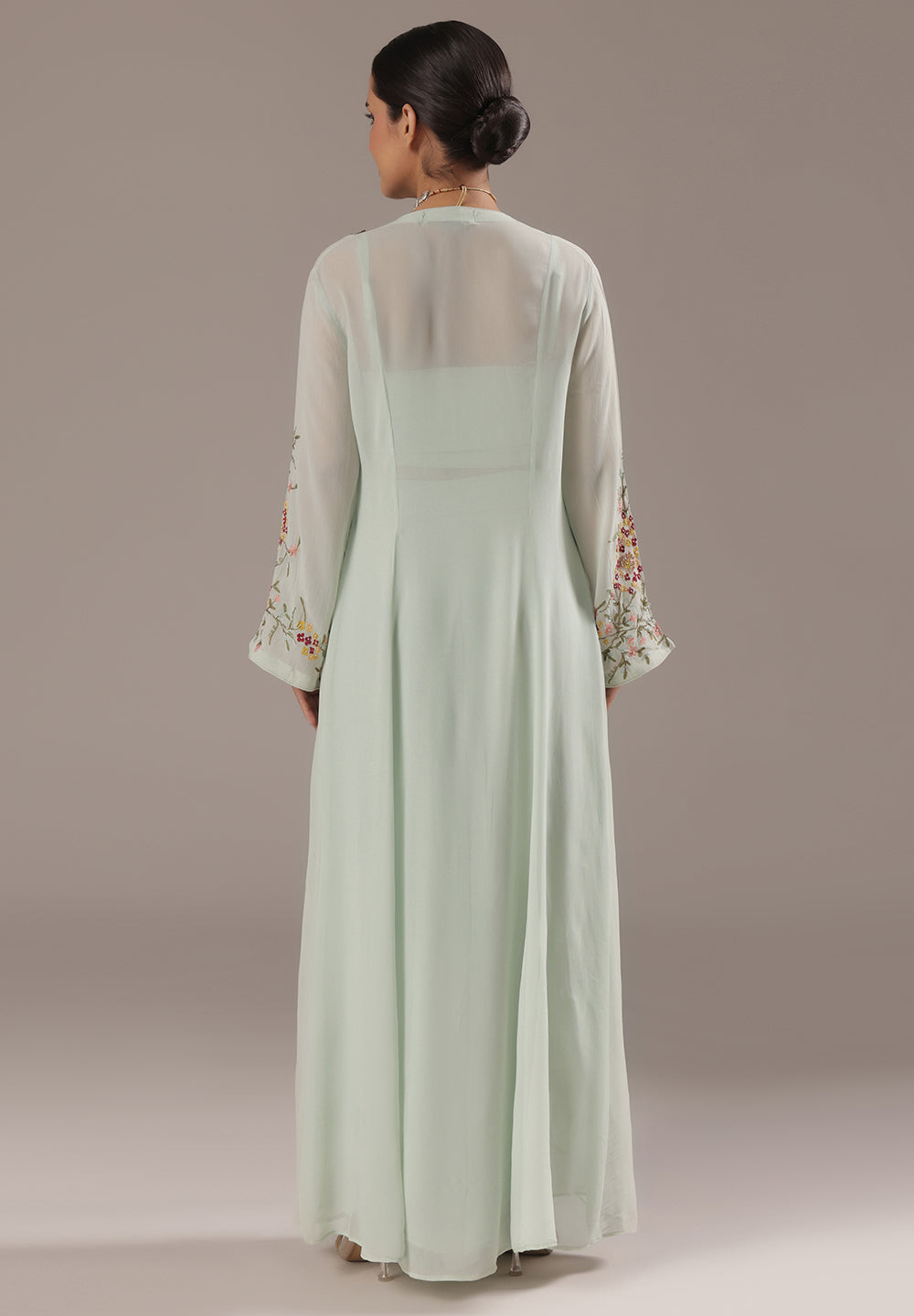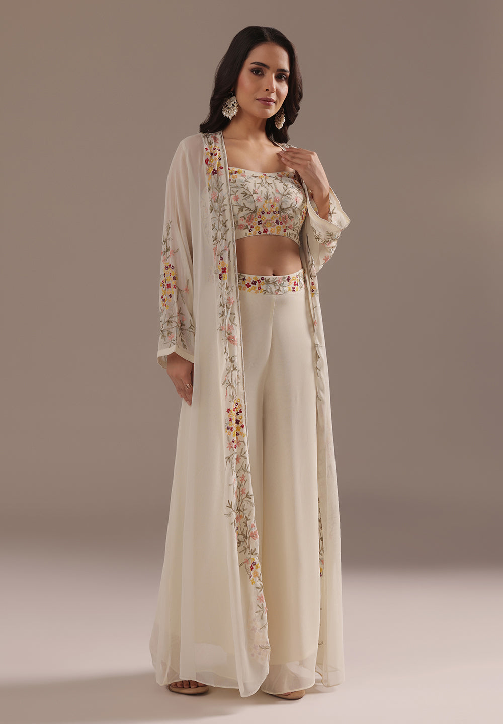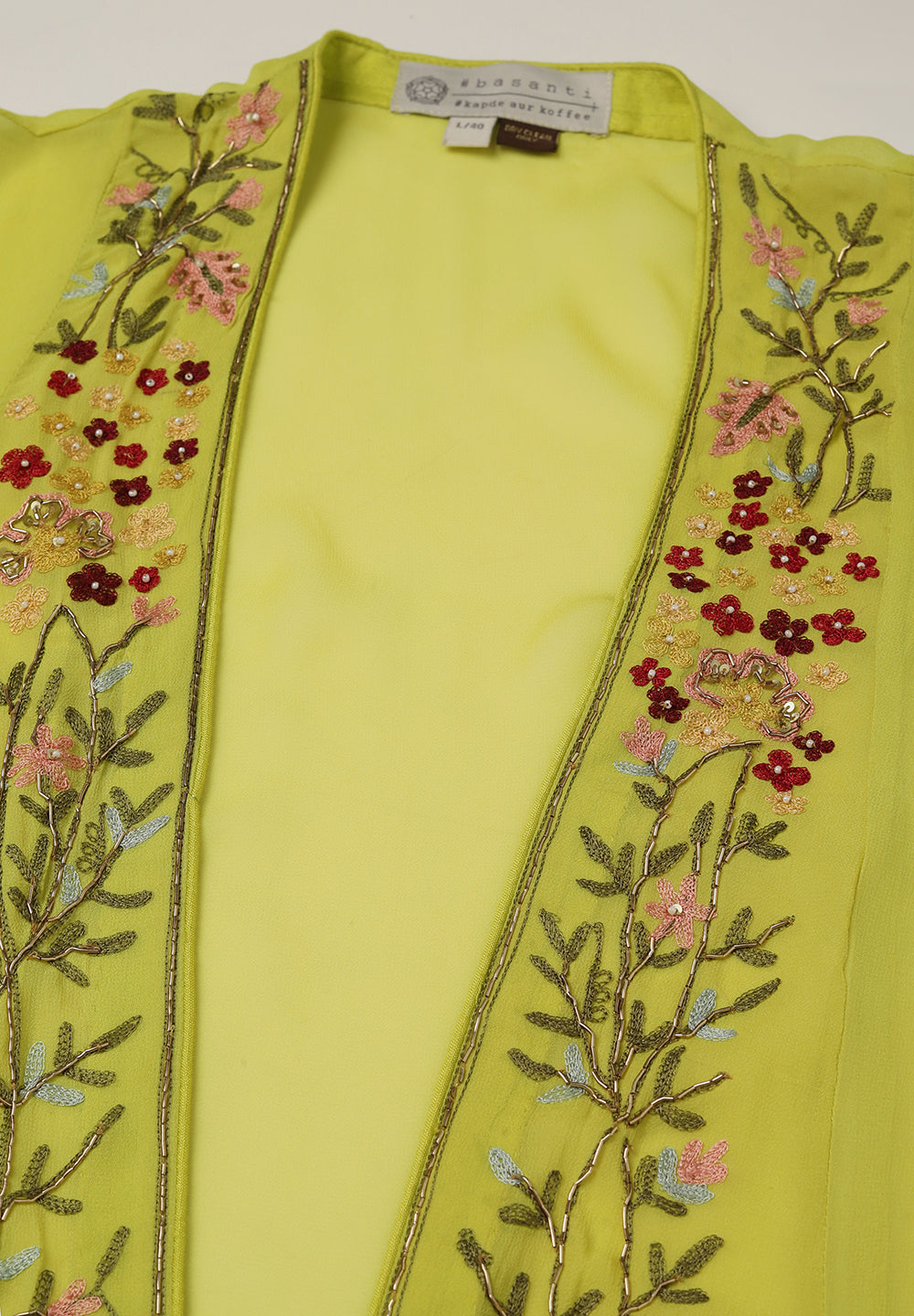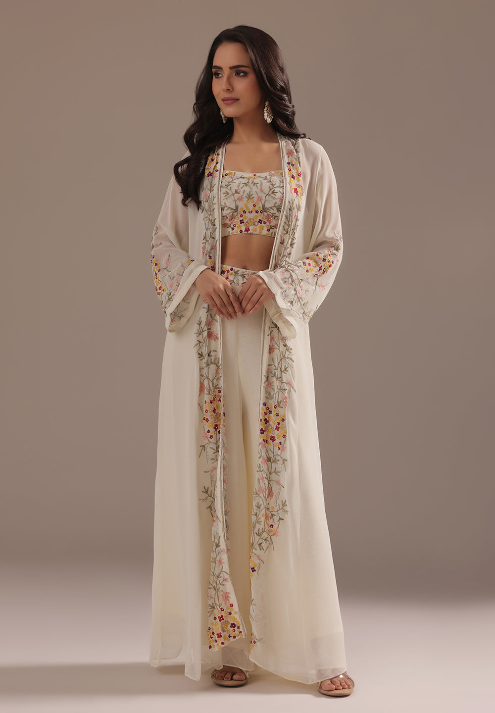 - Intricate Aari, Sequin, Zari, and Thread detailing for festive elegance.