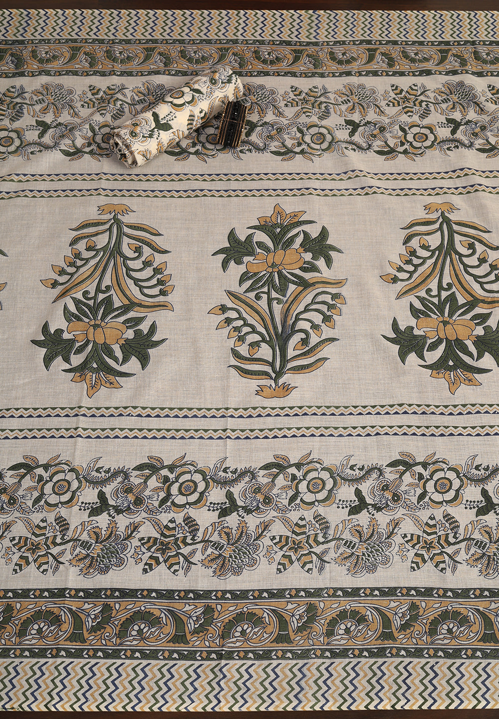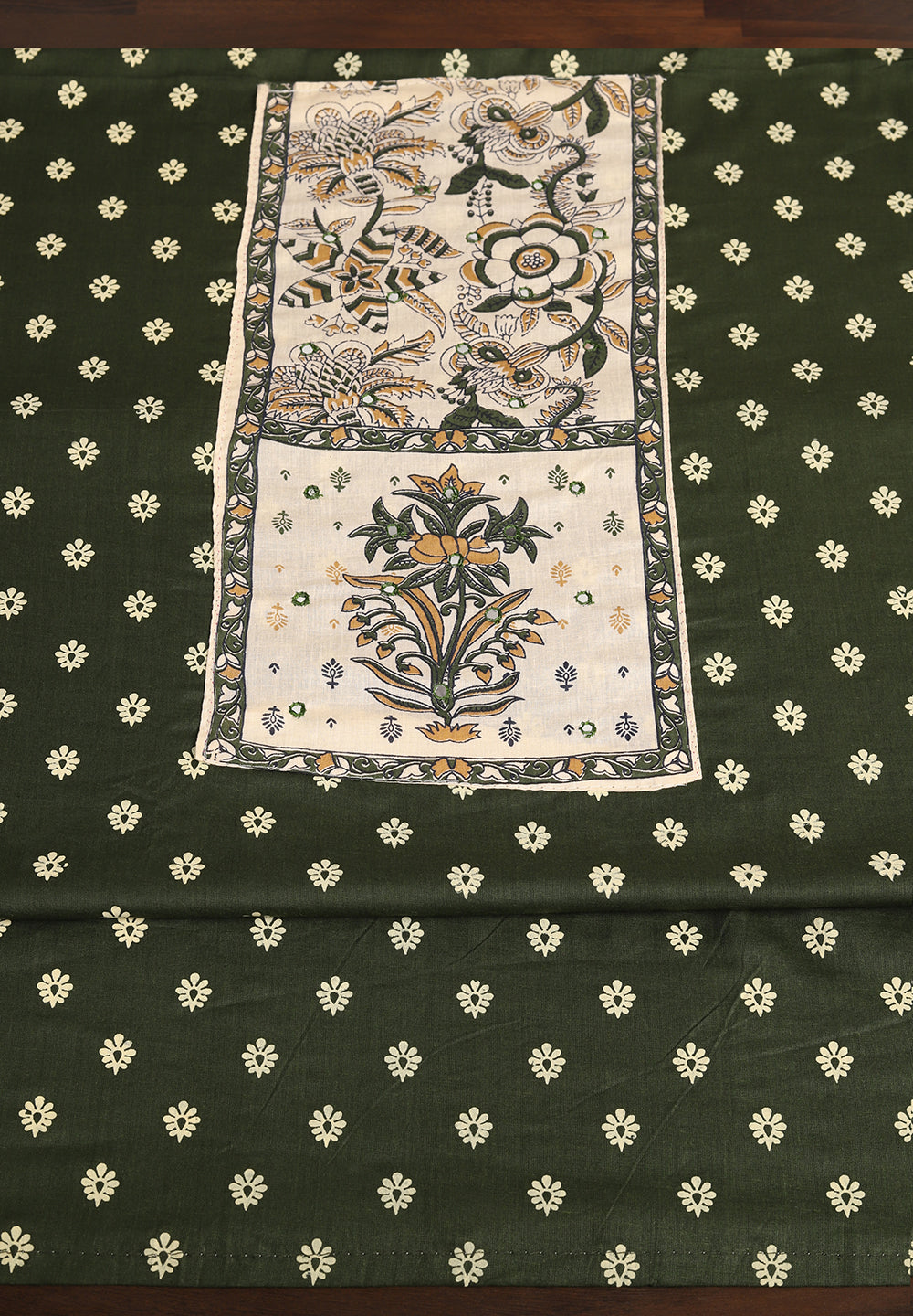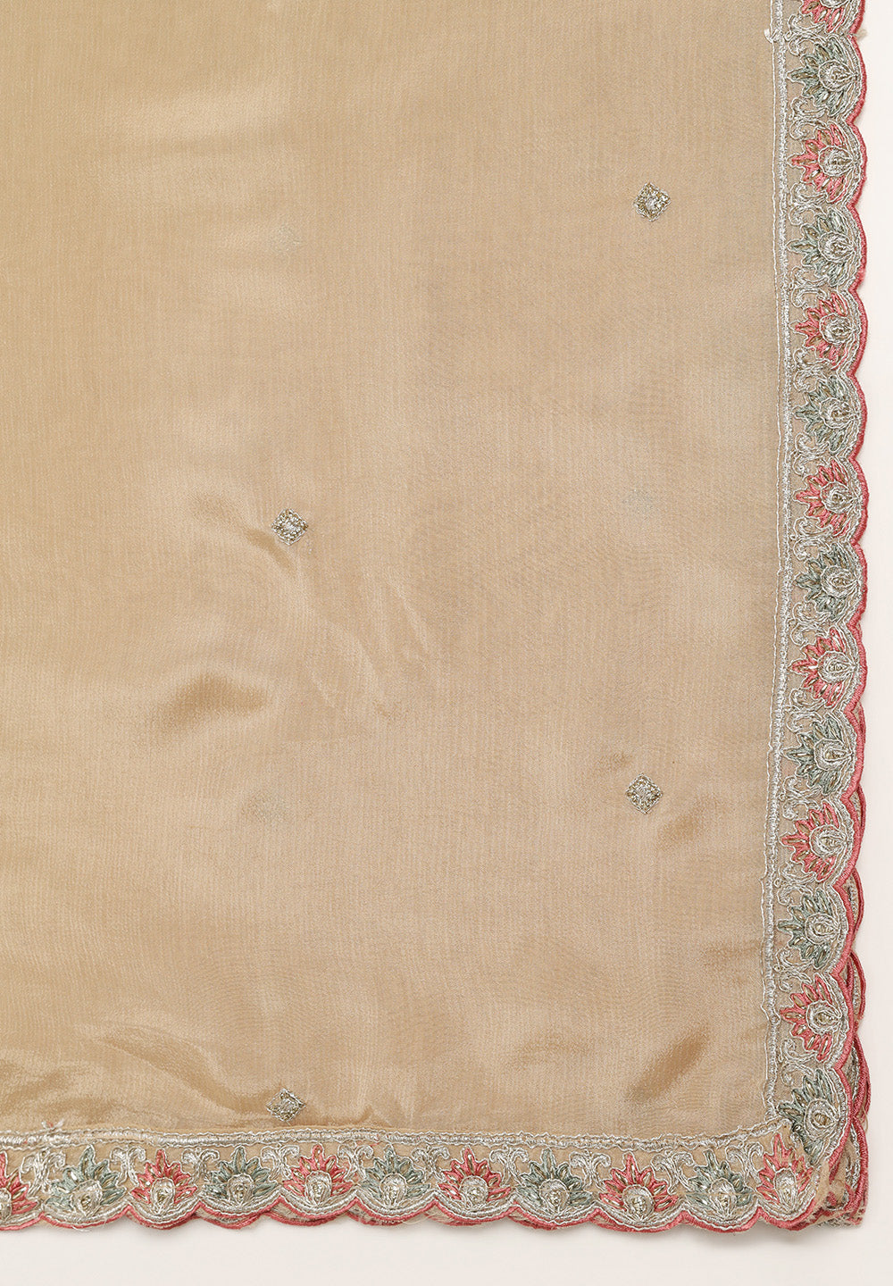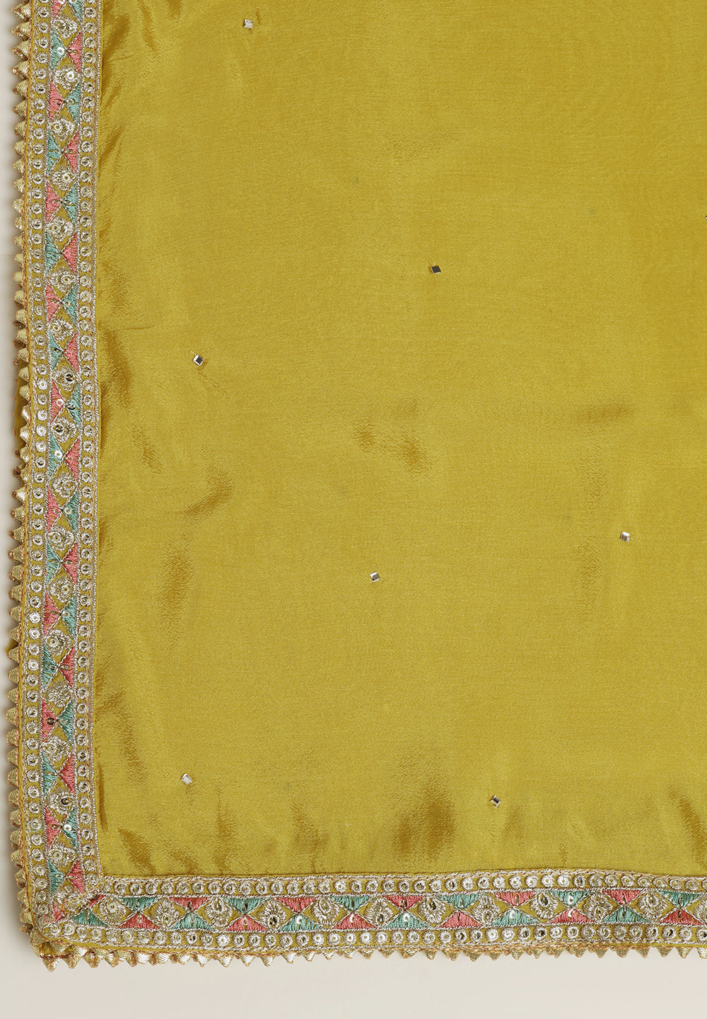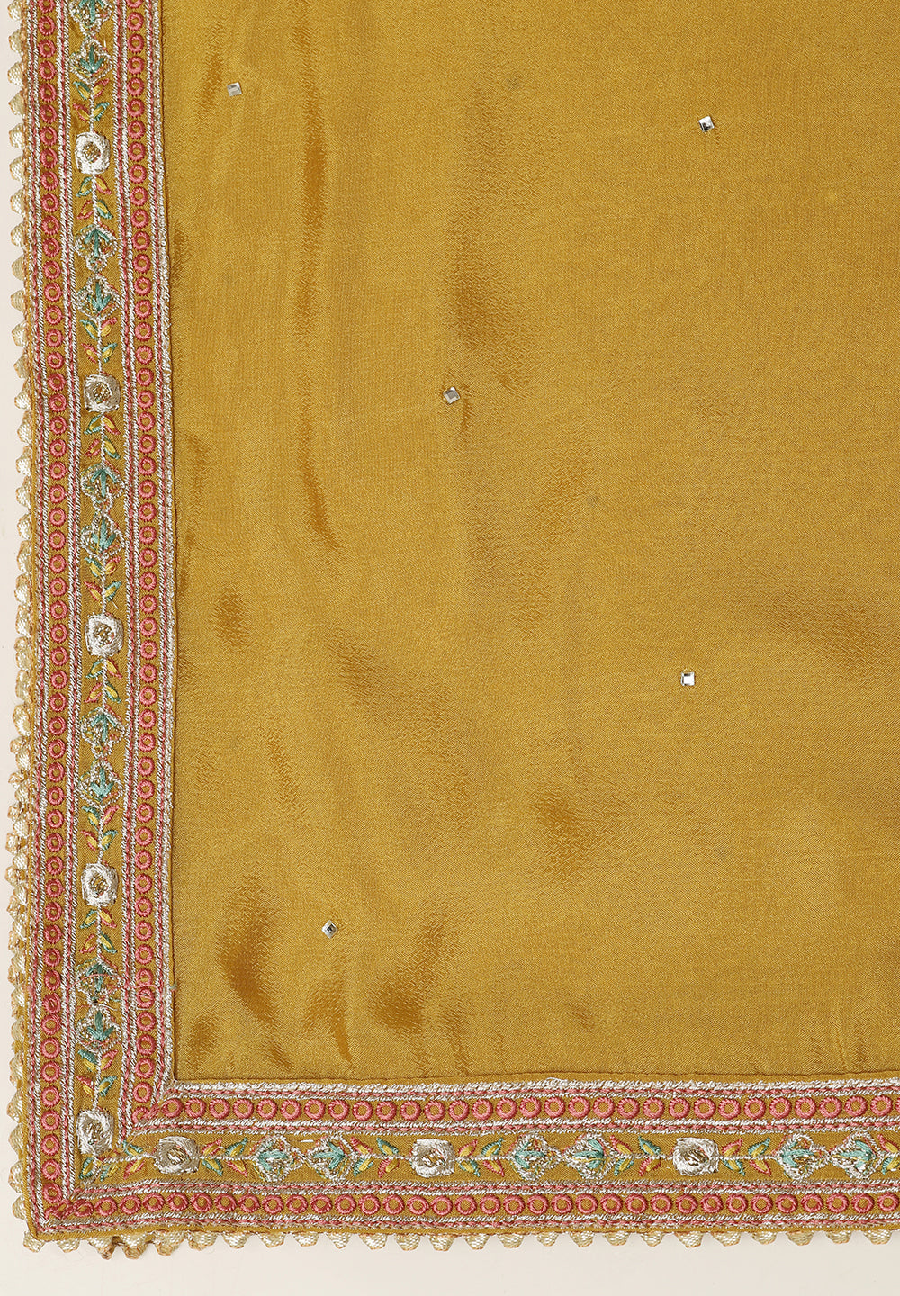 A. Golden, cream, or peach dupattas complement green suits beautifully.