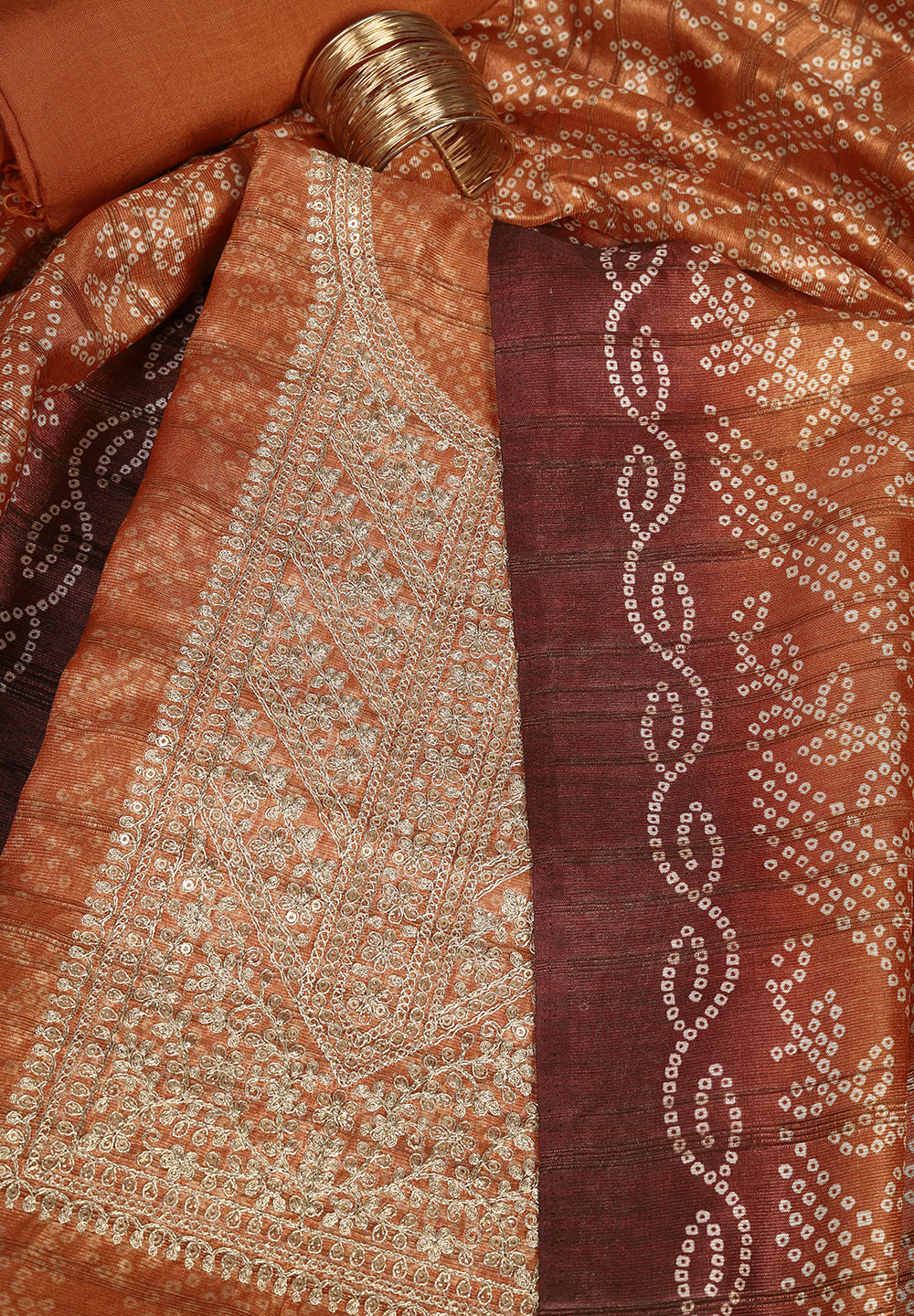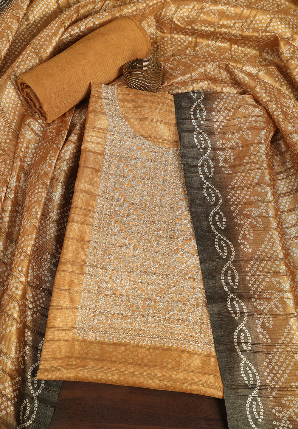 Embrace sophistication with Tussar Silk Unstitched Suits detailed with sequins and zari work or the ethereal charm of Organza Sharara Suits paired with intricate Kishti embroidery. These fabrics drape beautifully and reflect soft, natural sheen, offering a rich festive aesthetic without being overpowering.