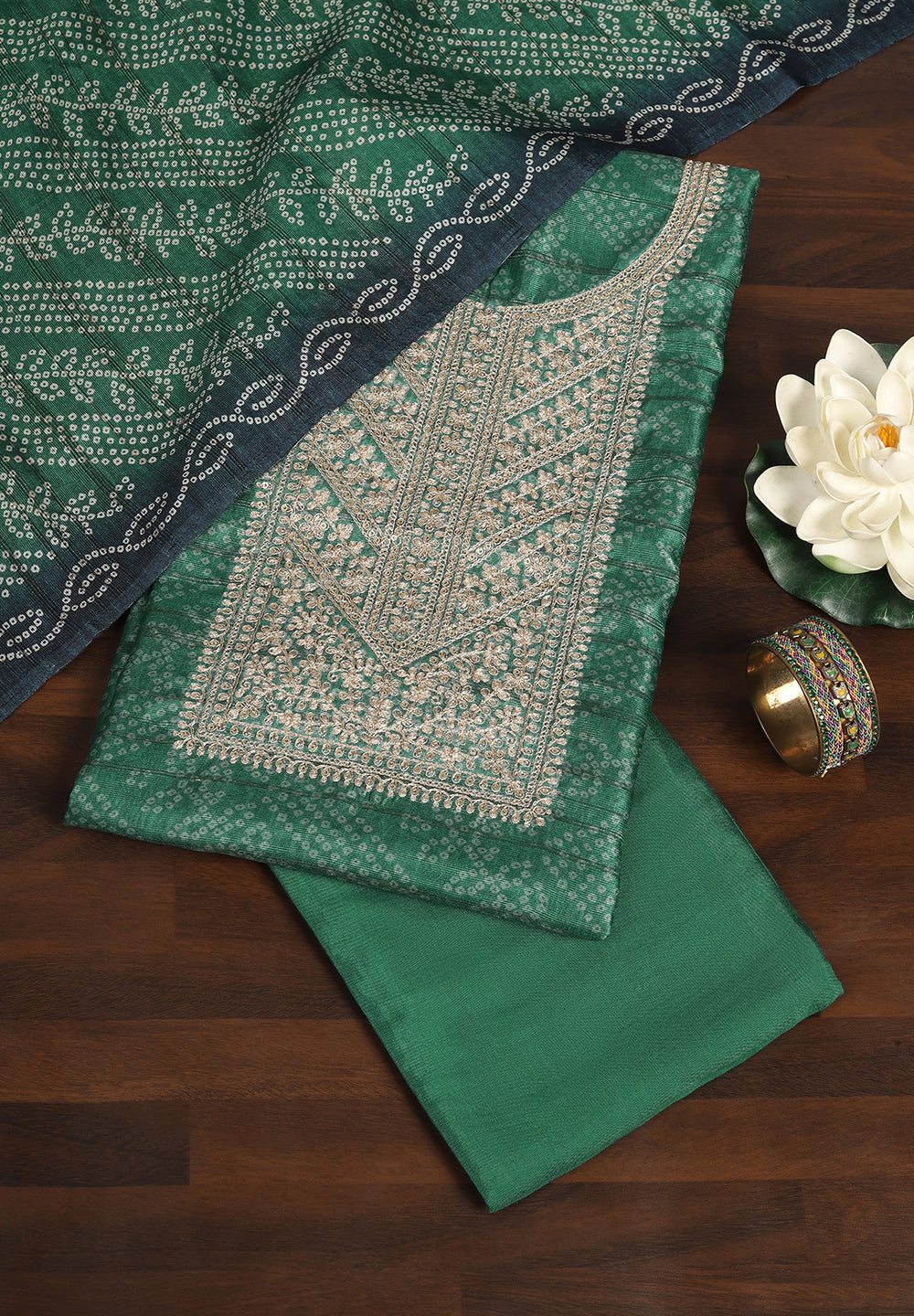 Banarasi Chanderi Green Suits – Heritage Craft with Modern Detailing