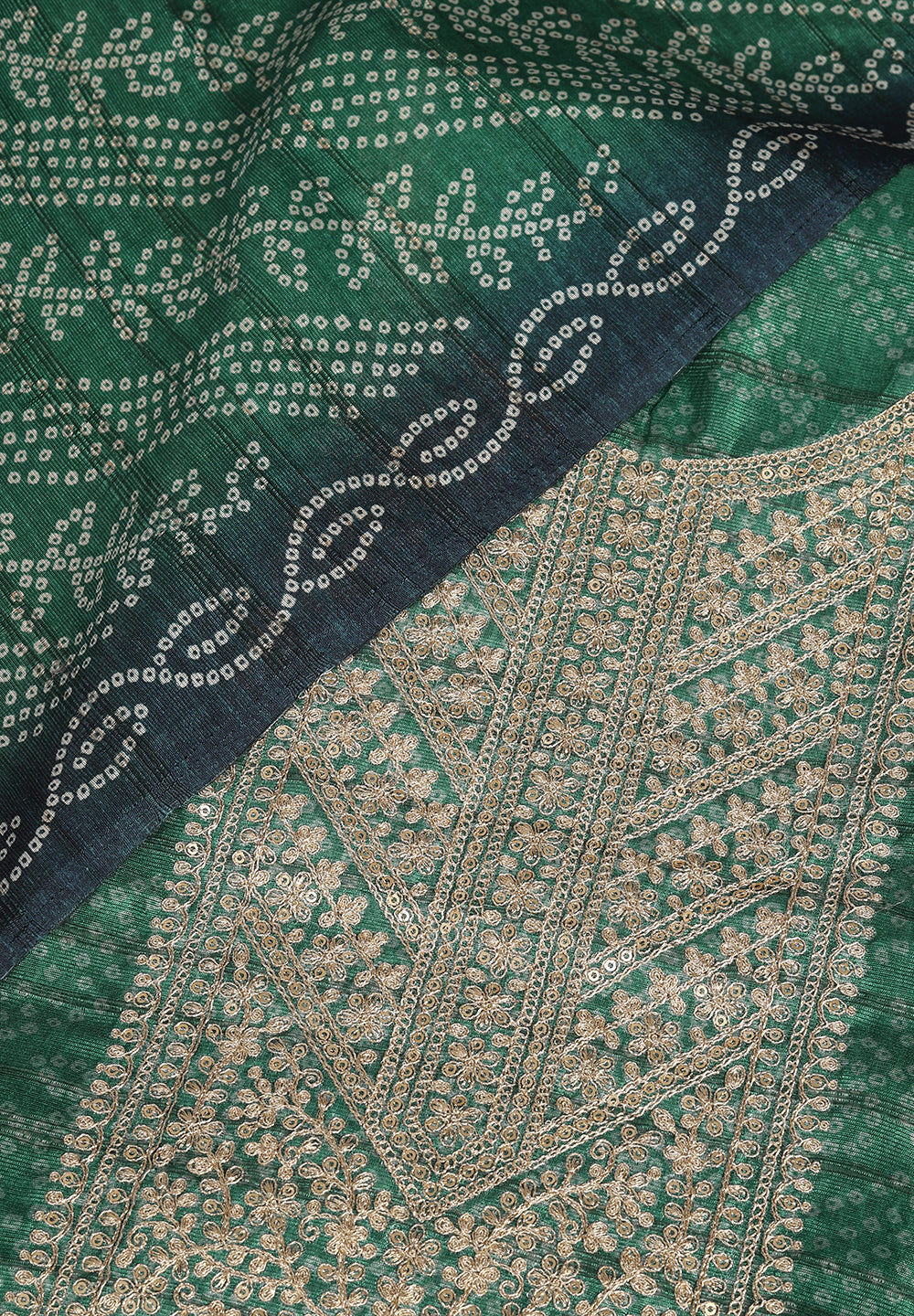 Our Banarasi Chanderi Unstitched Suits feature exquisite Aari, Sequin, and Zari work, making them ideal for festive and wedding wear. The soft fabric combined with delicate craftsmanship reflects regal charm and timeless beauty. Choose from shades like pista green and emerald to add a royal touch to your ethnic wardrobe.