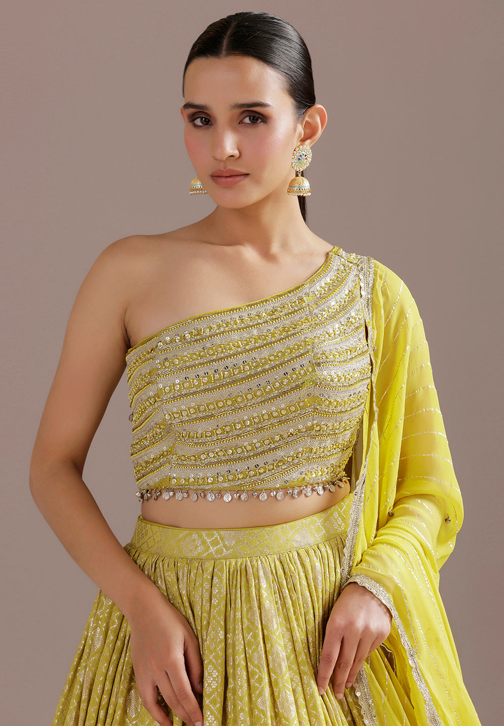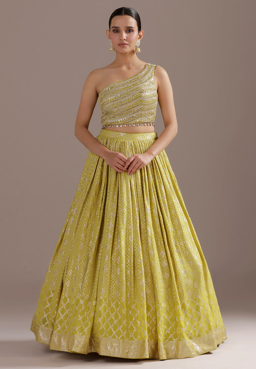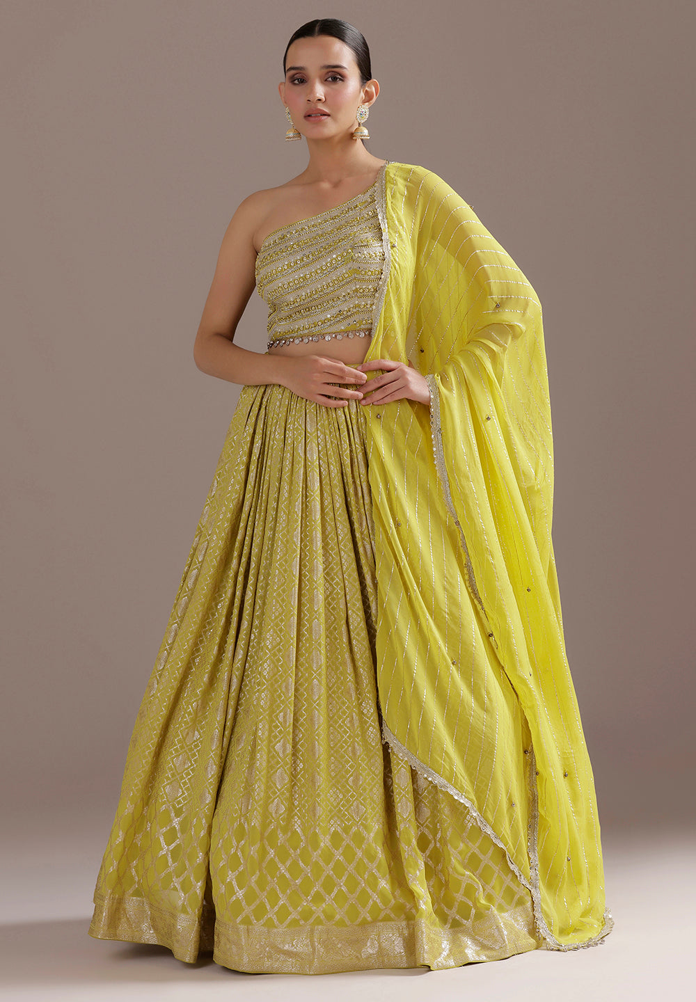 Lime Yellow Cutdana Work One-Shoulder Lehenga Set₹ 29,885₹ 22,414
