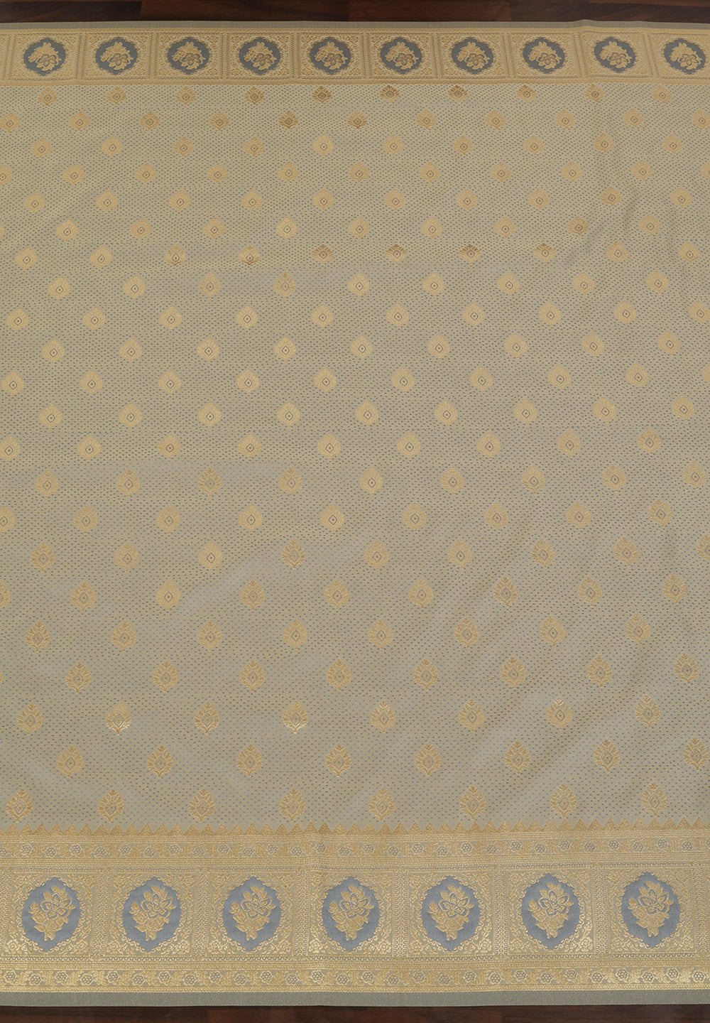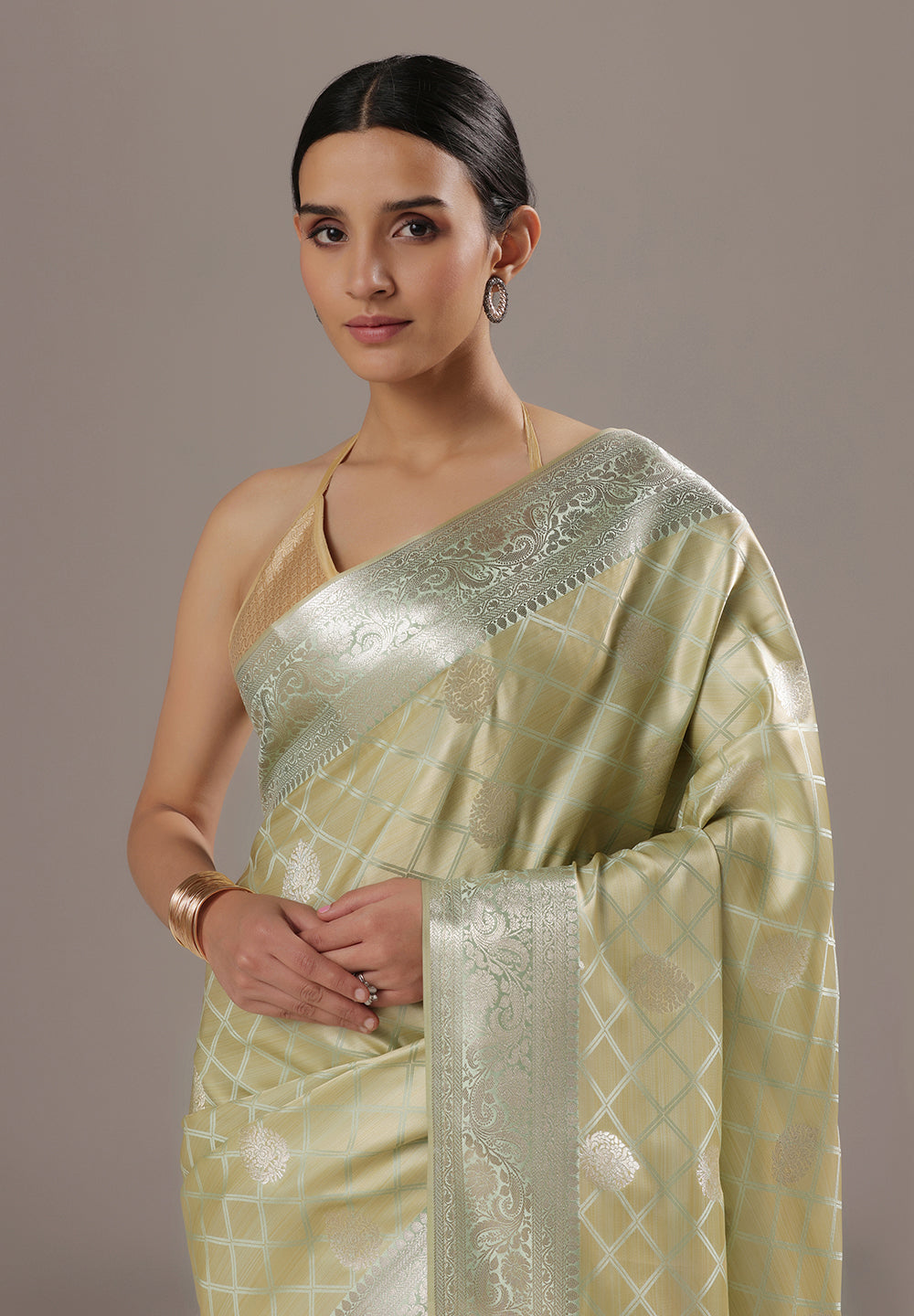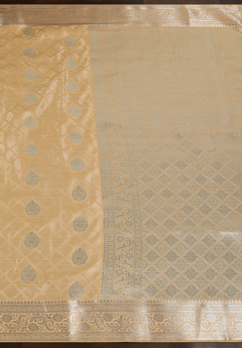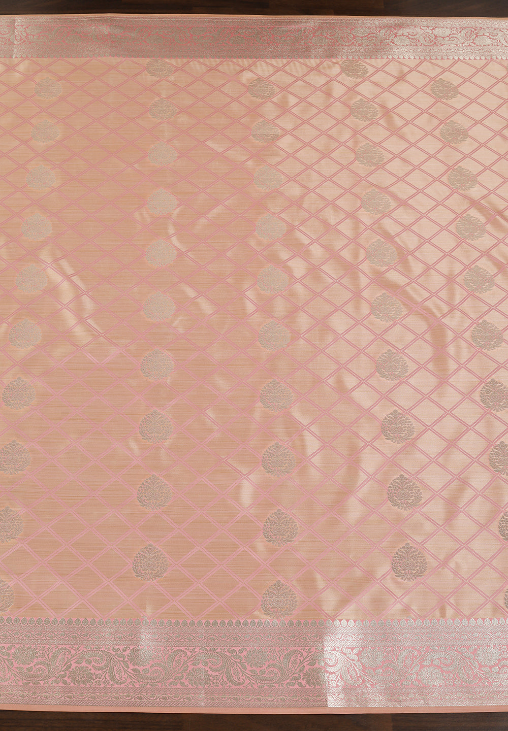 Silk Banarasi Saree With Zari Border & Square Motifs