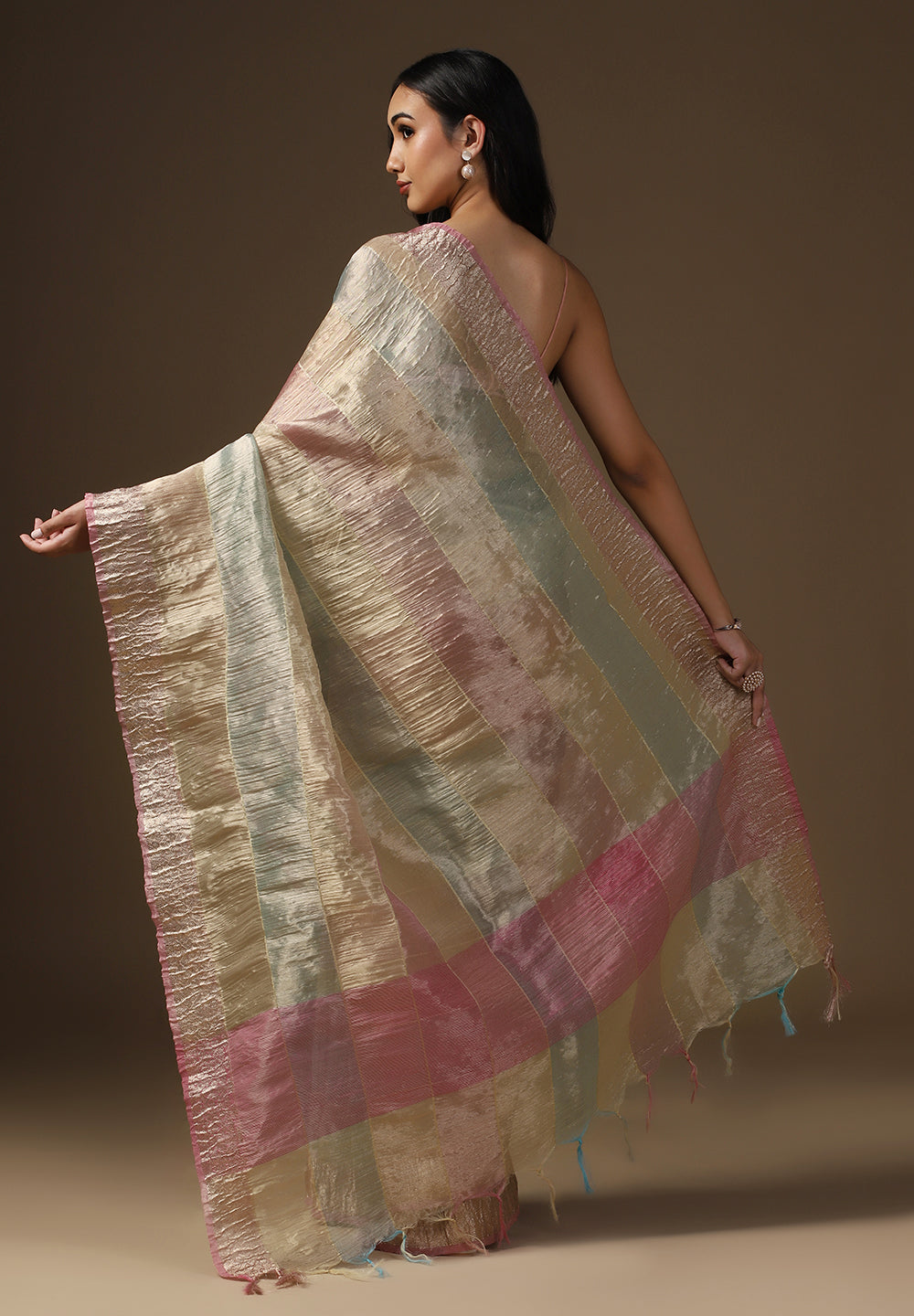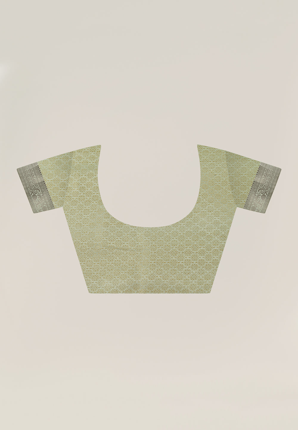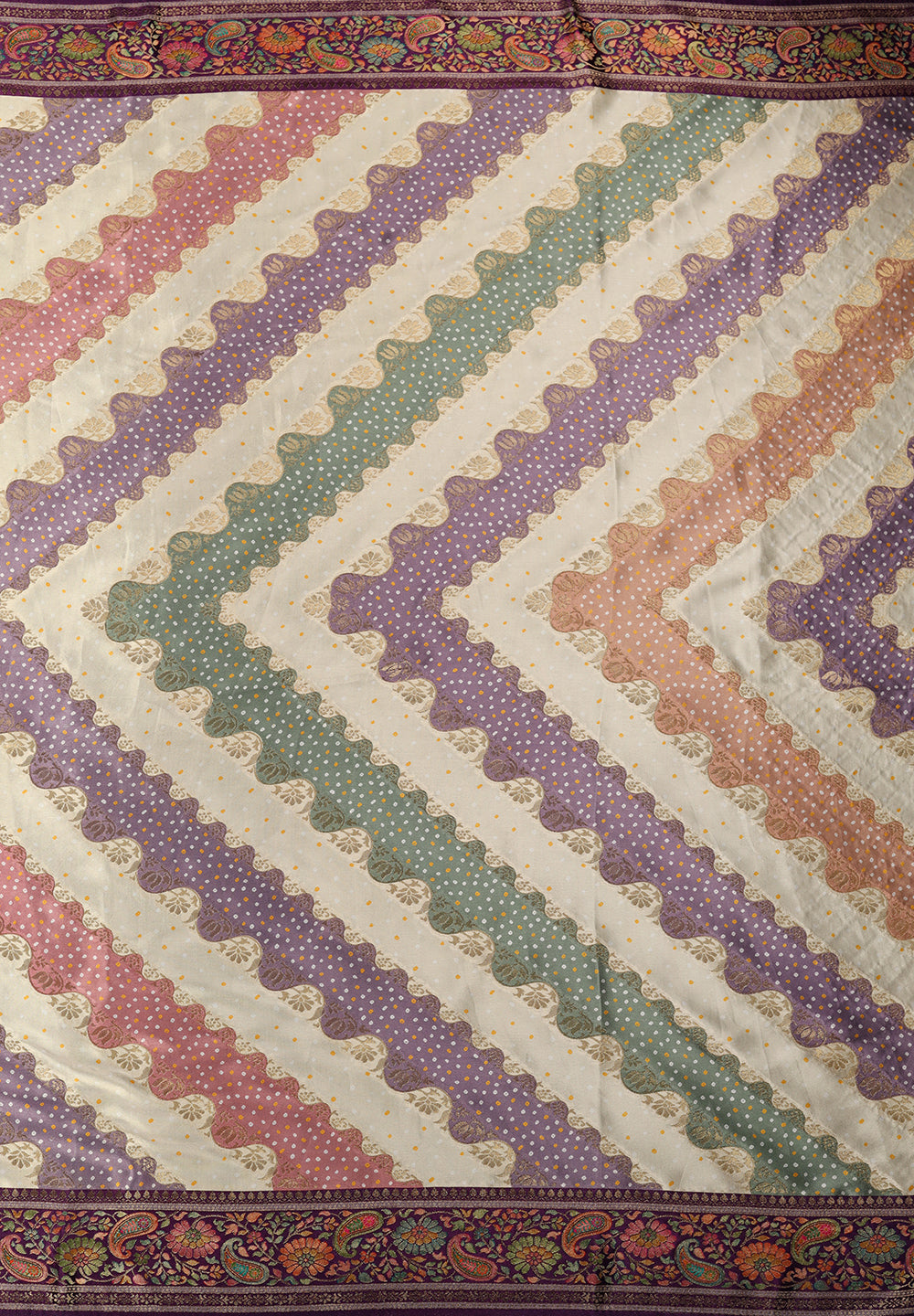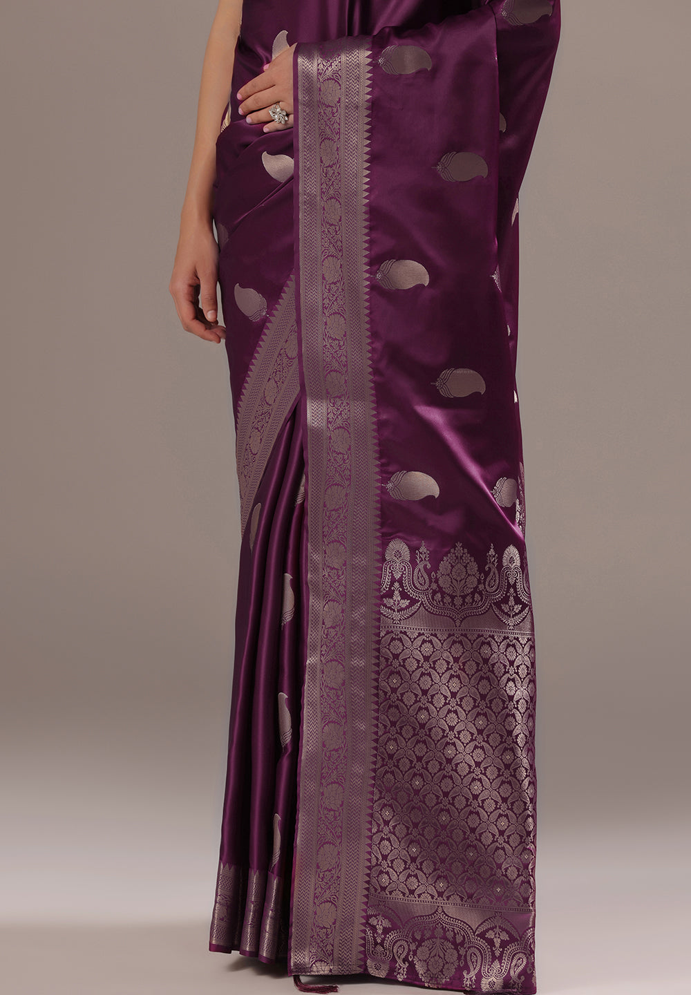 Silk Banarasi Saree With Zari Border & Square Motifs