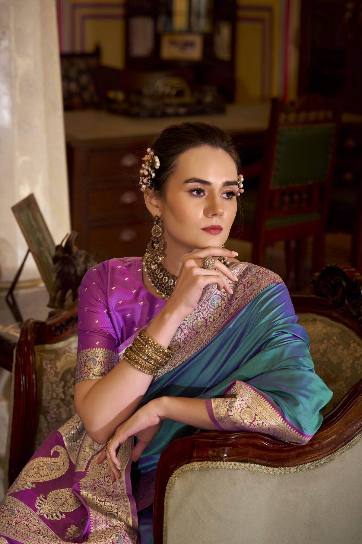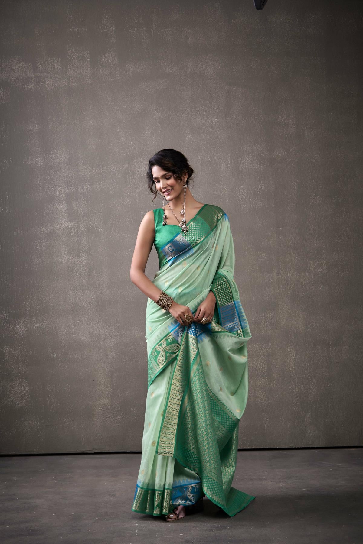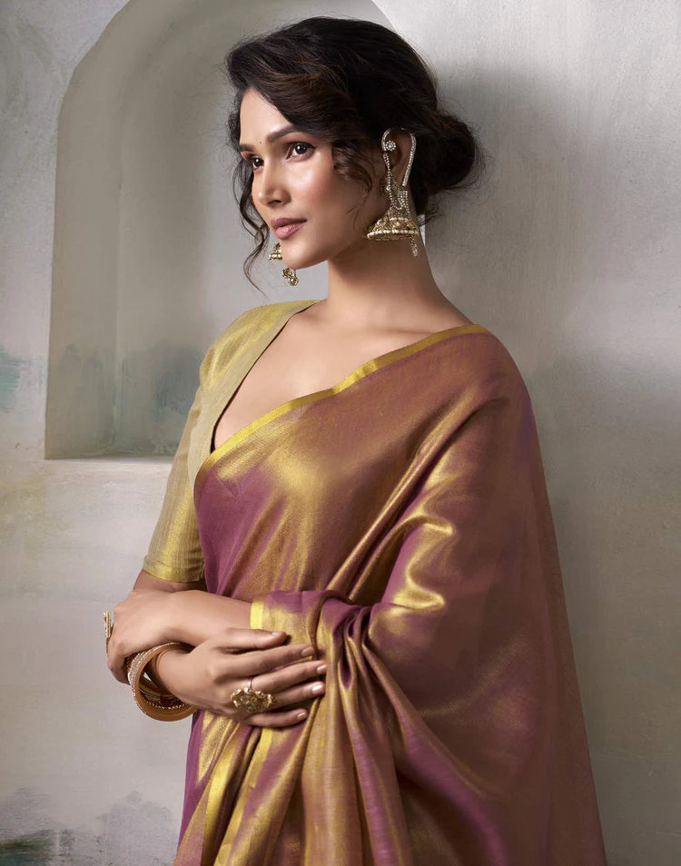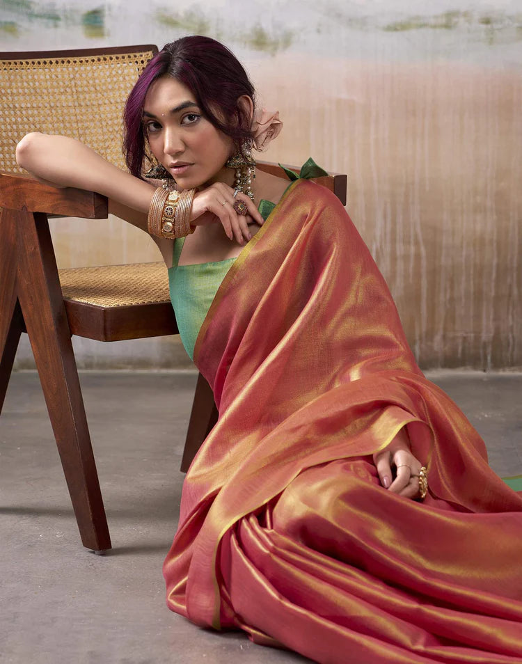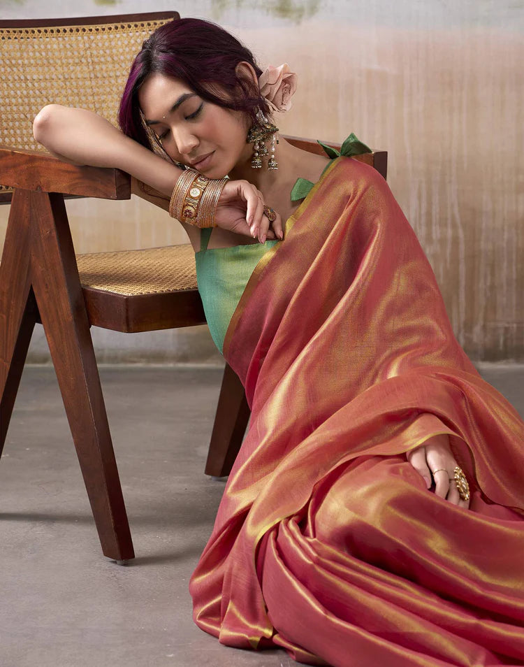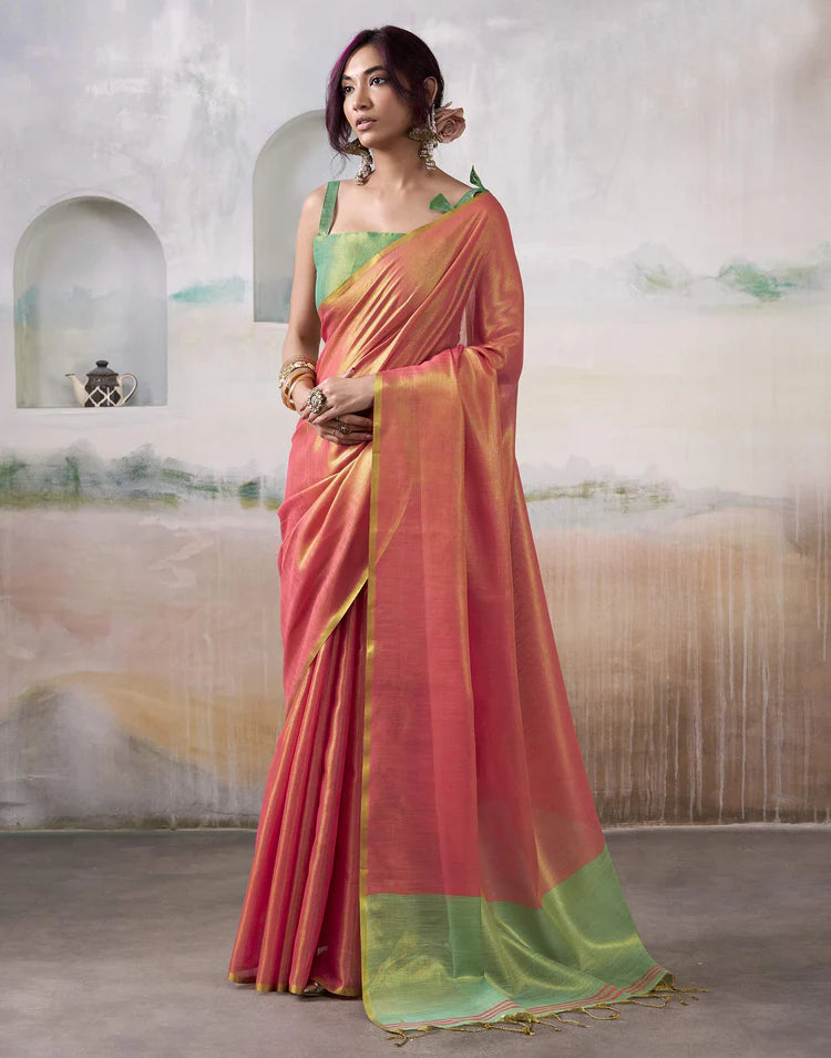 Double-Tone Silk Saree with Glimmering Zari Elegance